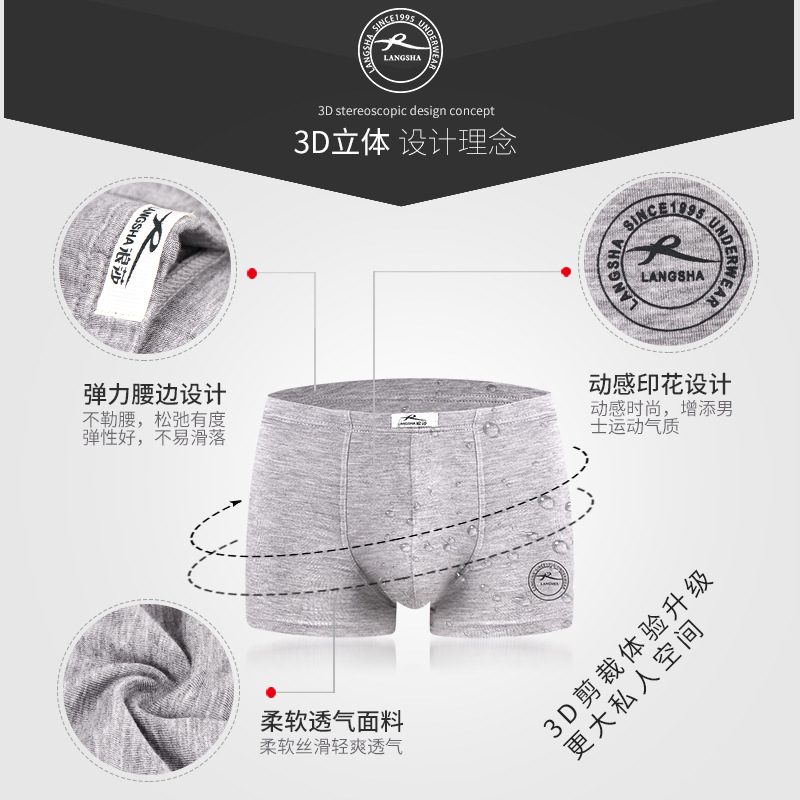 浪莎四季男士内裤男平角裤冰丝青年潮夏透气男士内裤盒装现货批发