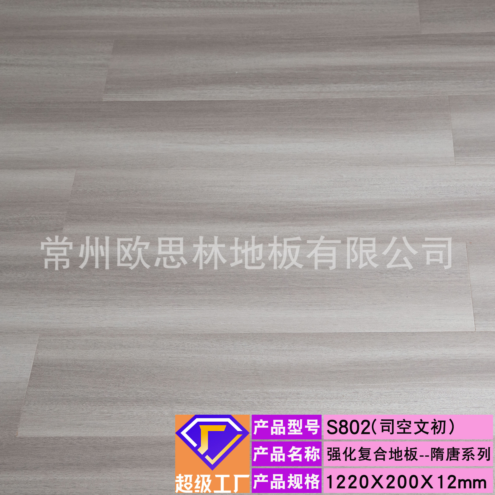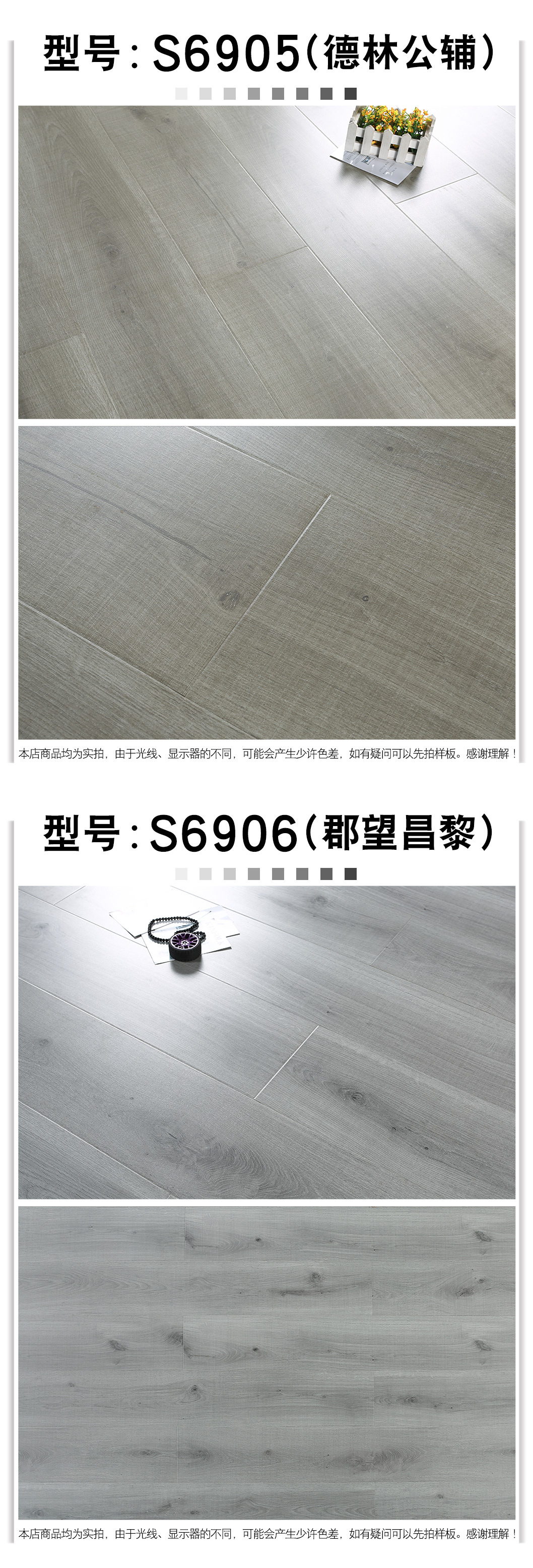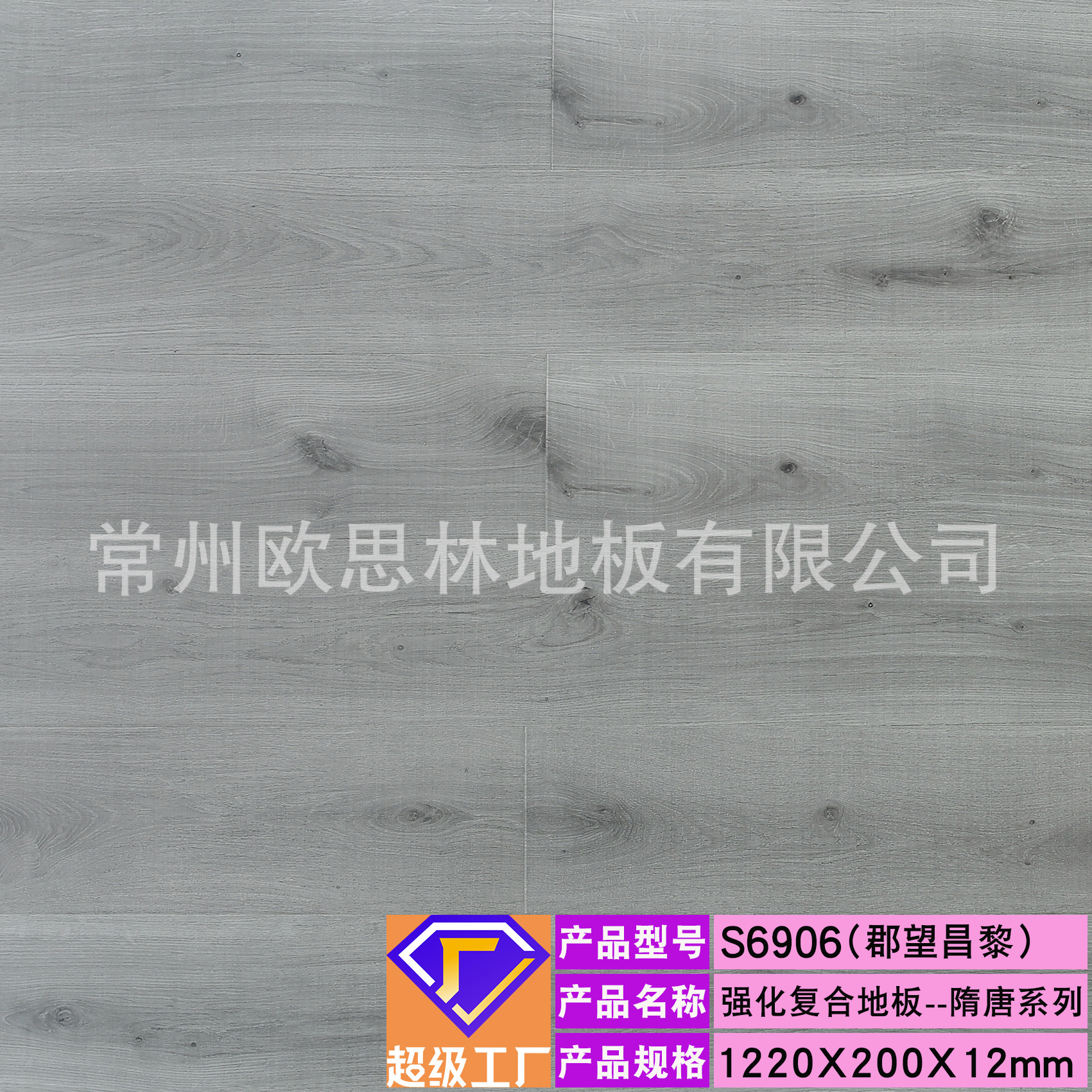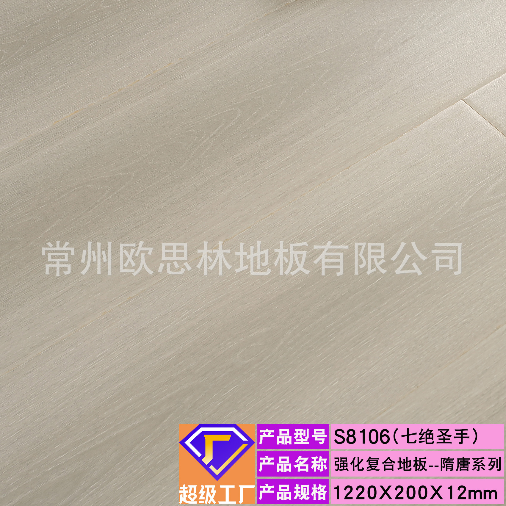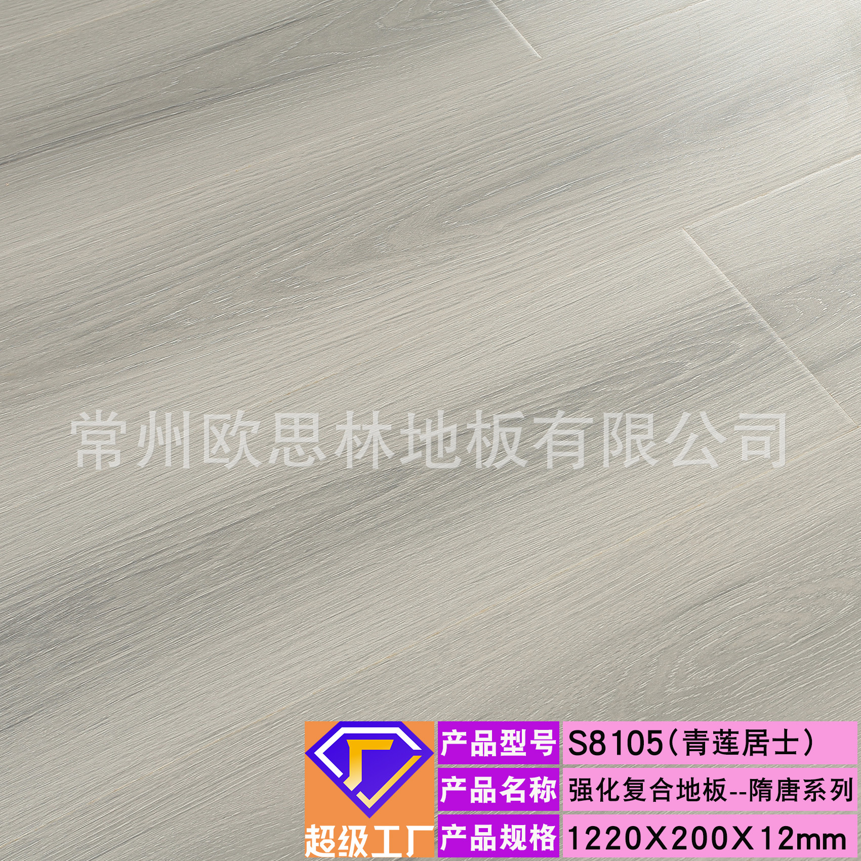 北欧冷色系原木色 12mm强化复合地板防潮锁扣 家用工装商用木地板
