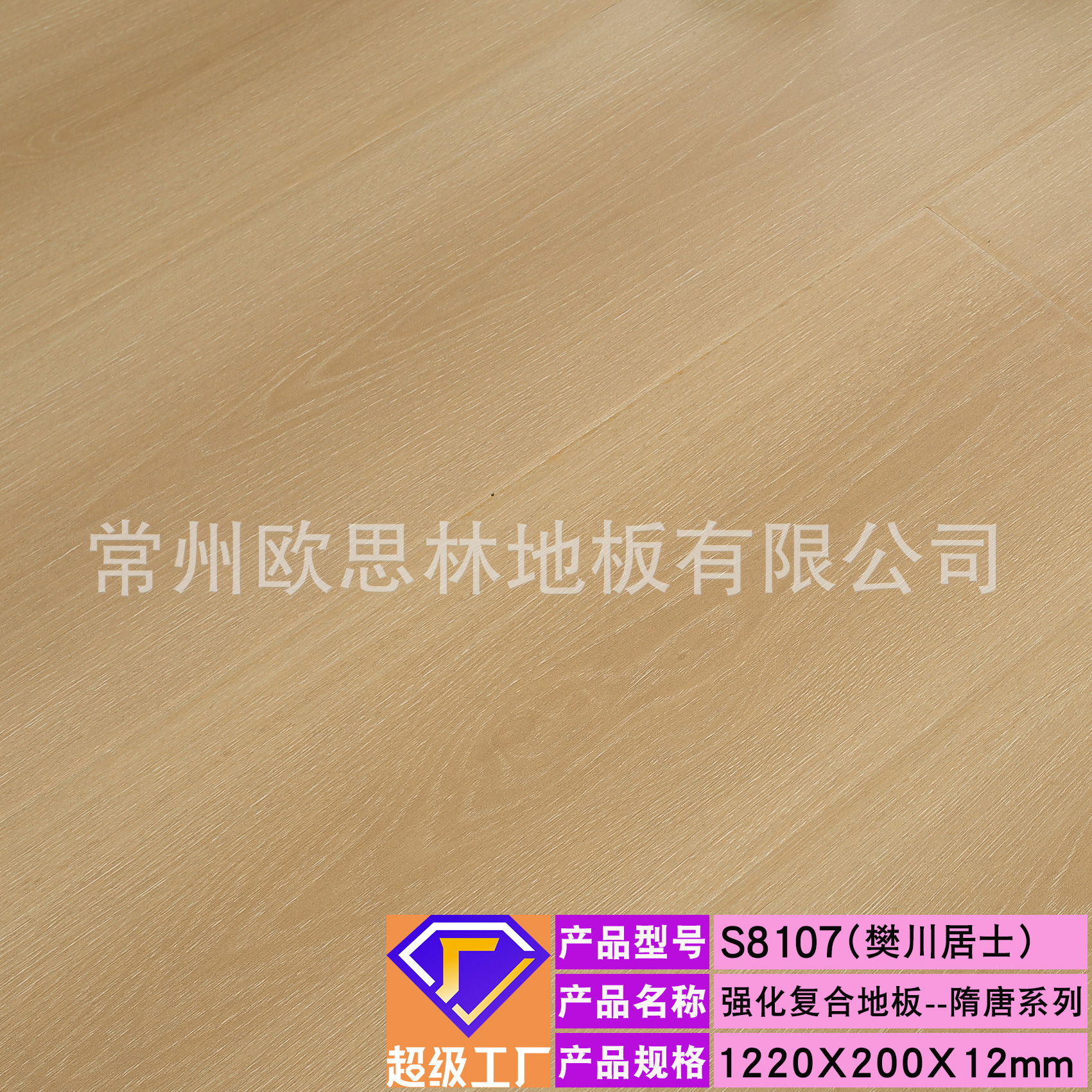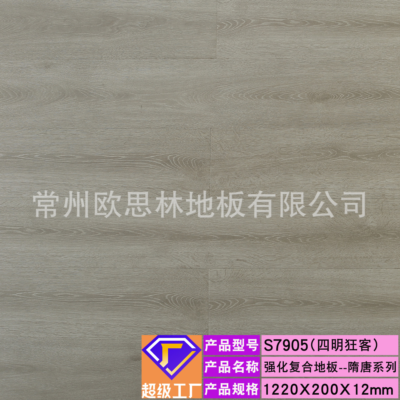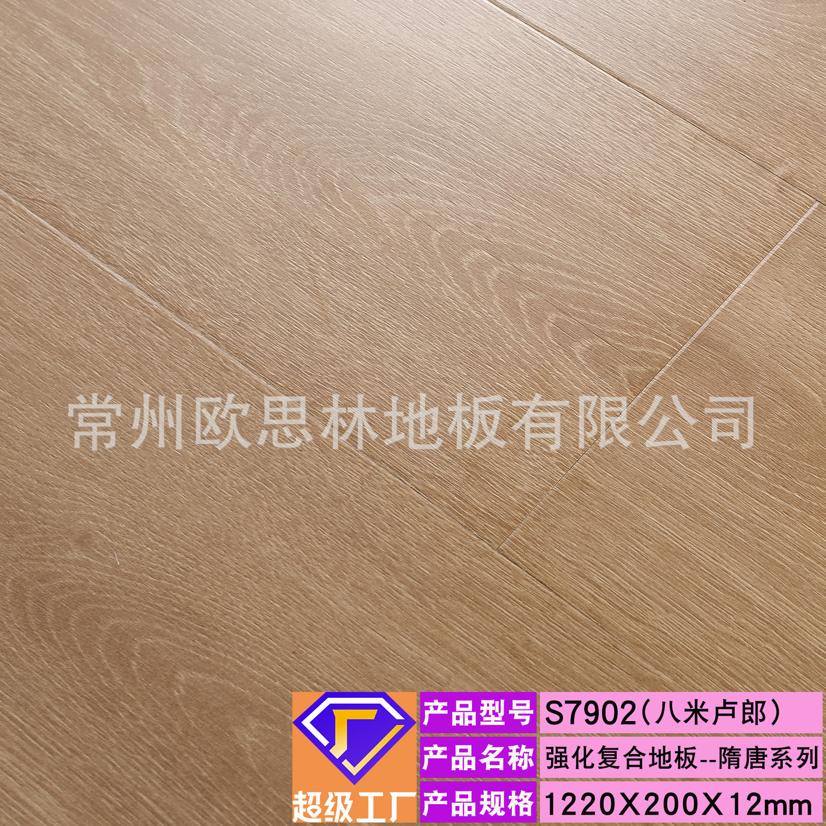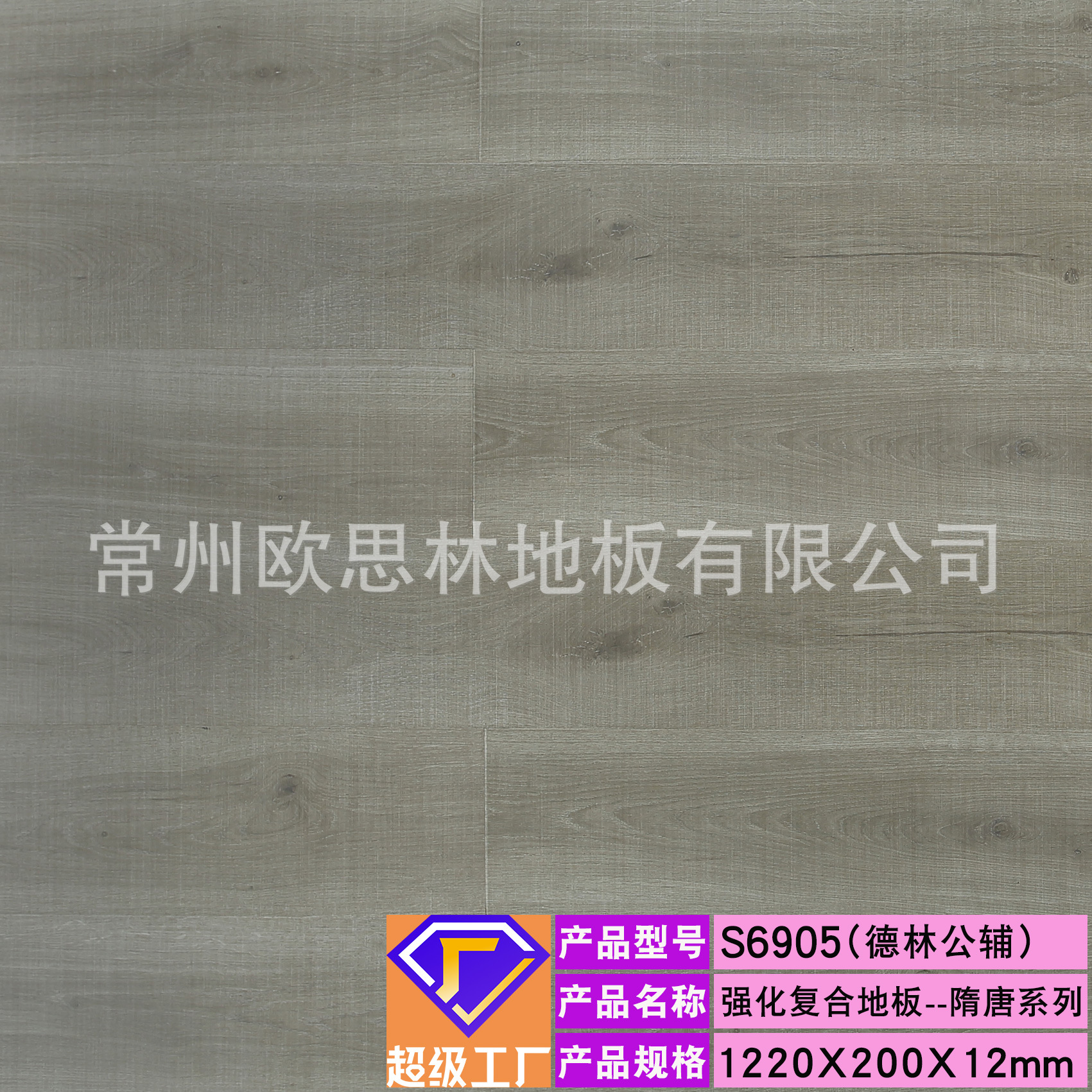北欧冷色系原木色 12mm强化复合地板防潮锁扣 家用工装商用木地板
