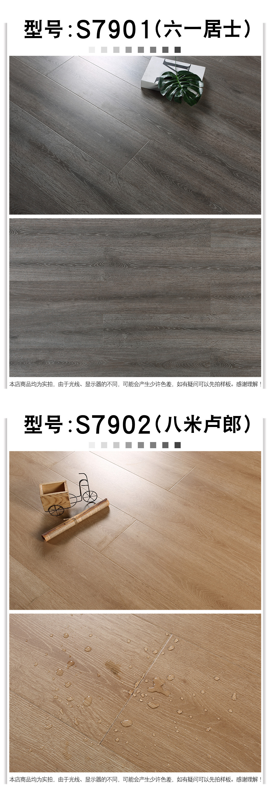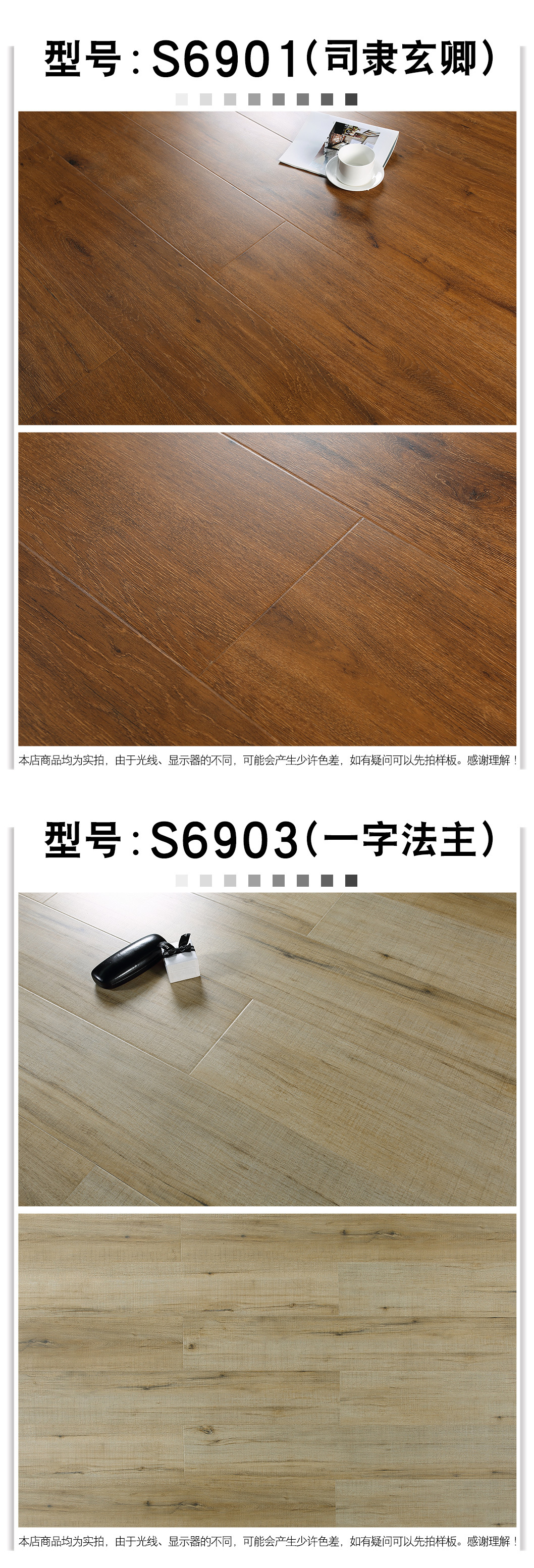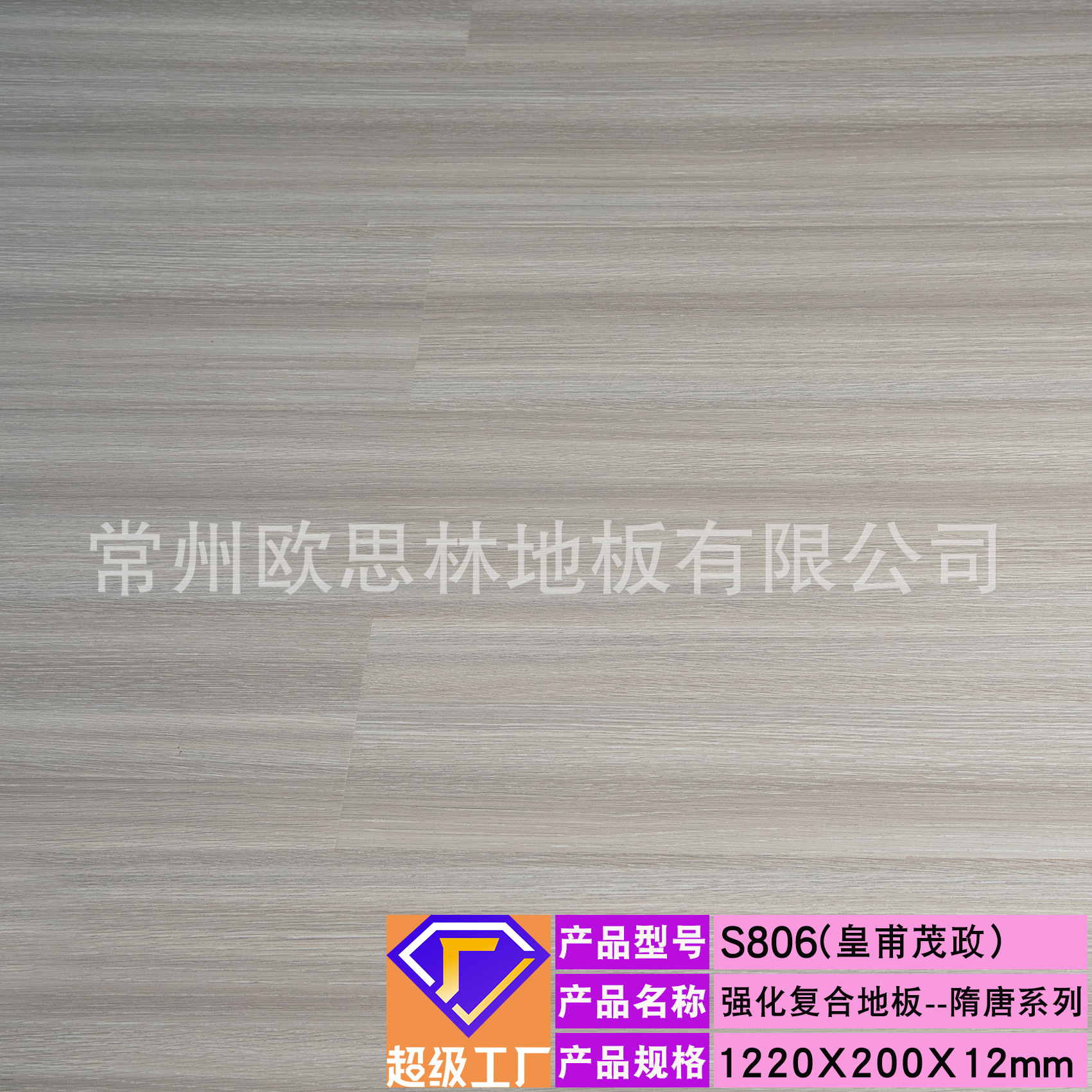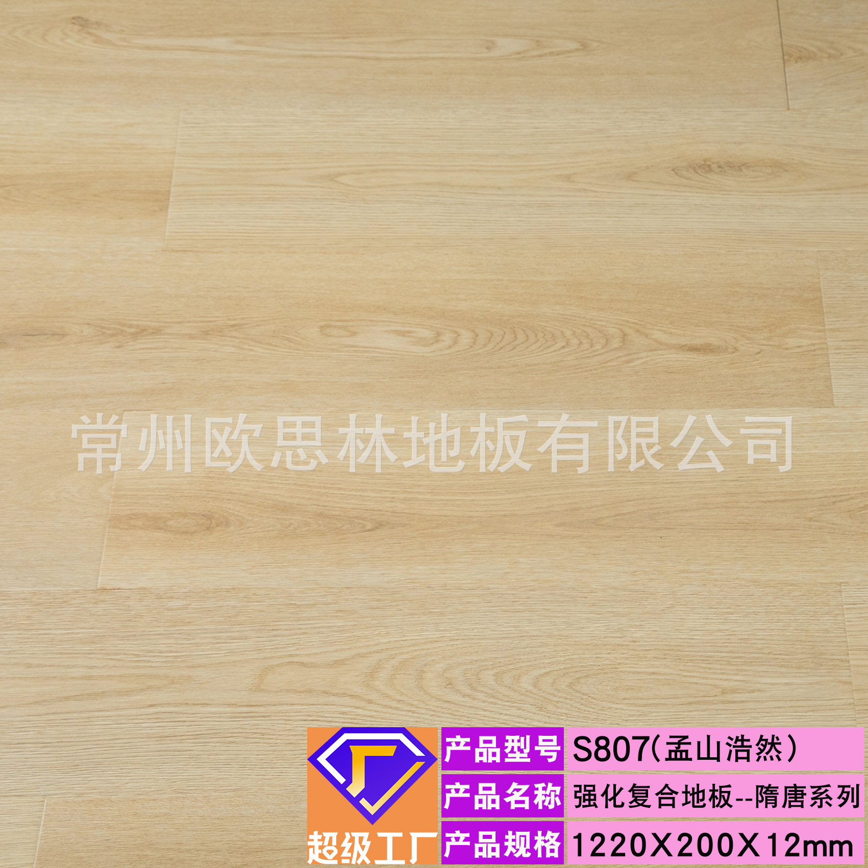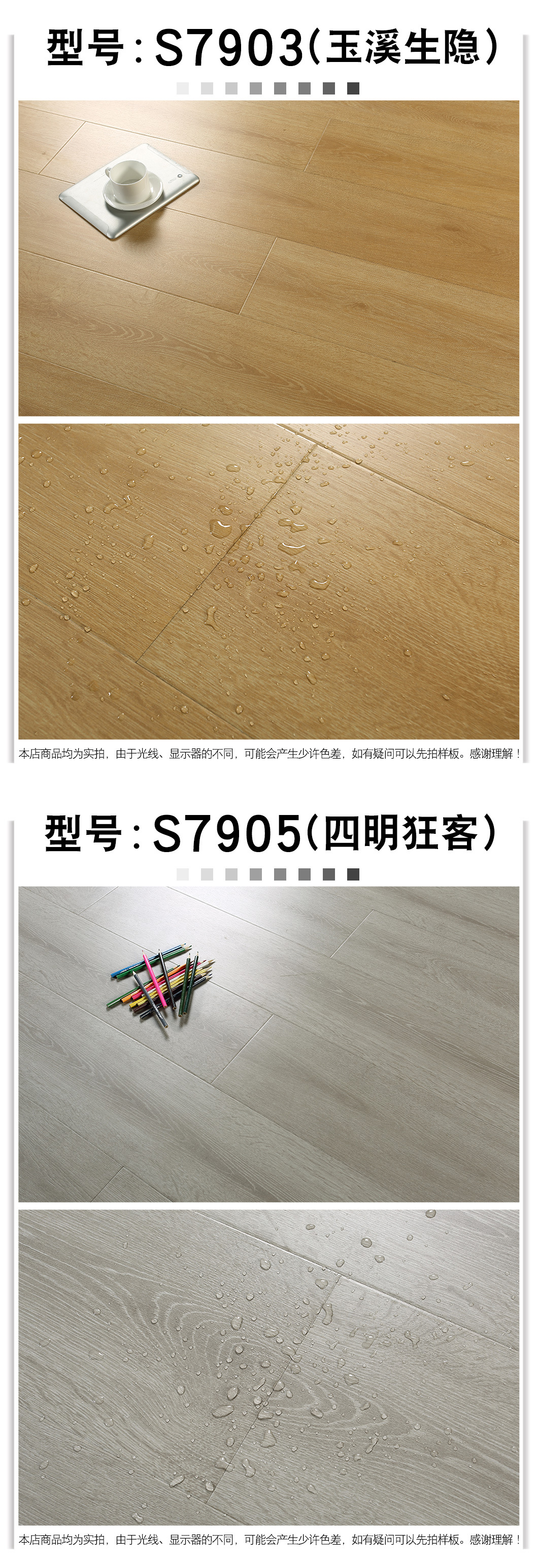 北欧冷色系原木色 12mm强化复合地板防潮锁扣 家用工装商用木地板