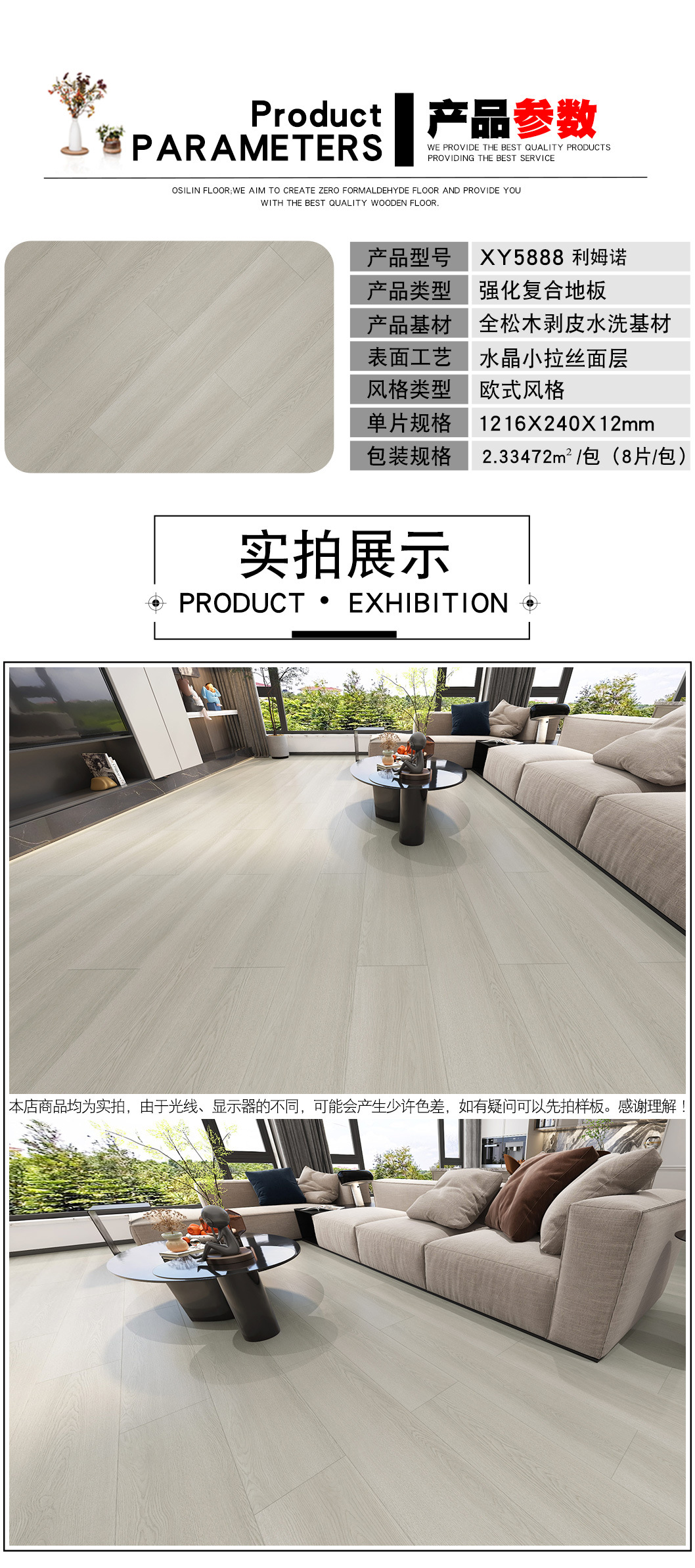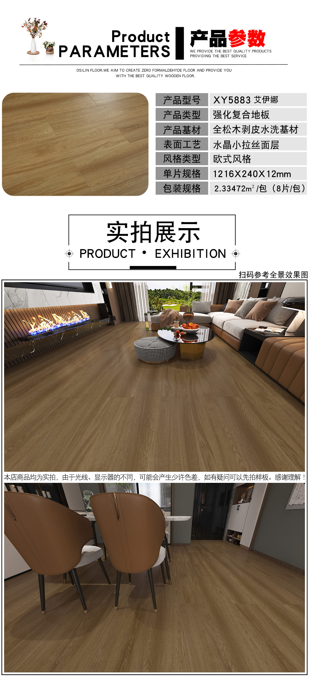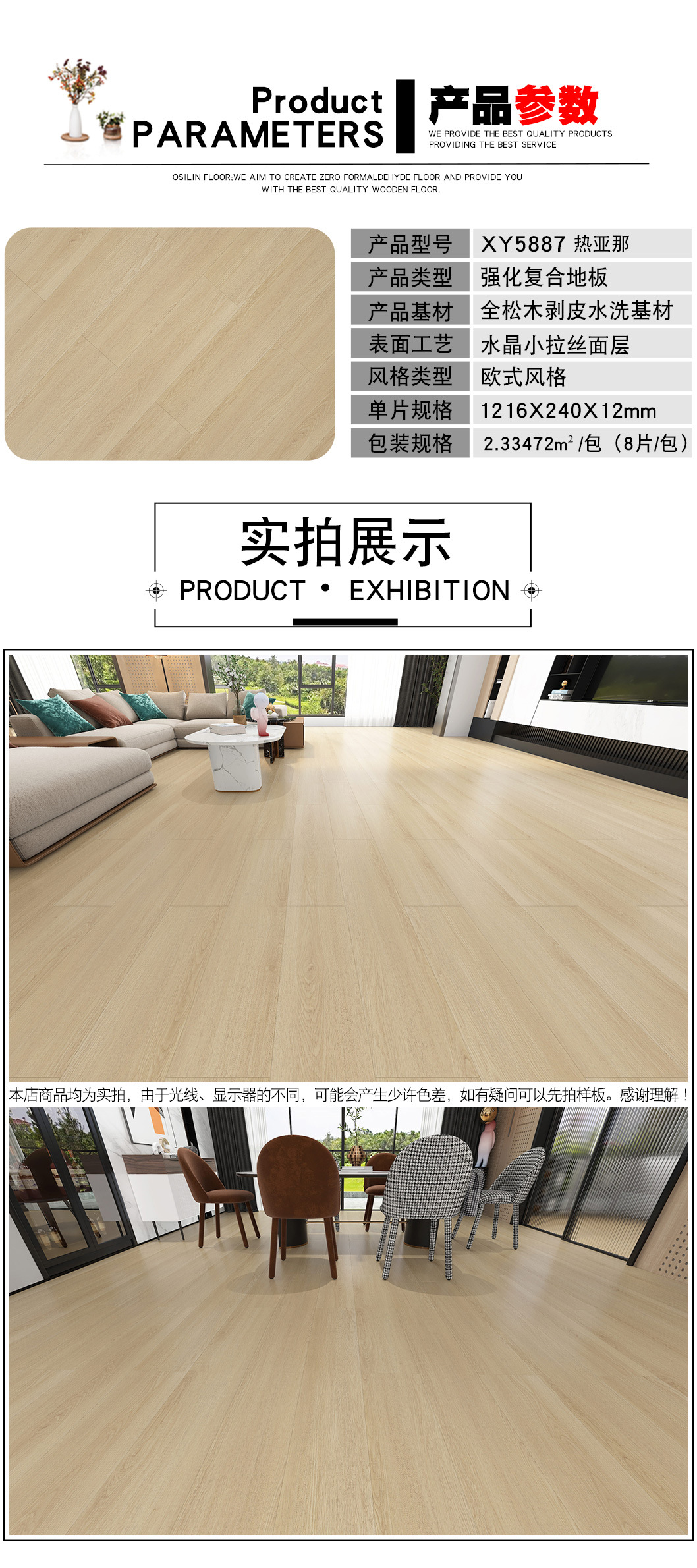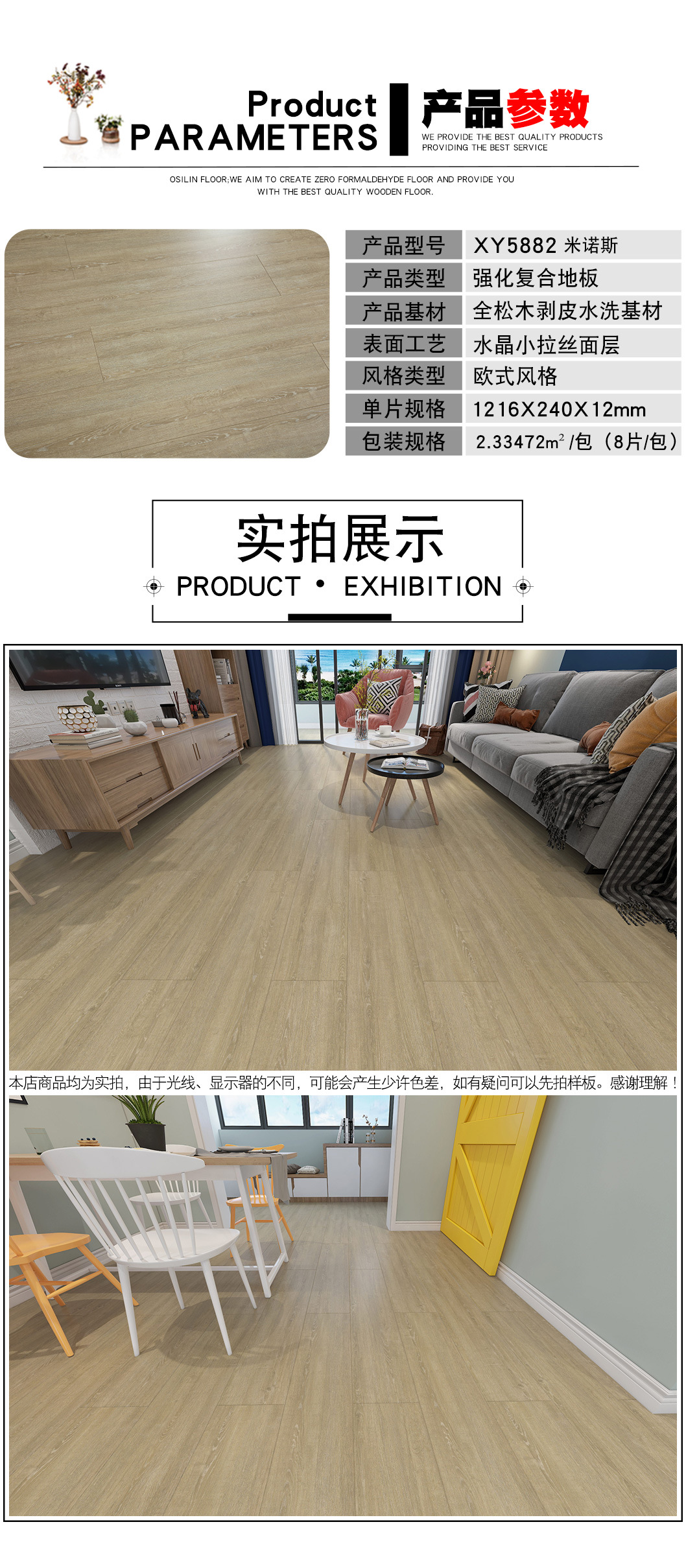 强化复合地板日式木纹12mm全松木水洗基材家装室内锁扣耐磨金刚板