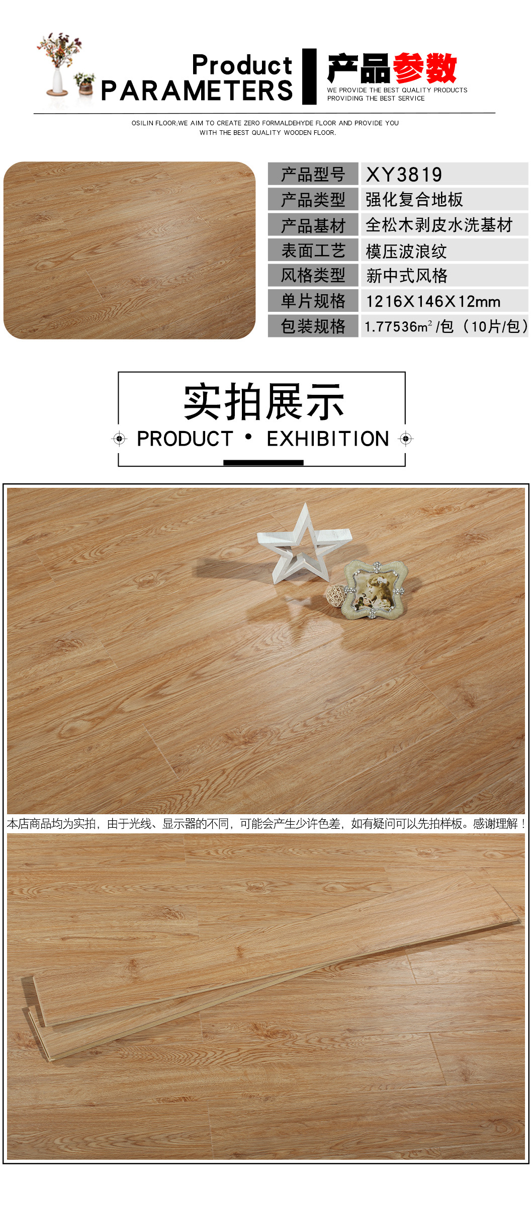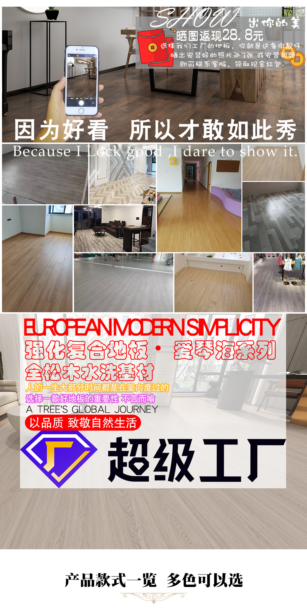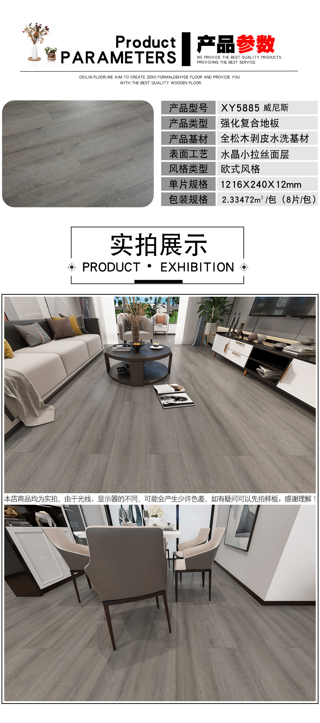 强化复合地板日式木纹12mm全松木水洗基材家装室内锁扣耐磨金刚板