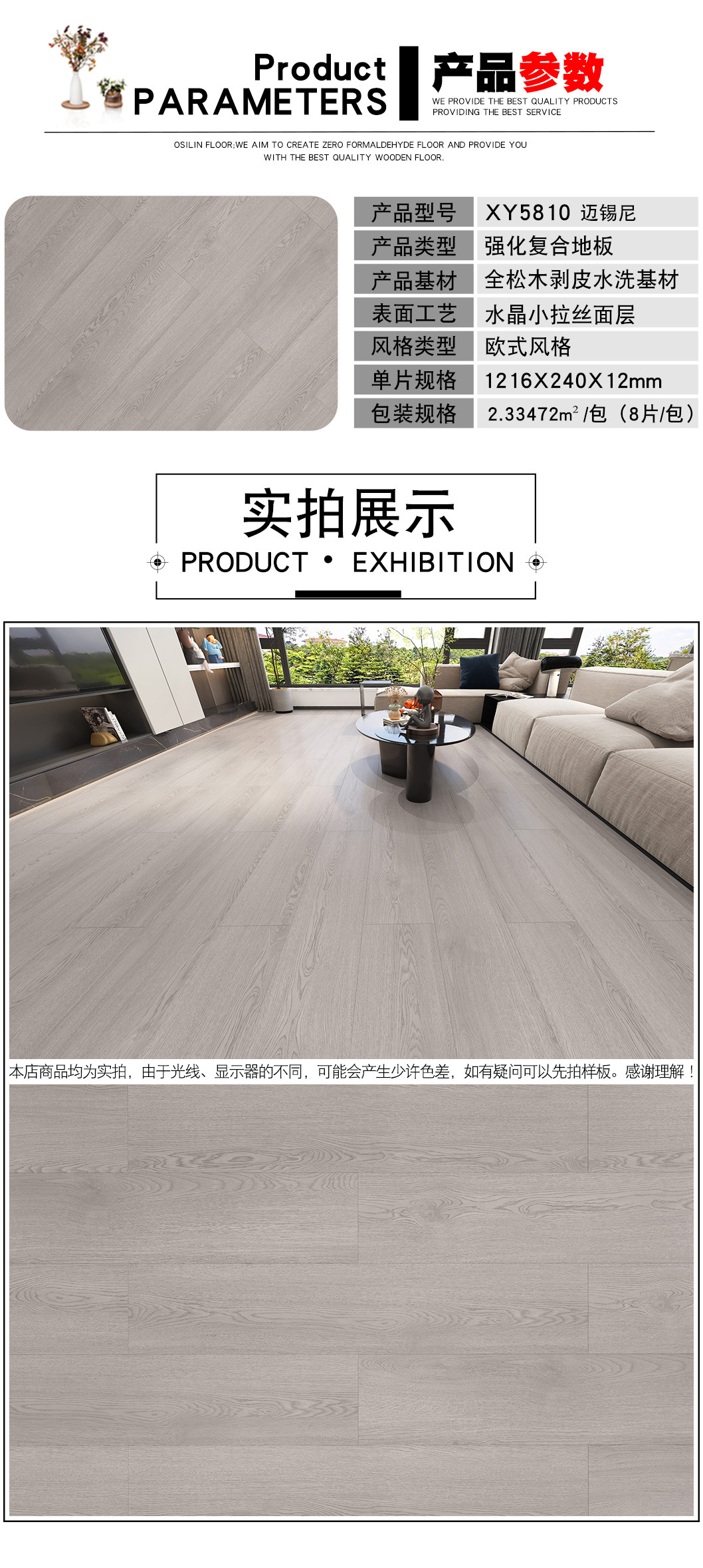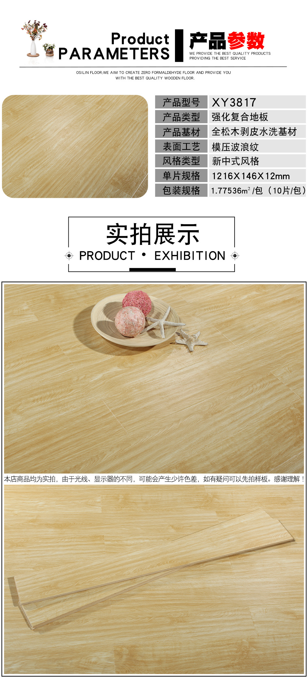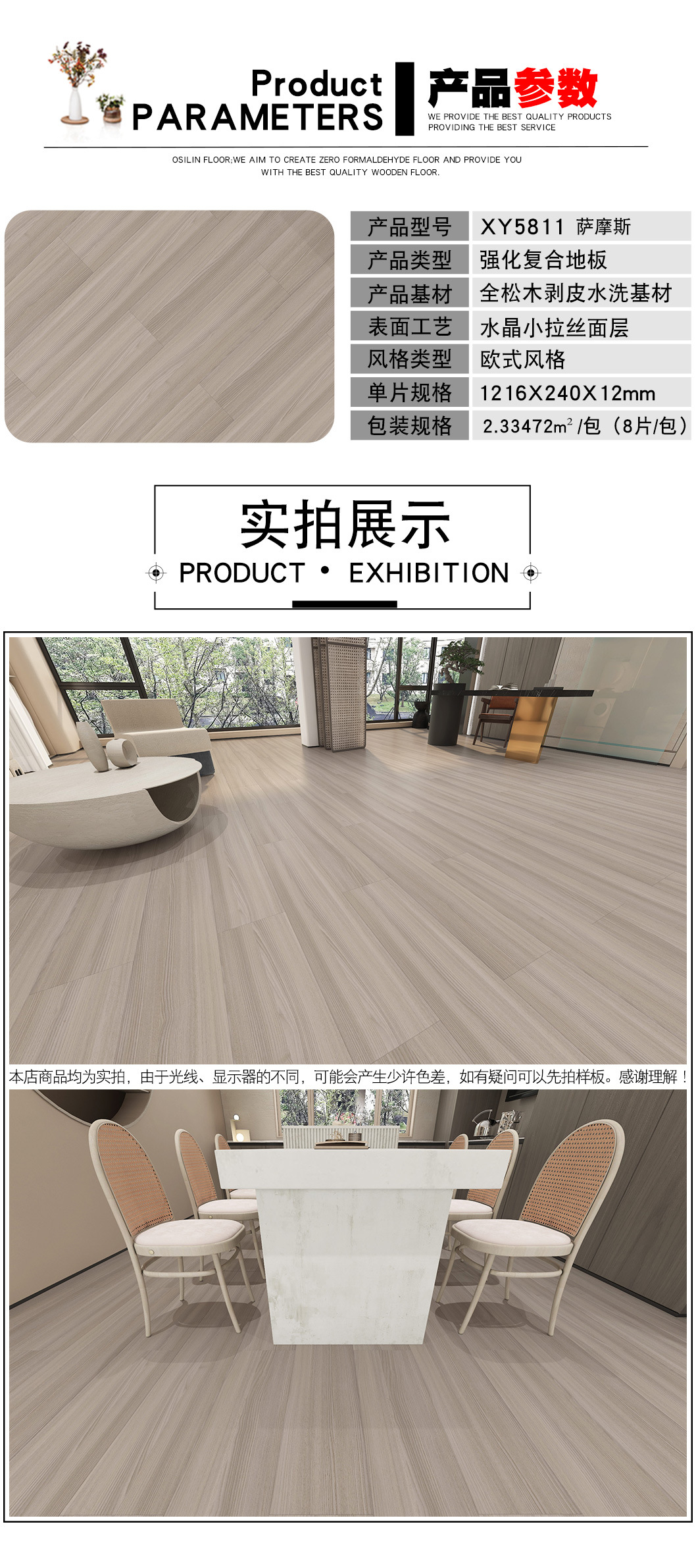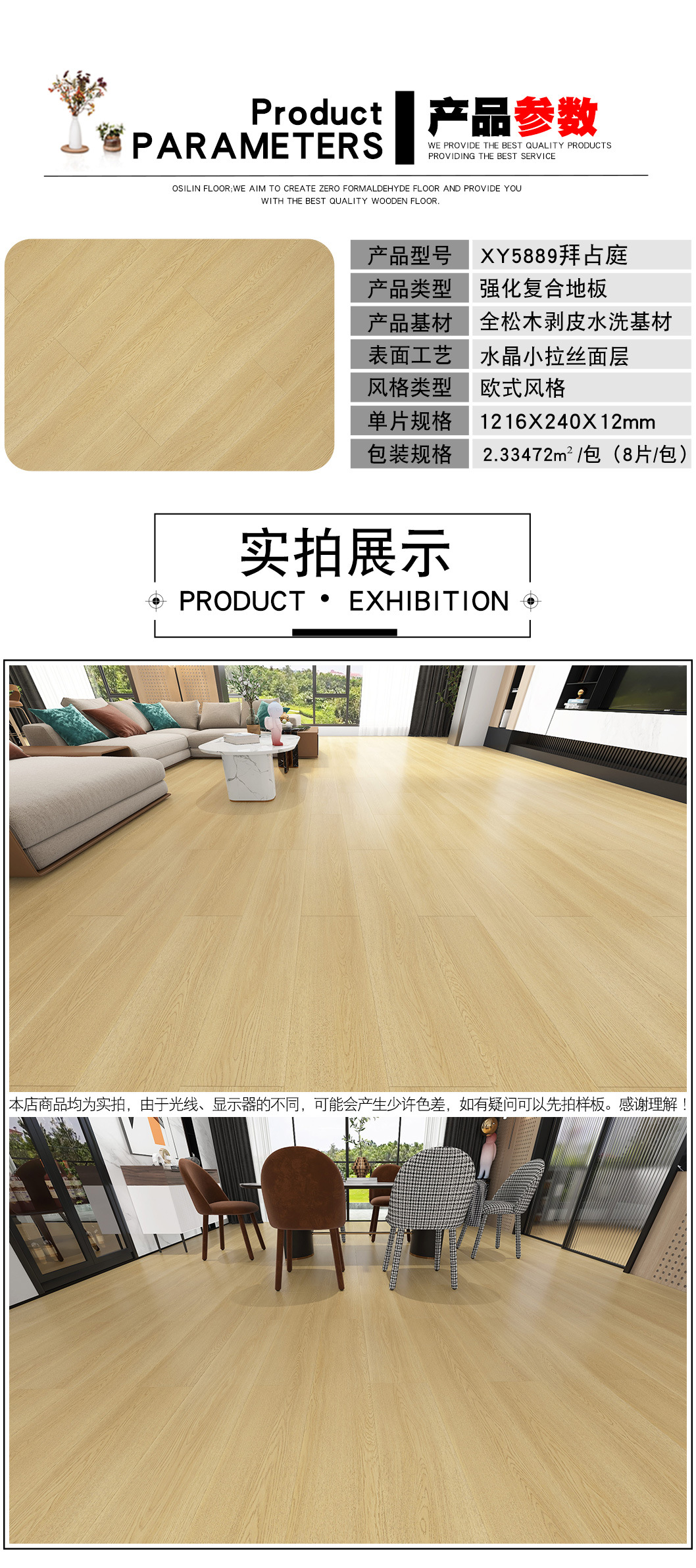 强化复合地板日式木纹12mm全松木水洗基材家装室内锁扣耐磨金刚板