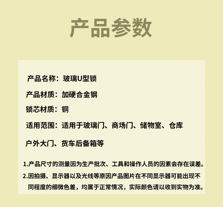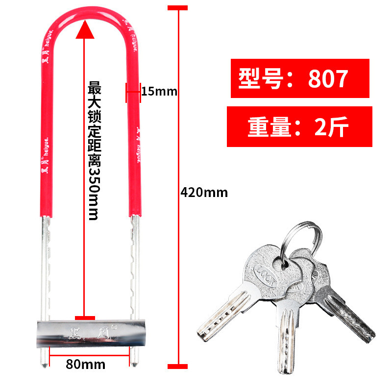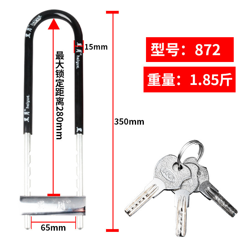 玻璃门锁双开U型锁商铺门锁店面锁摩托车锁加长加粗锁具配件批发