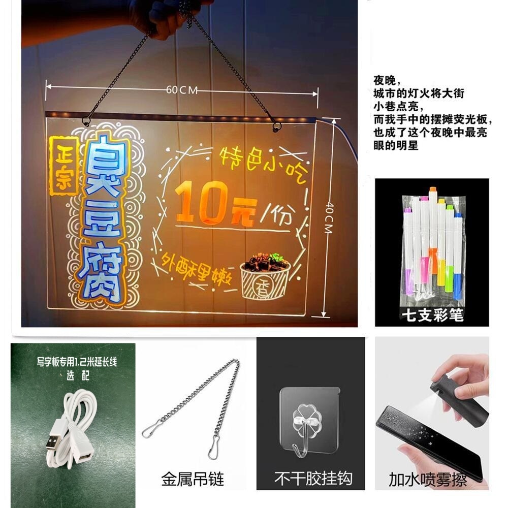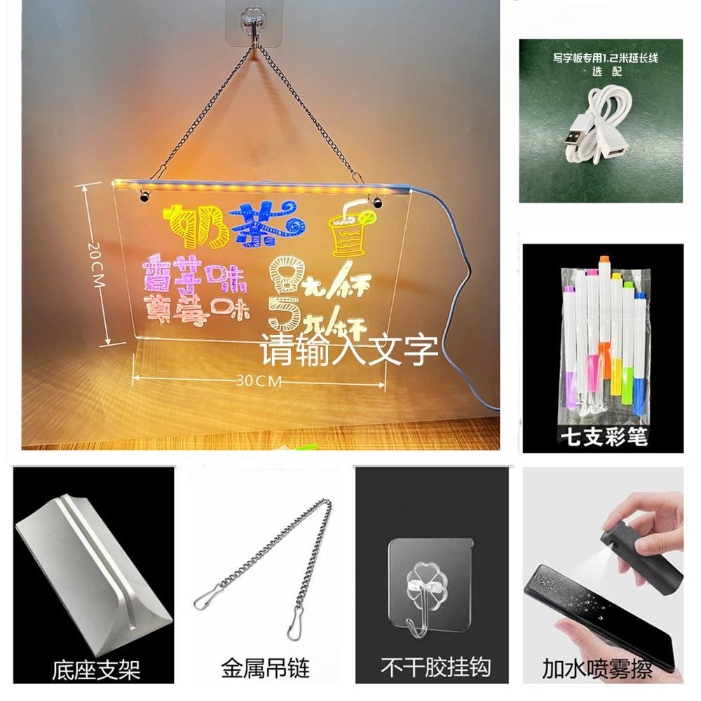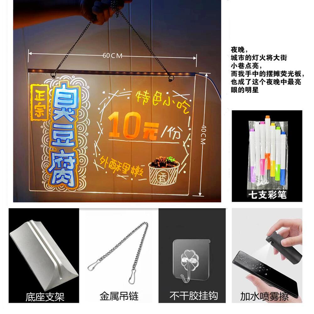 可擦手绘发光桌灯亚克力吊挂摆摊氛围灯 diy留言小夜灯材料包现货