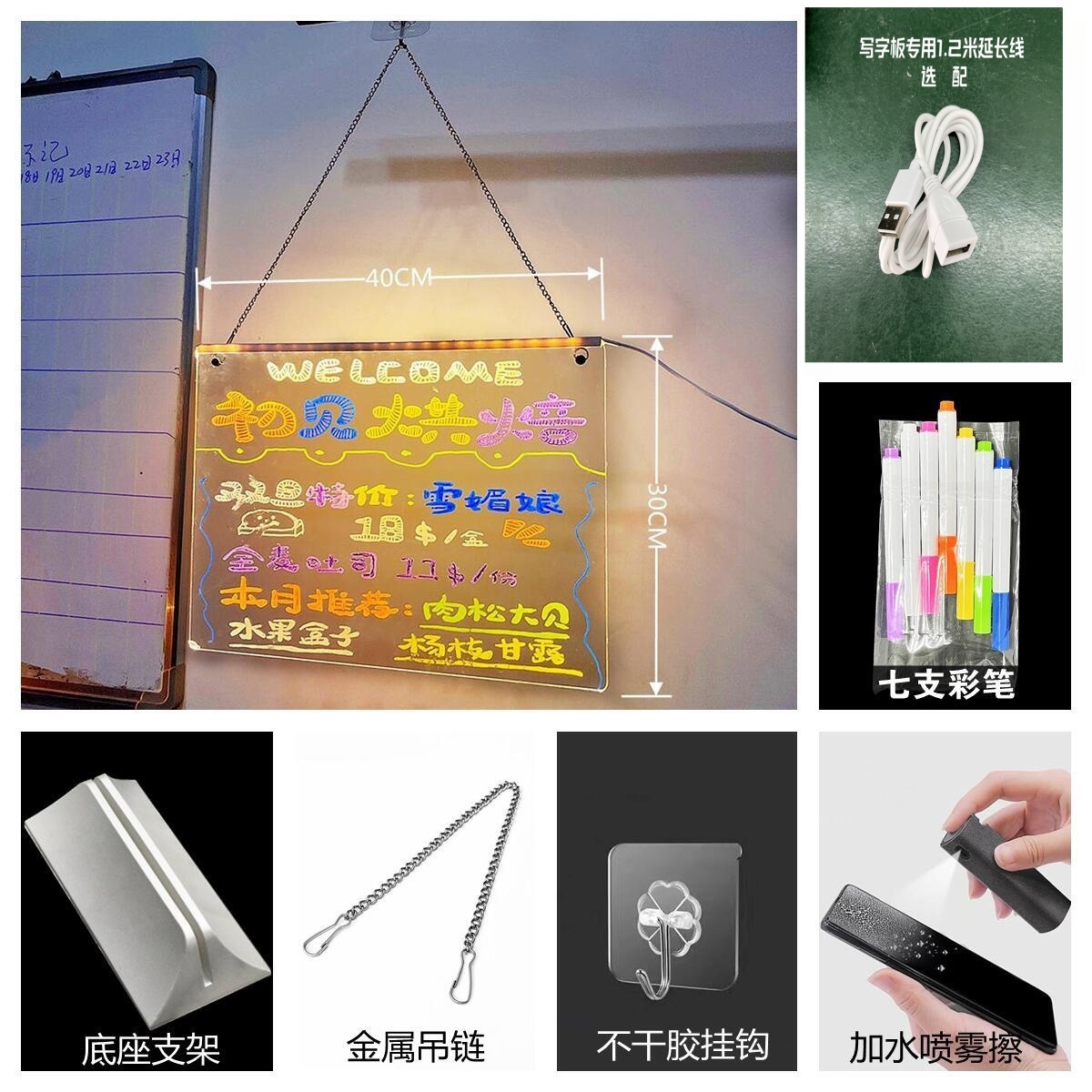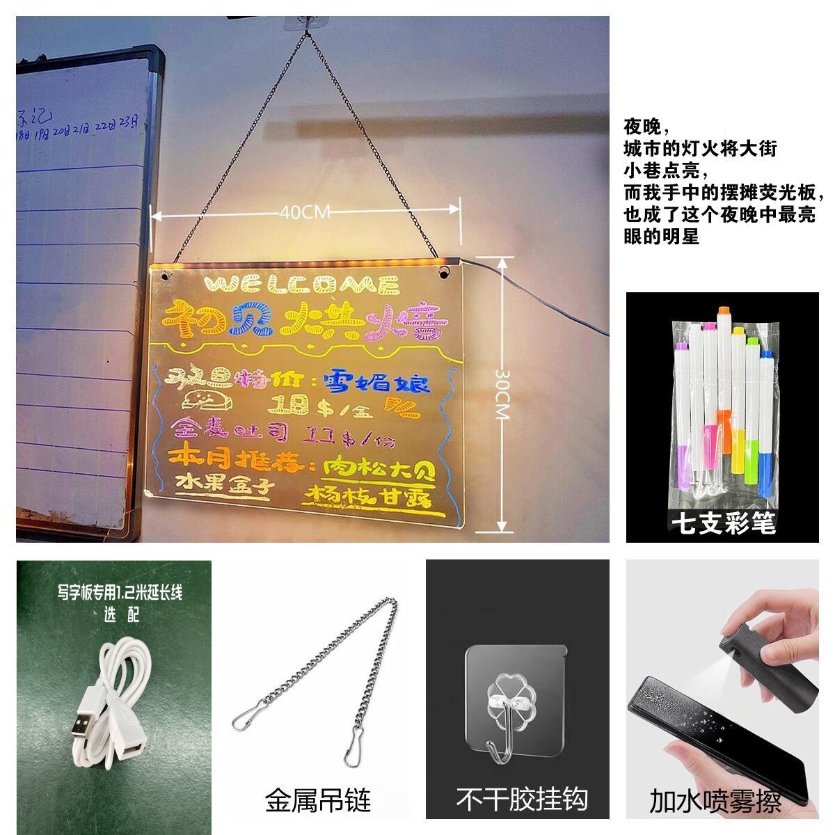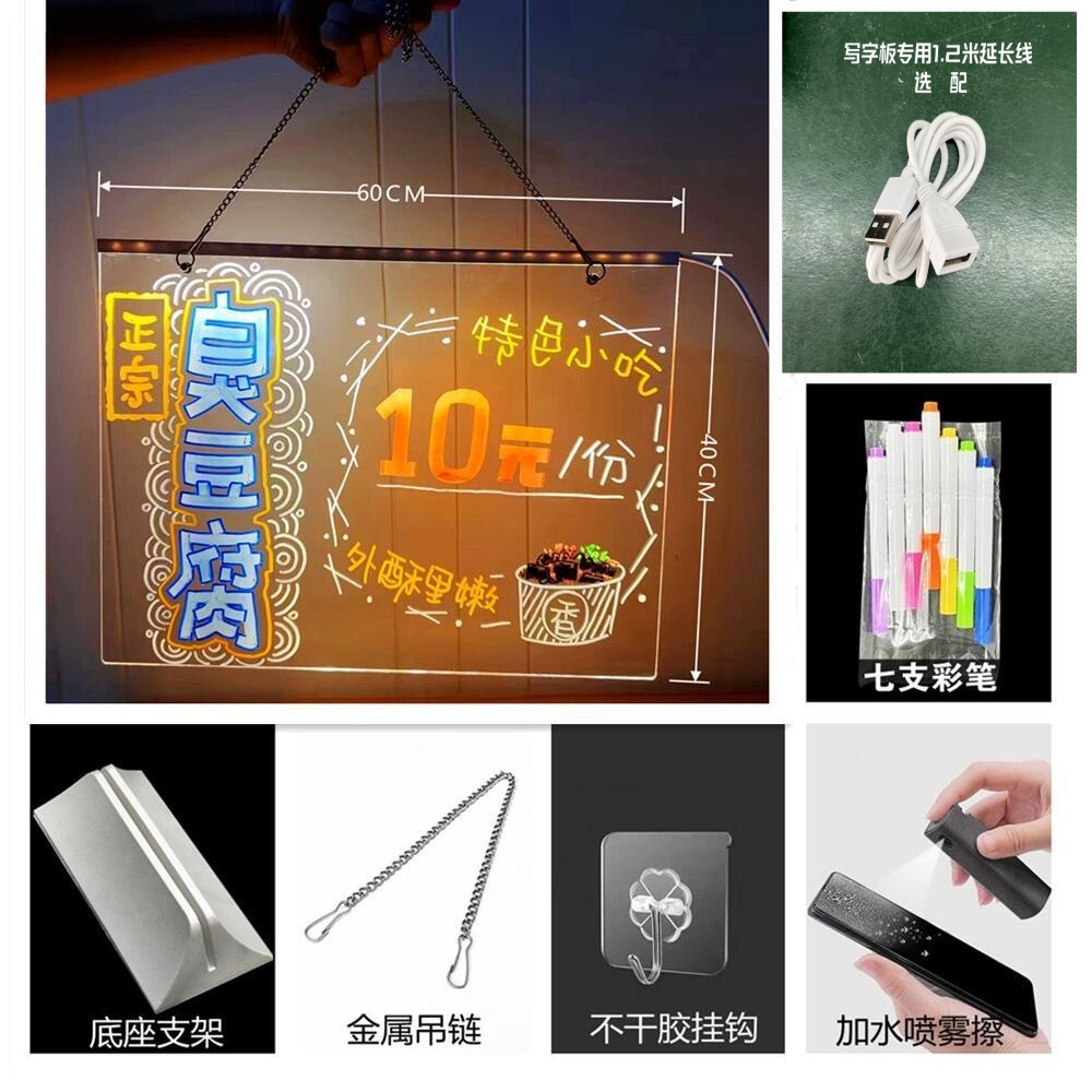 可擦手绘发光桌灯亚克力吊挂摆摊氛围灯 diy留言小夜灯材料包现货