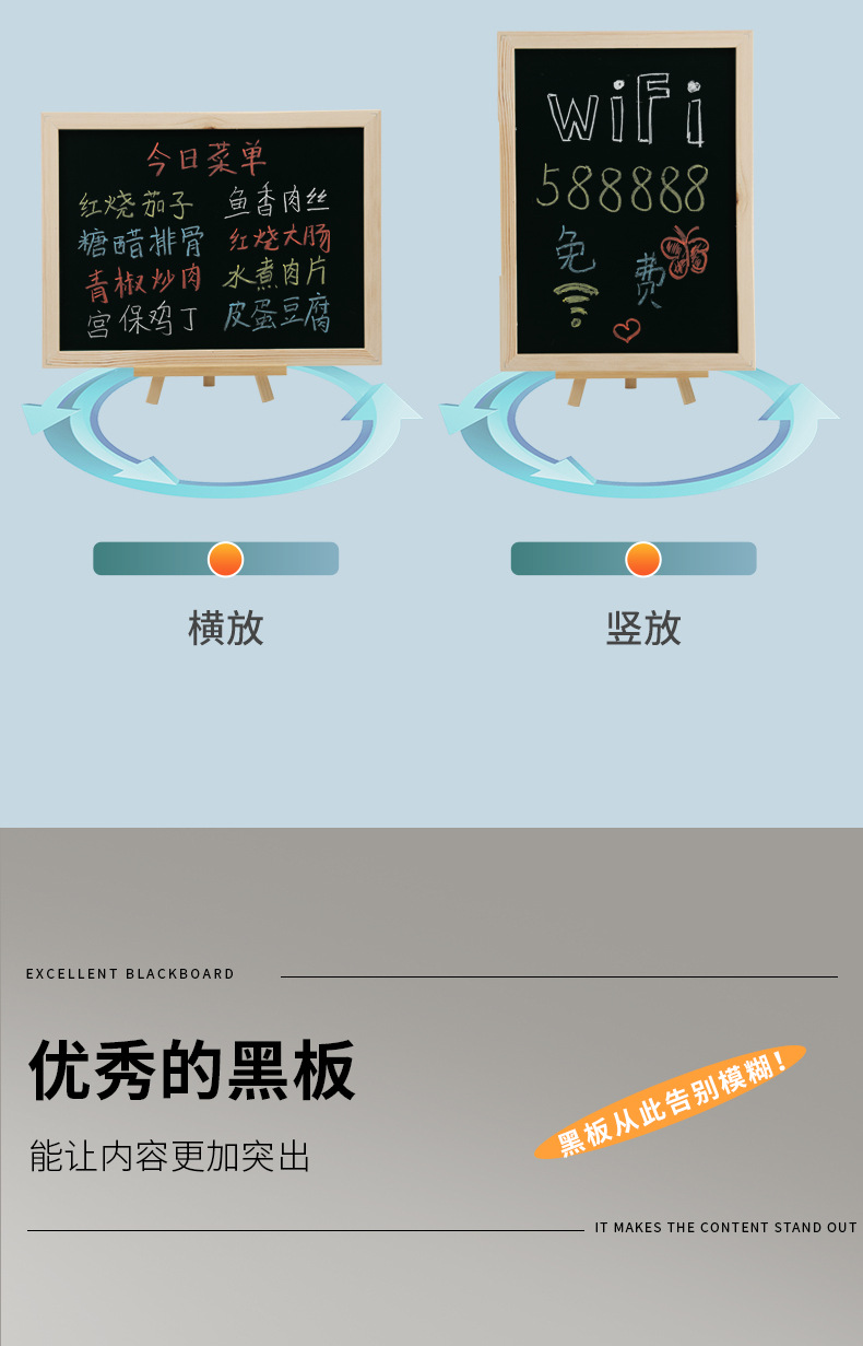 | 20 * 35cm double-sided bracket blackboard (with magnetic)(20*35cm双面支架黑板(带磁)) | USD $3.63 | 9999 piece available |