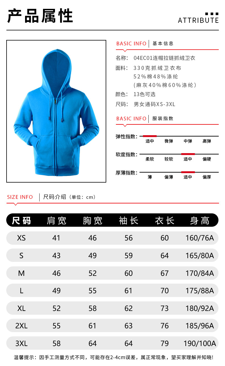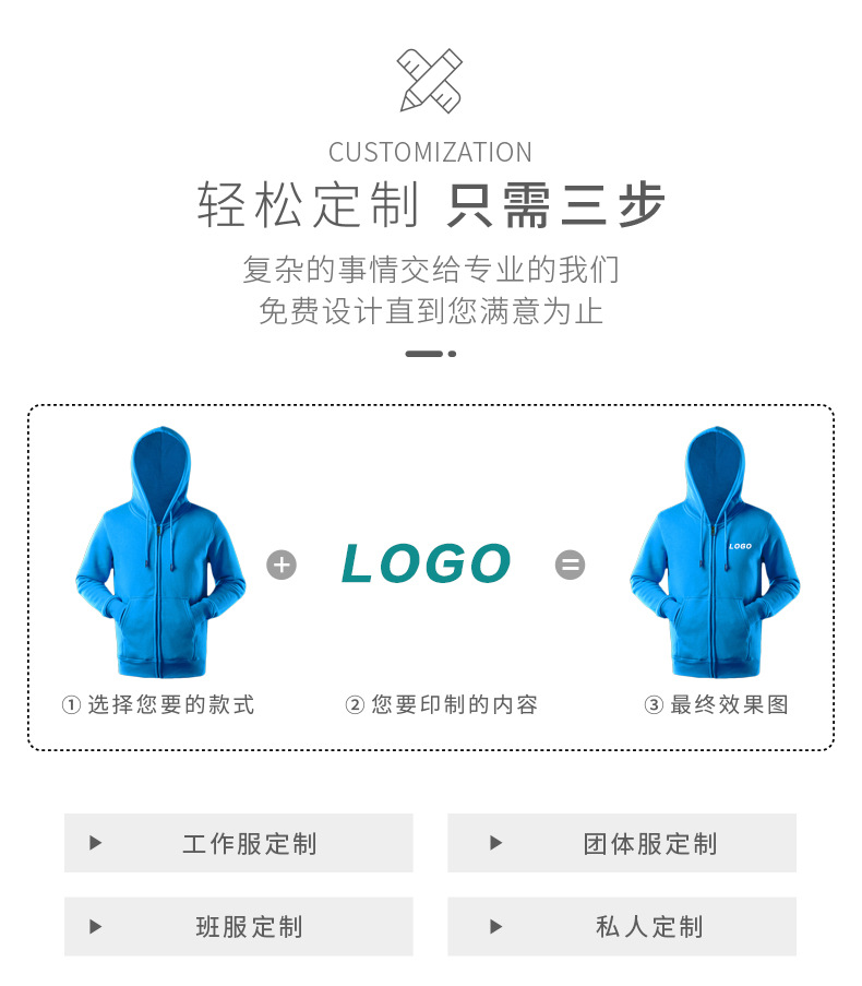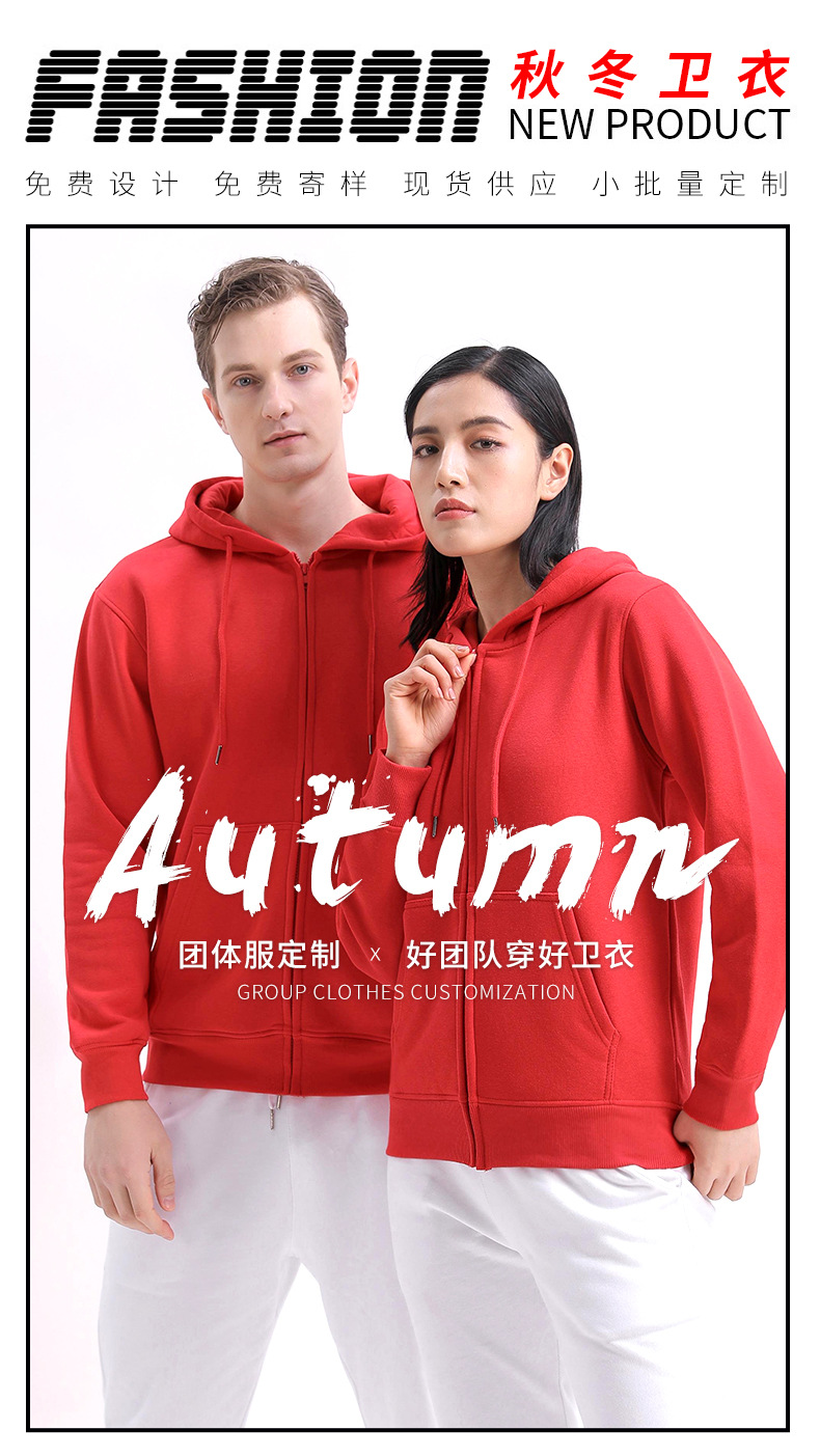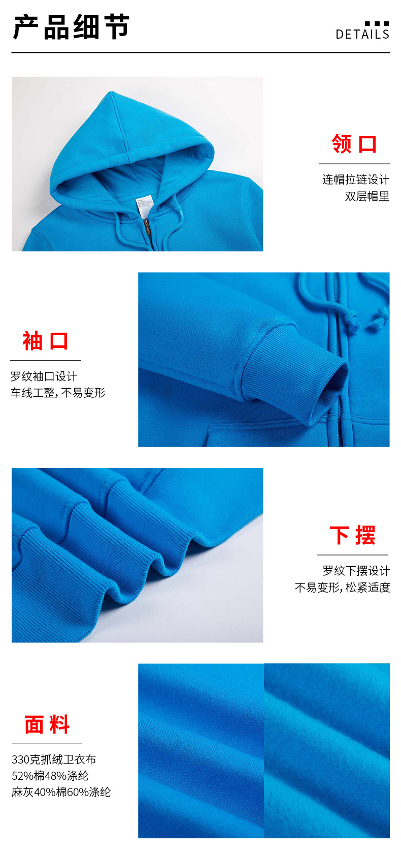 330g拉链抓绒卫衣定制工作服企业年会长袖工作服定制连帽工作服