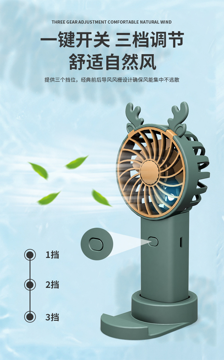 一件代发迷你桌面风扇 便携USB充电夏天户外手机支架卡通手持风扇