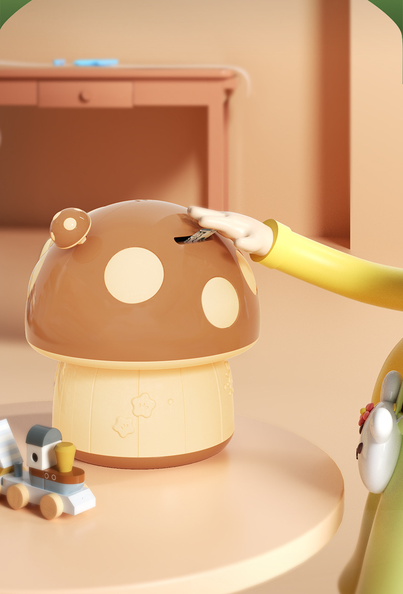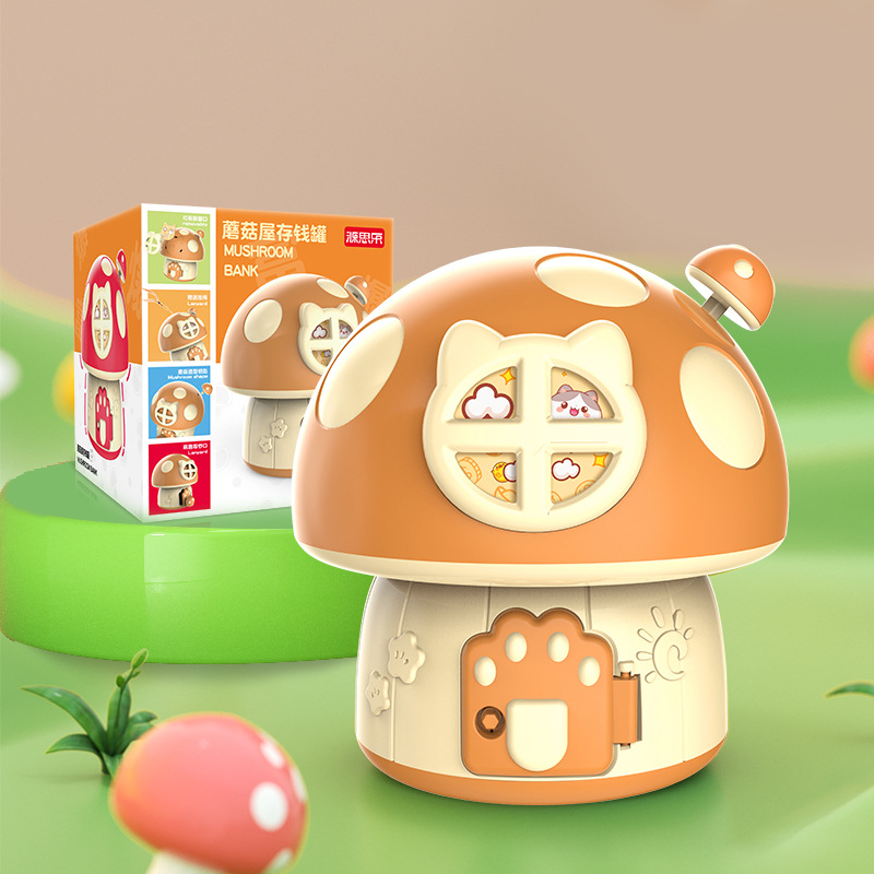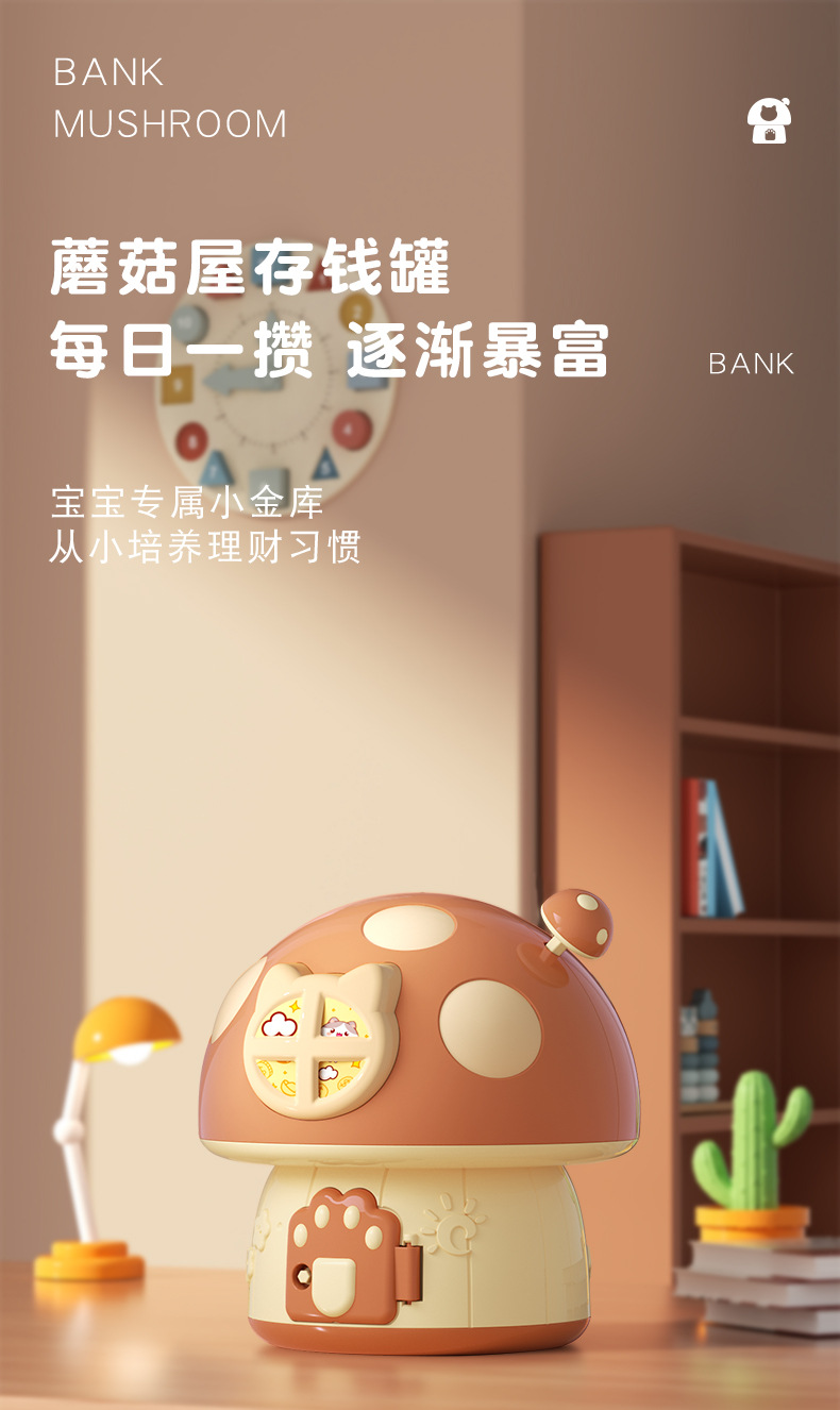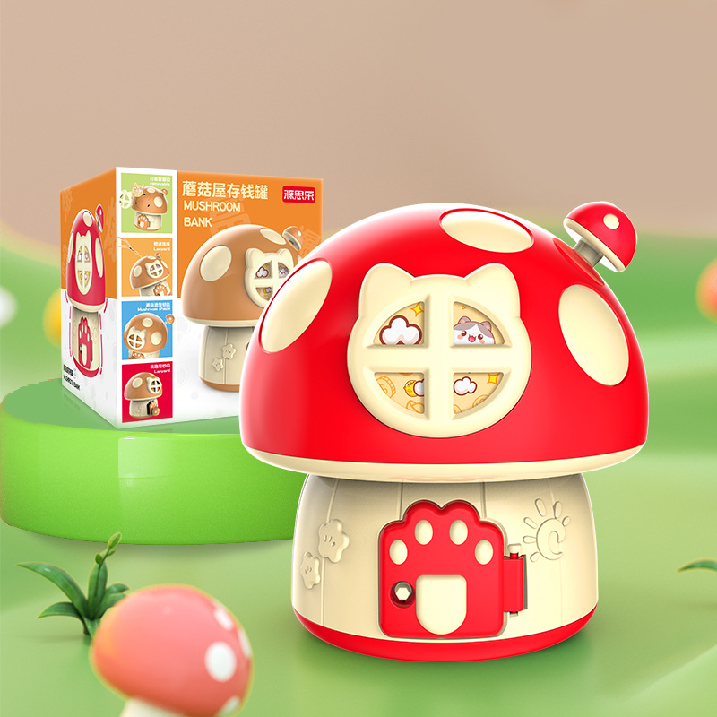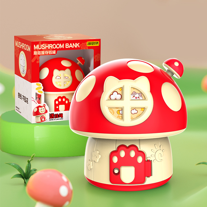 卡通蘑菇存钱罐 创意新奇钥匙存储纸硬币蘑菇屋房子DIY幼儿园礼品