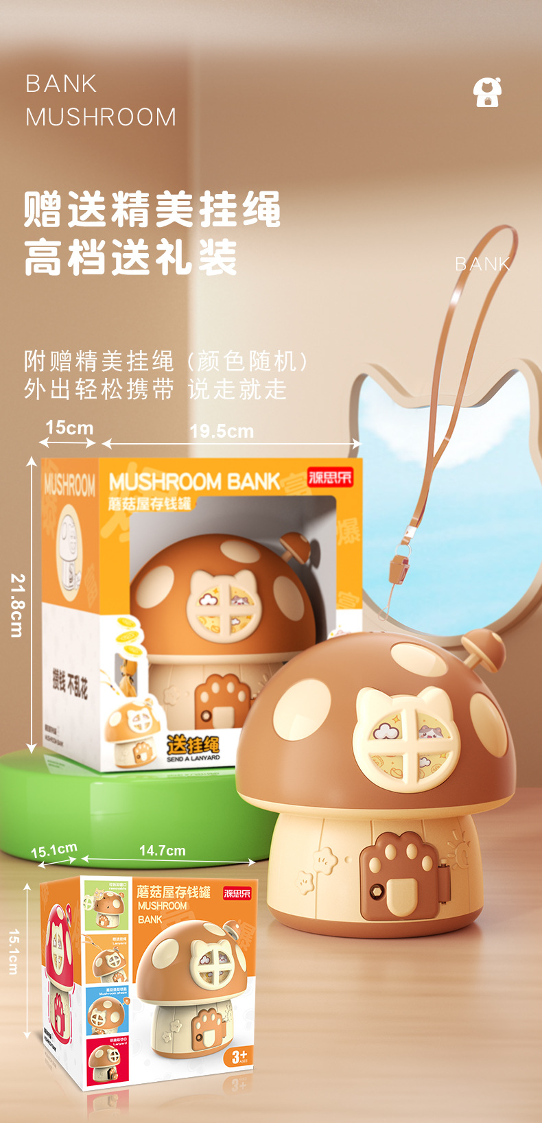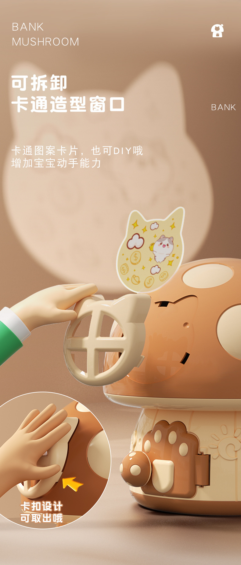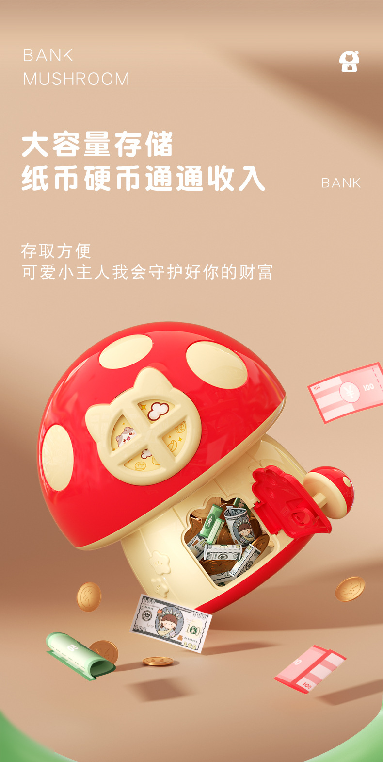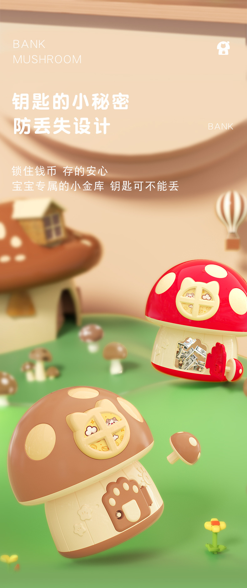 卡通蘑菇存钱罐 创意新奇钥匙存储纸硬币蘑菇屋房子DIY幼儿园礼品