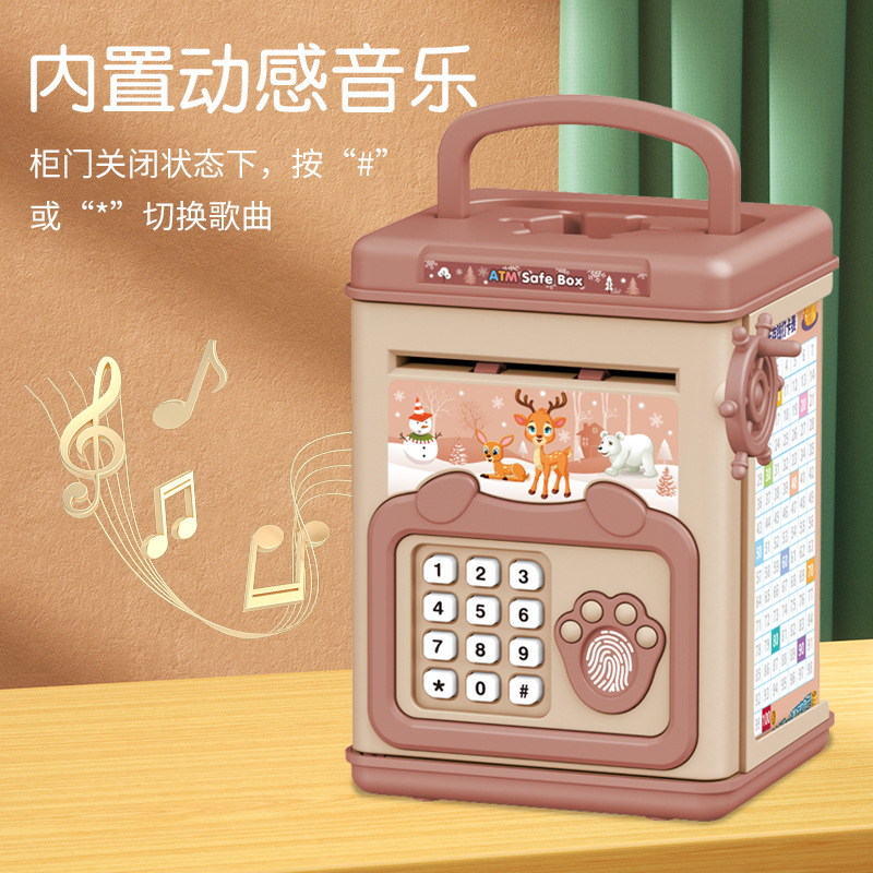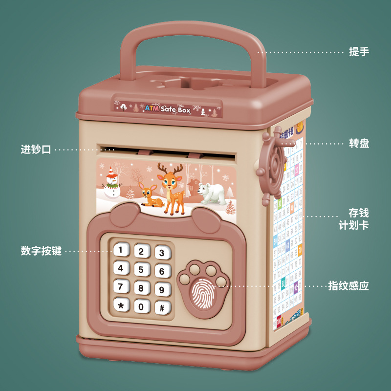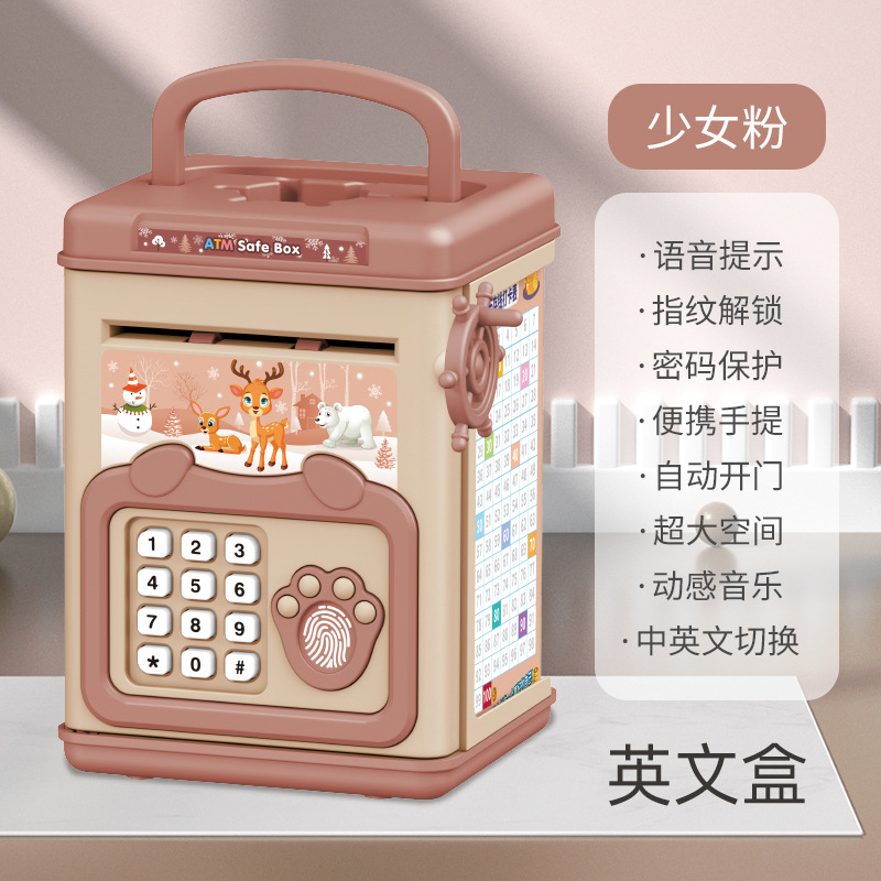 直销手提存钱罐儿童指纹语音大容量密码箱压岁钱储蓄罐生日礼物