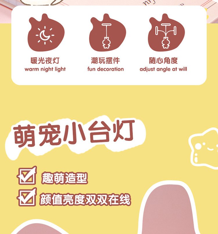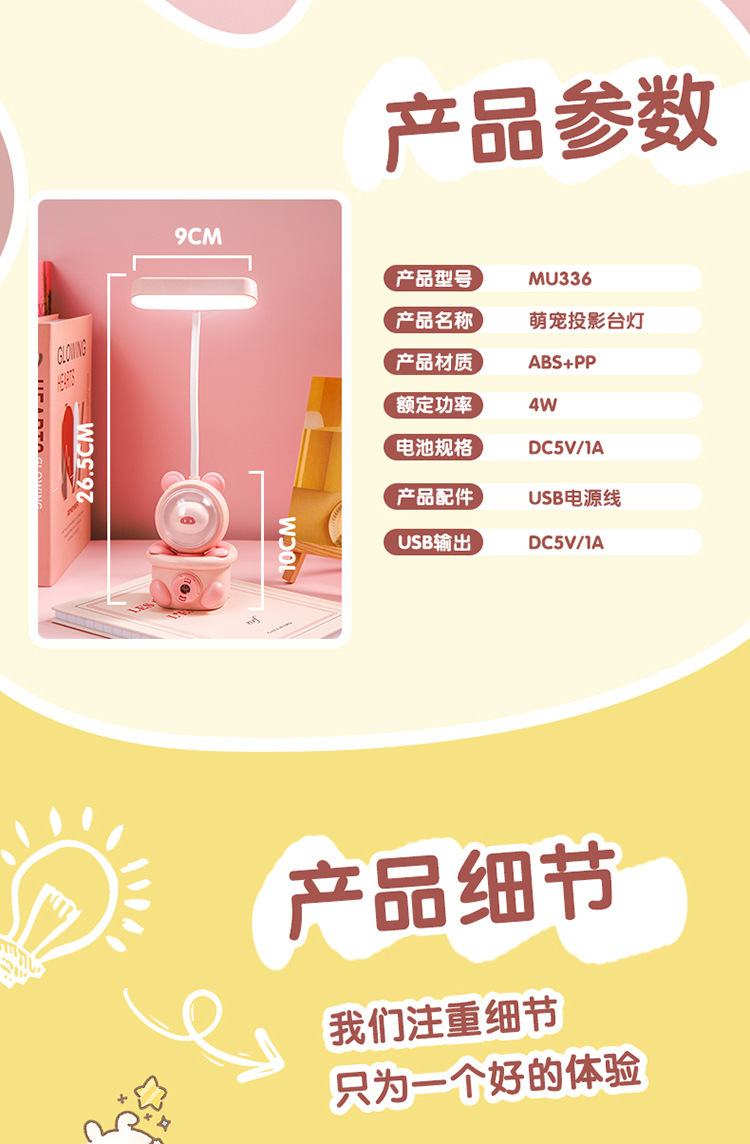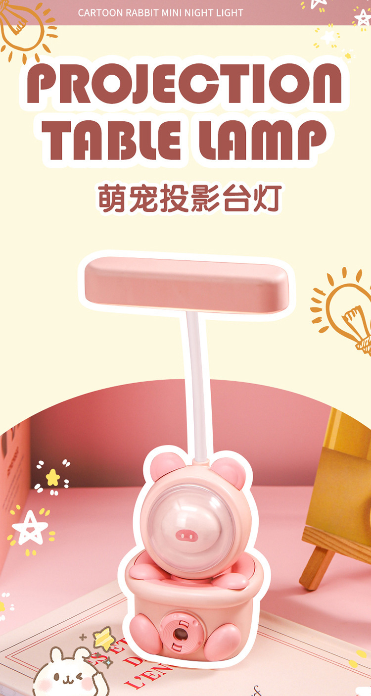 万向管折叠卡通萌宠投影充电小台灯 床头小夜灯led