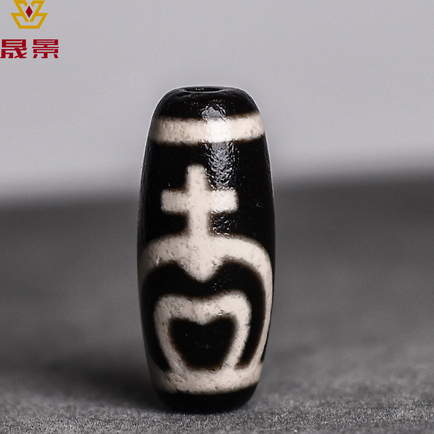 西藏天珠批发 天然玛瑙散珠菩提配饰 九眼三眼佛珠配件黑白满风化