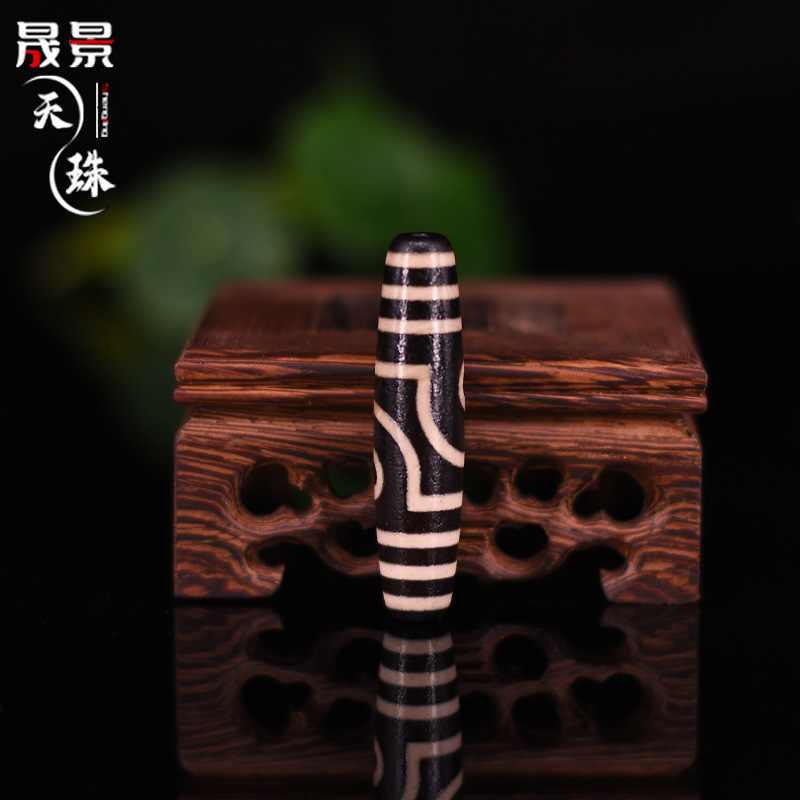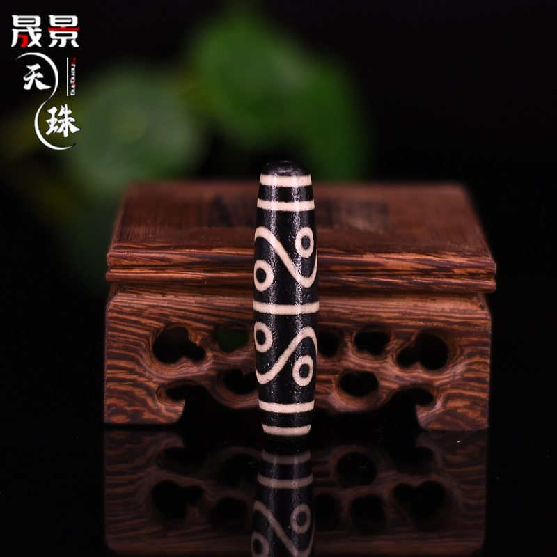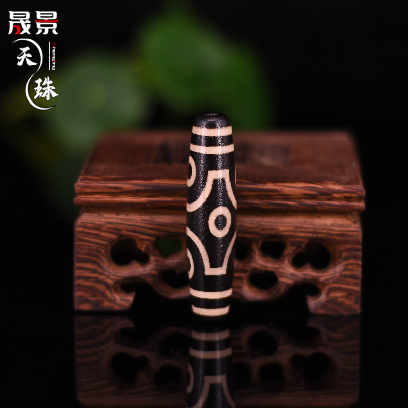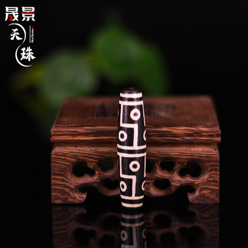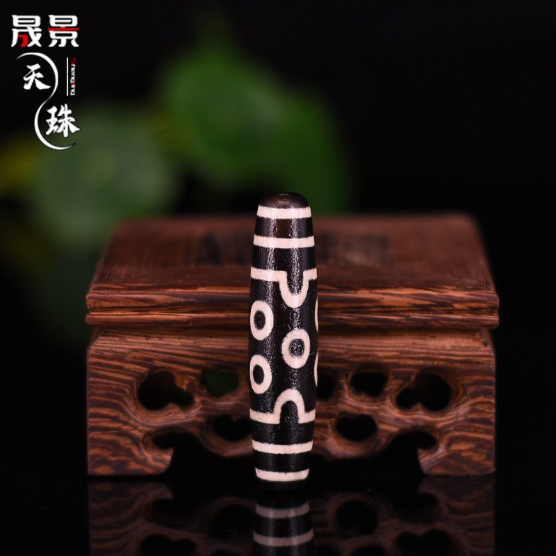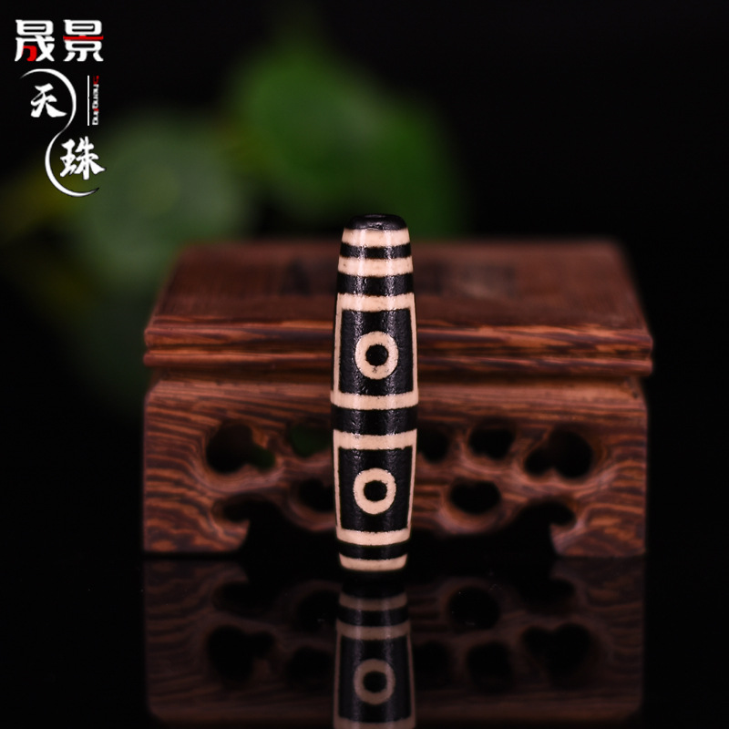 藏式天珠批发 天然玛瑙散珠黑白包浆满风化 九眼三眼菩提佛珠配件