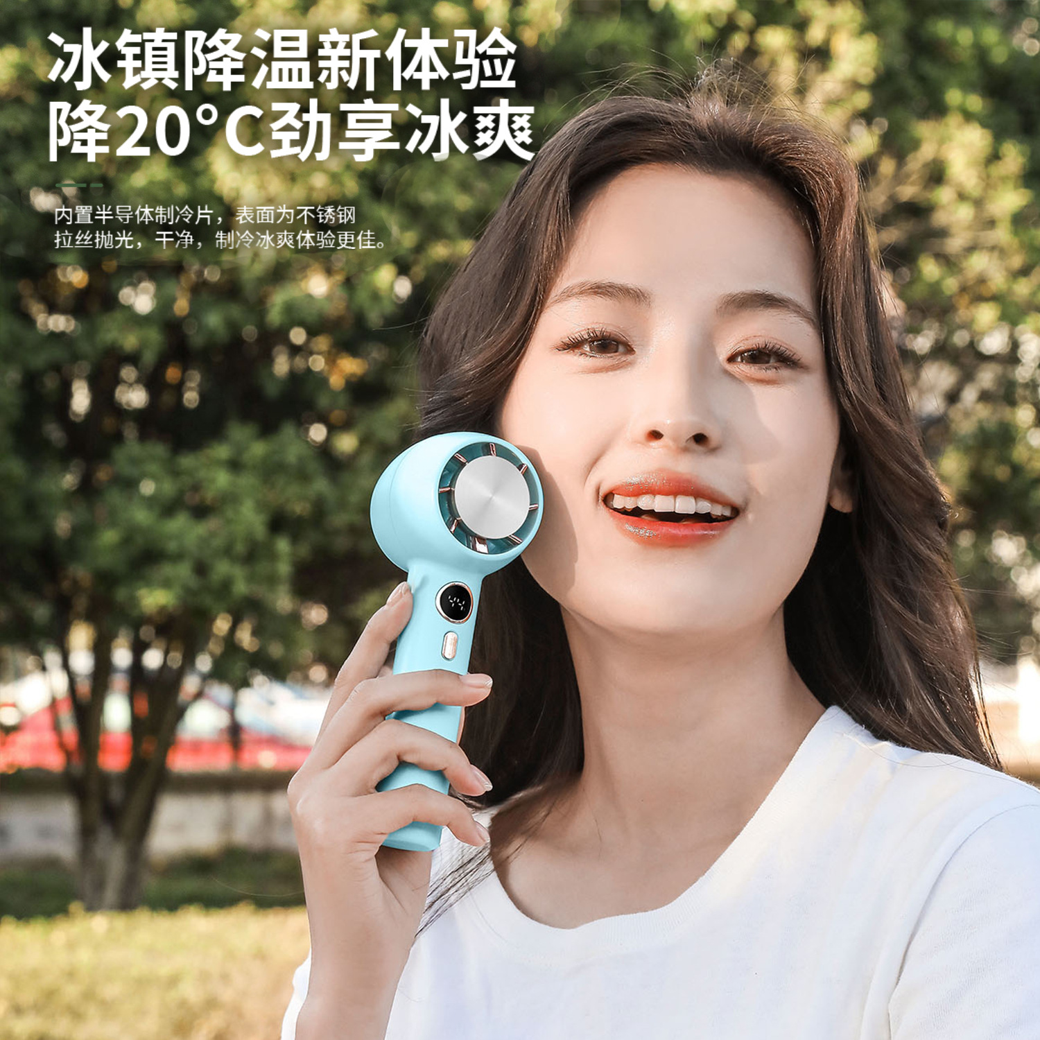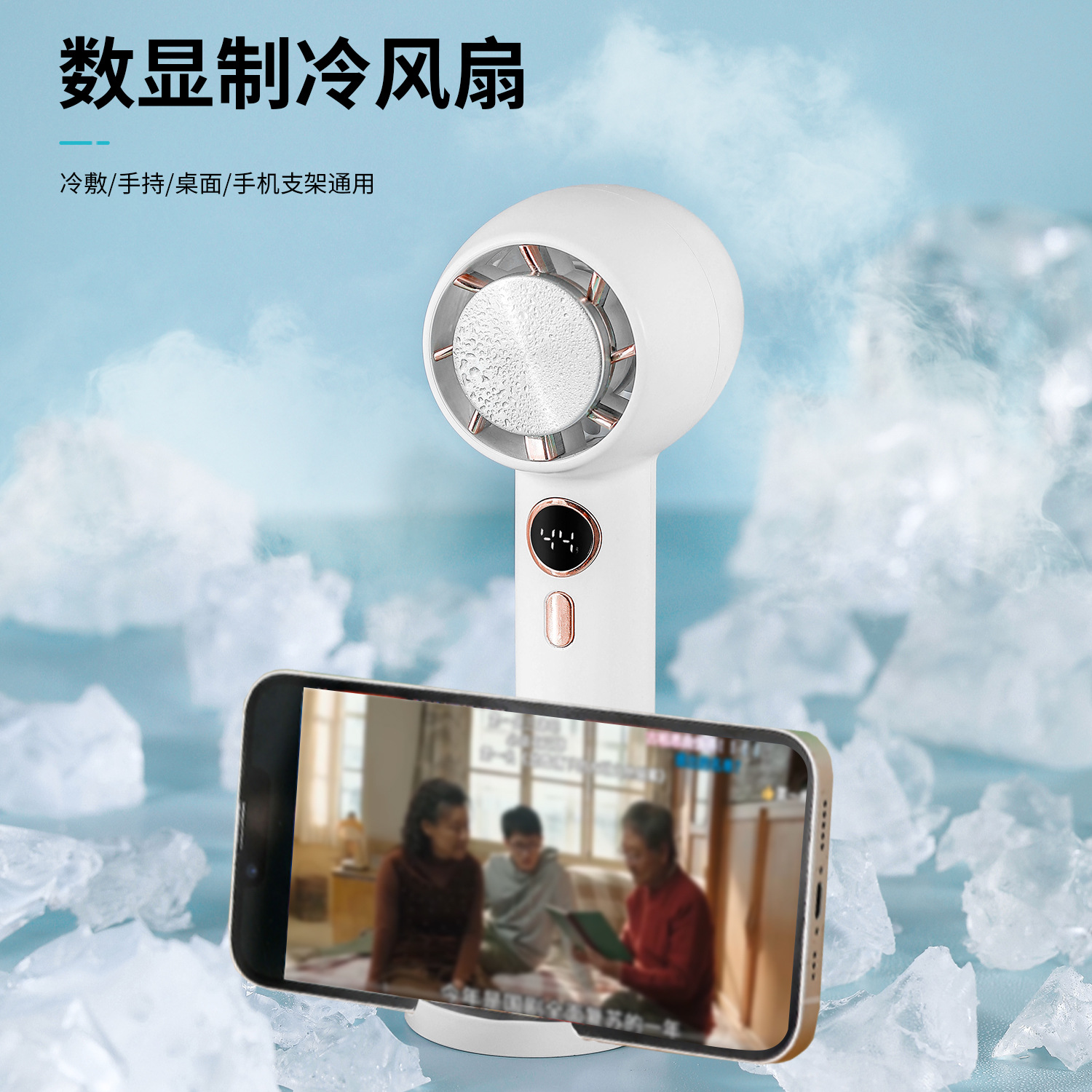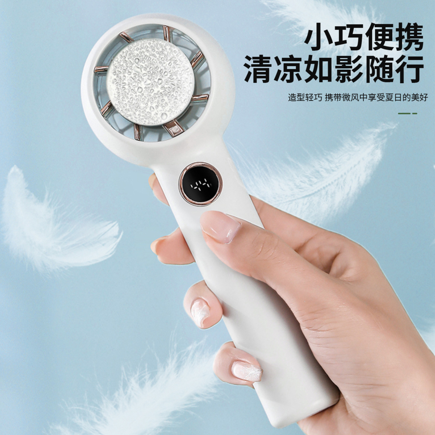 2024年新款户外USB手持小风扇 智能数显便携半导体制冷迷你电风扇