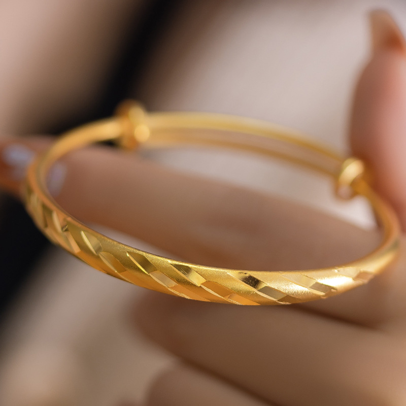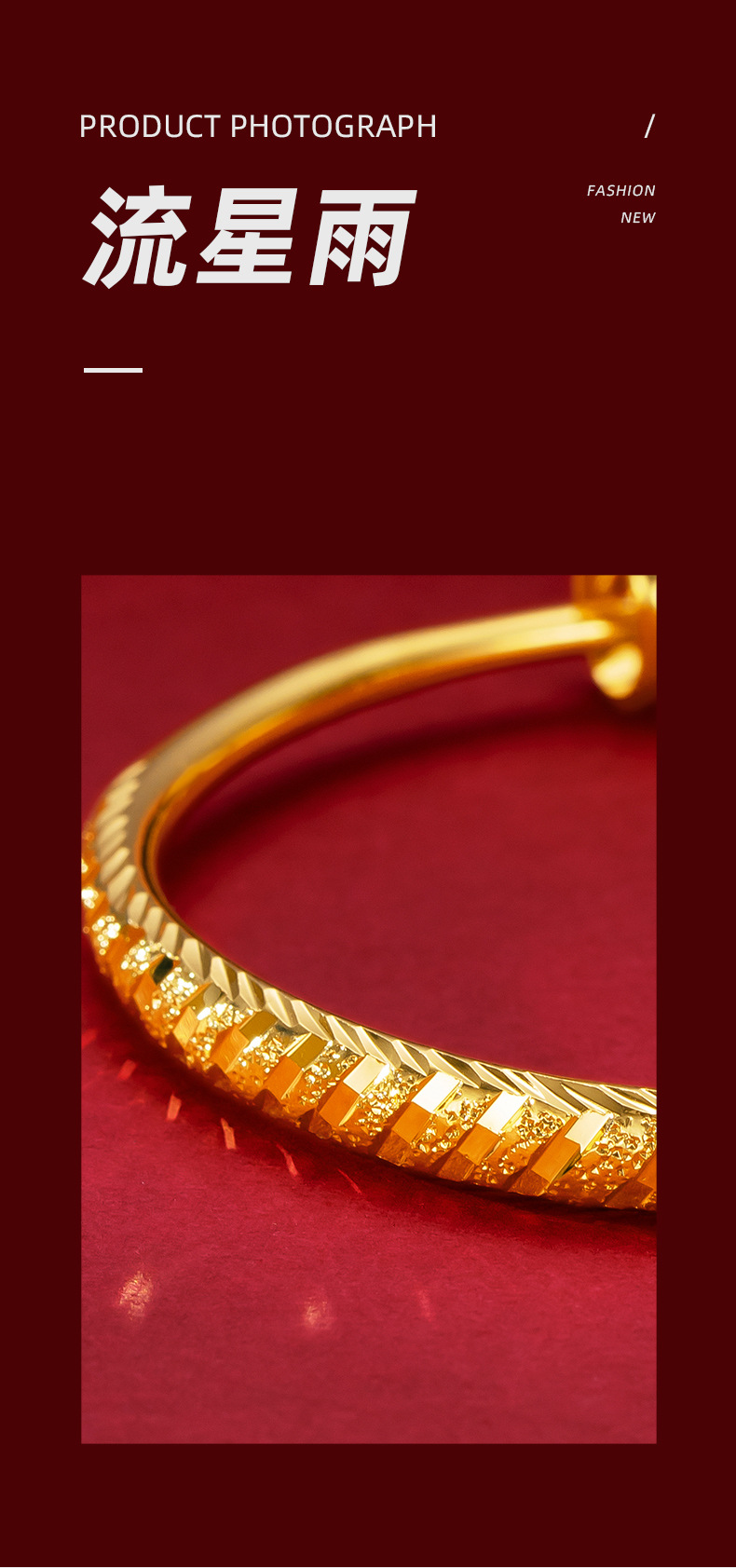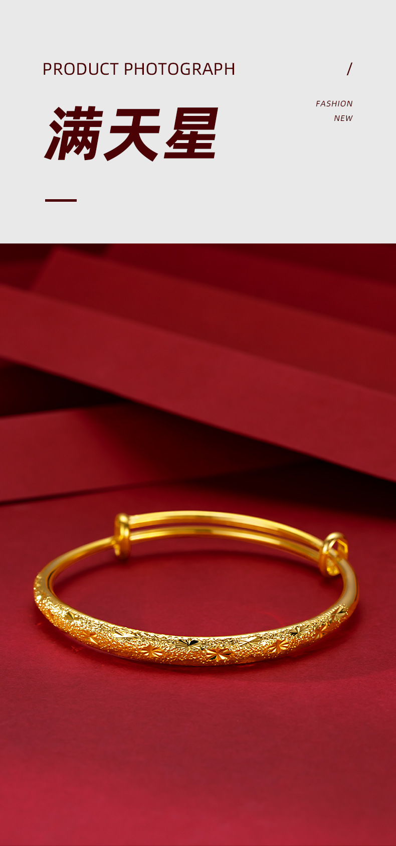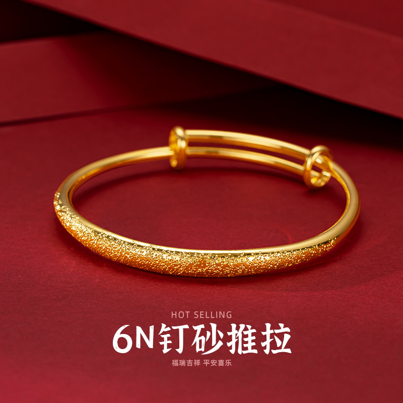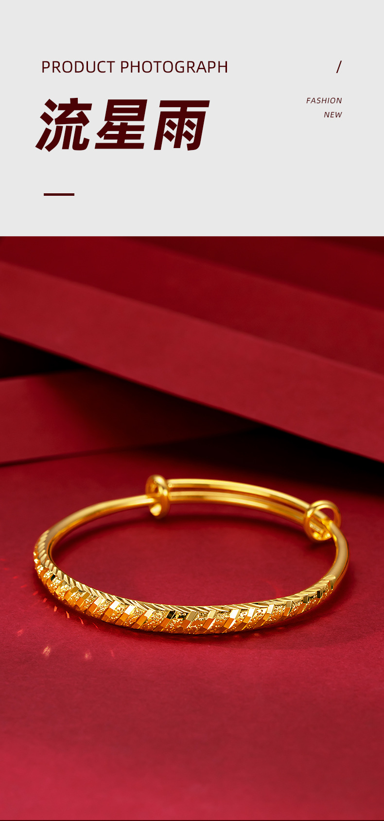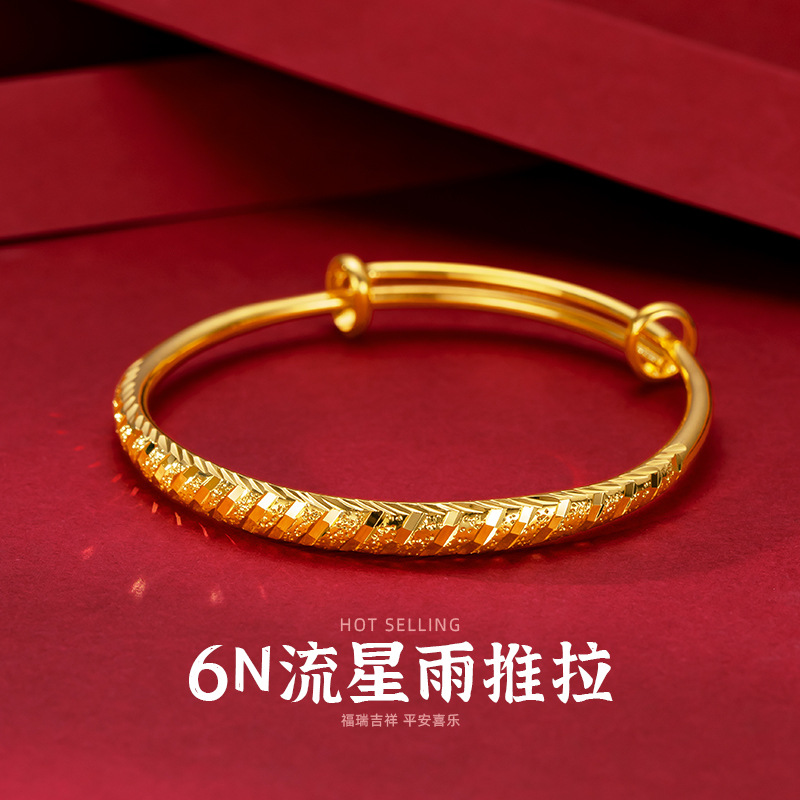 镀金女款满天星推拉沙金手镯女 精品流星雨加厚金黄铜手镯女批发