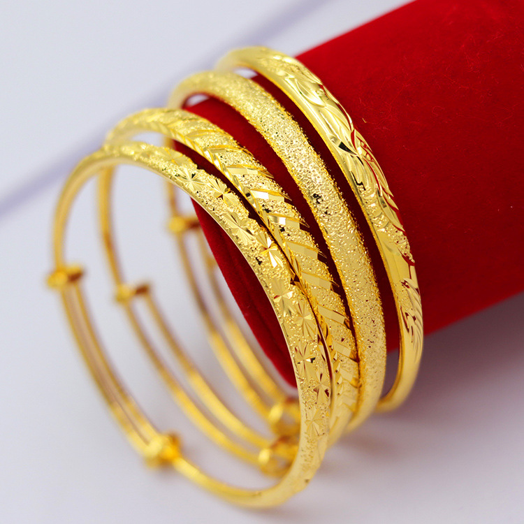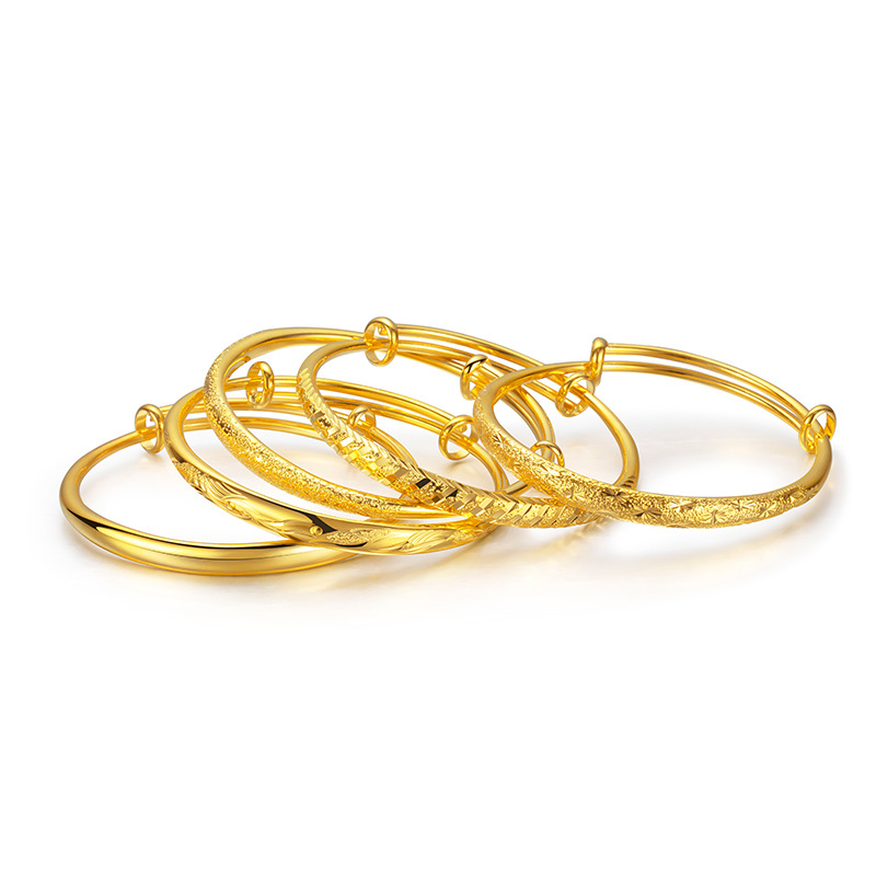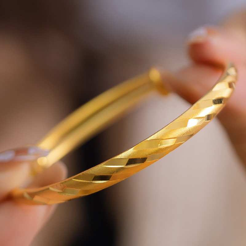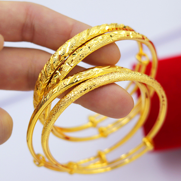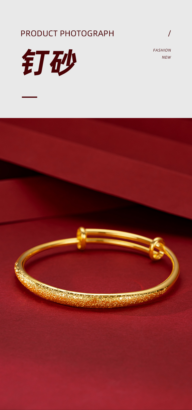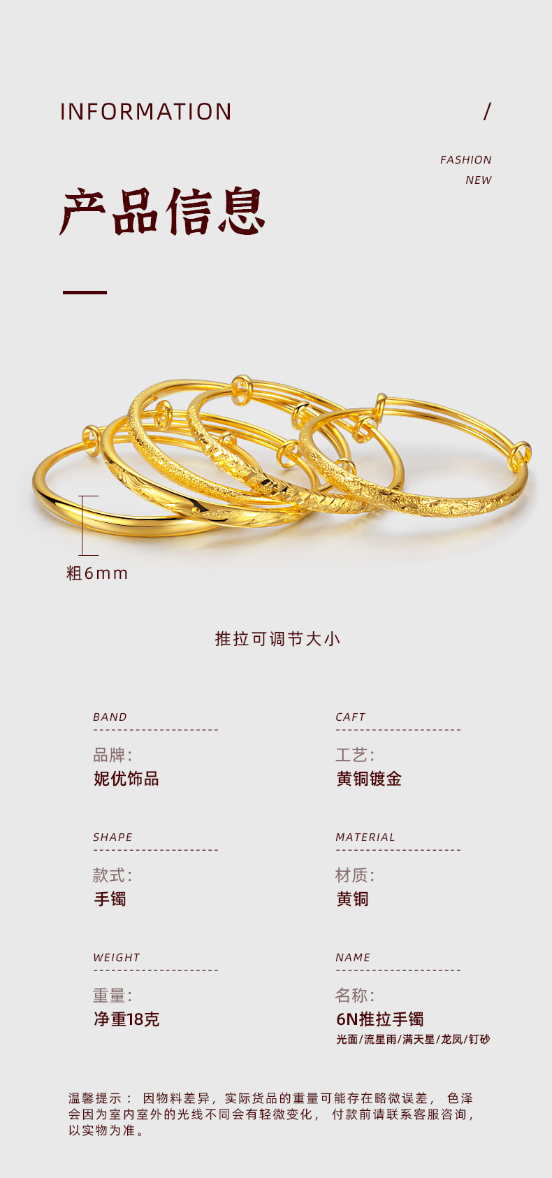 镀金女款满天星推拉沙金手镯女 精品流星雨加厚金黄铜手镯女批发
