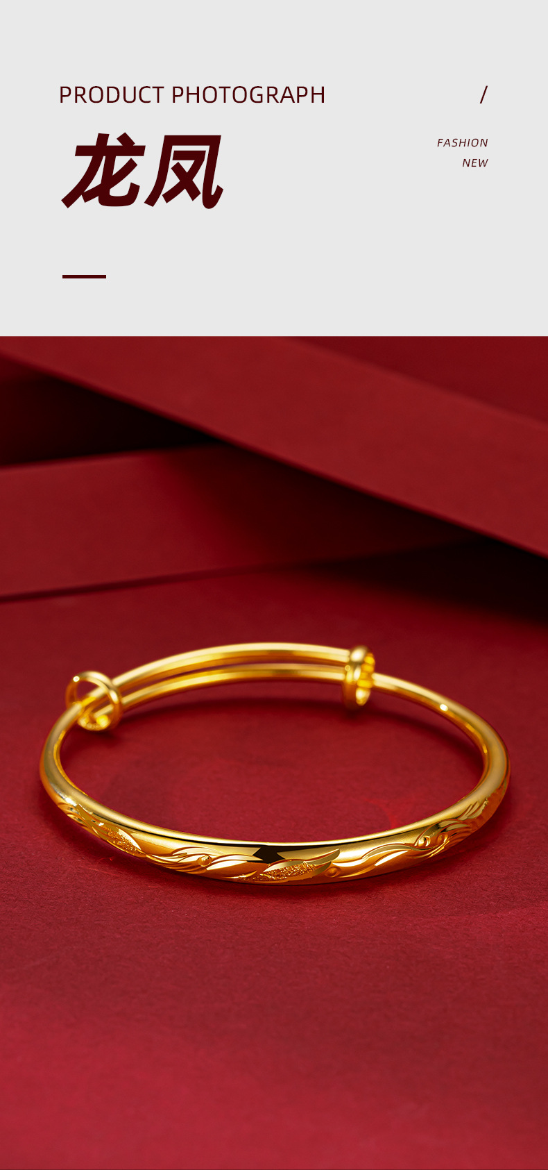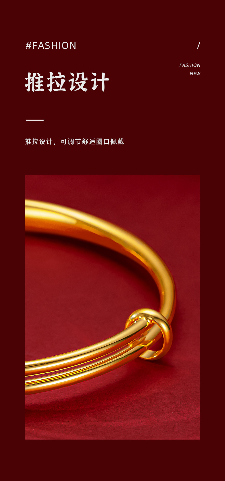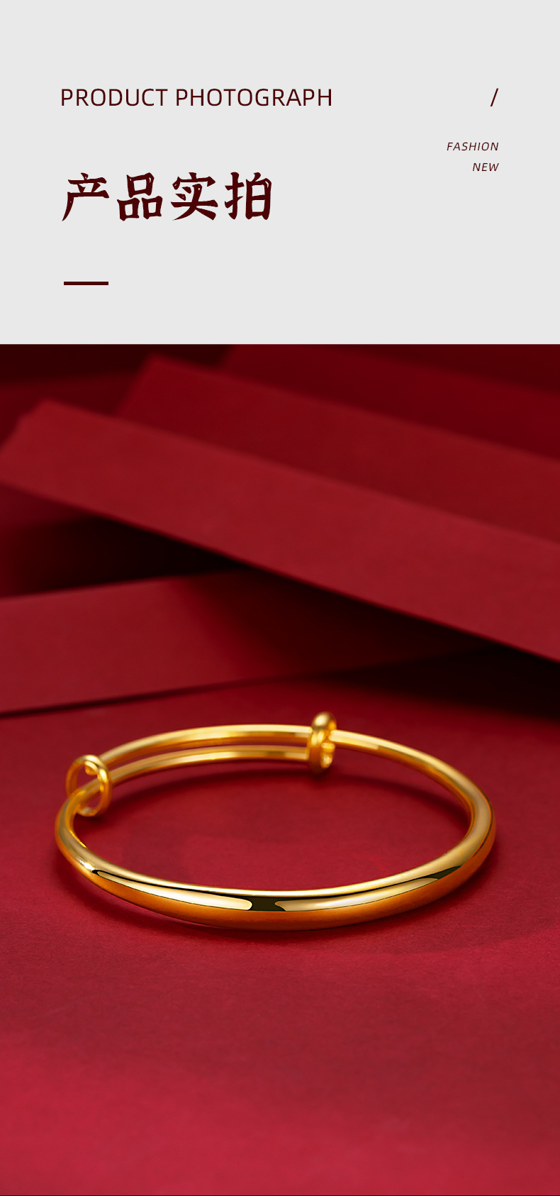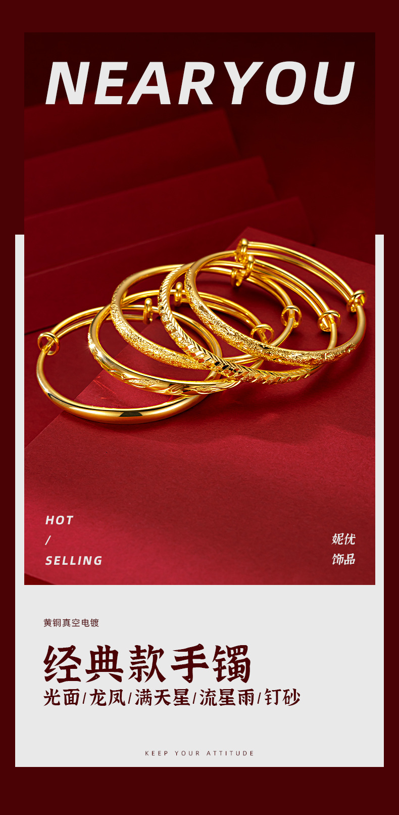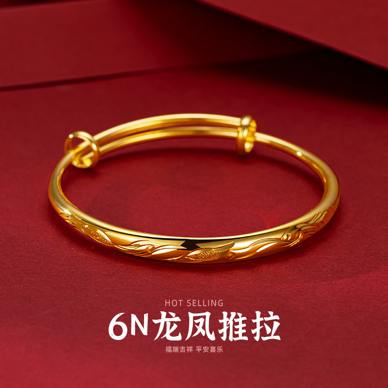 镀金女款满天星推拉沙金手镯女 精品流星雨加厚金黄铜手镯女批发