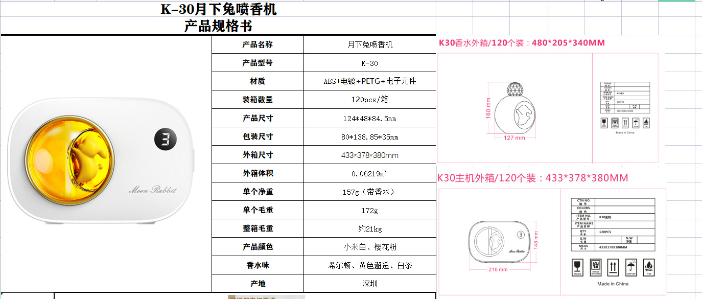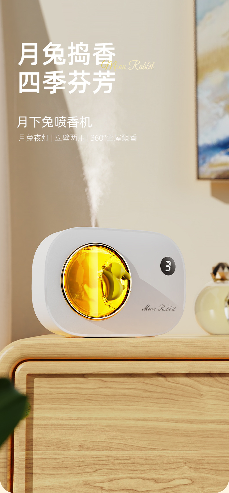 外贸专供月下兔喷香机室内持久卫生间喷雾酒店扩香机台挂两用机