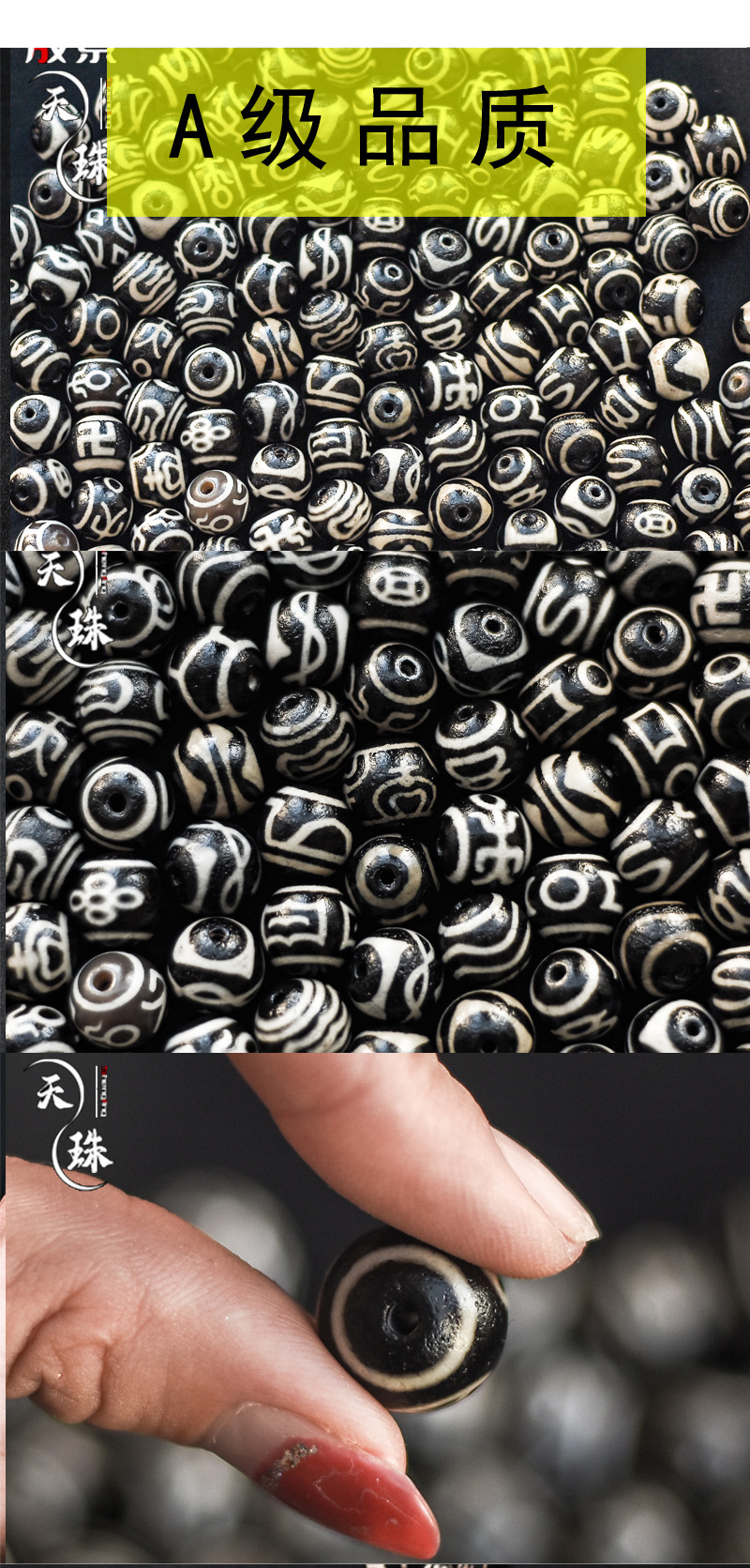 藏式天珠批发 黑白包浆天然玛瑙 散珠多种图腾手链大孔配饰品男女