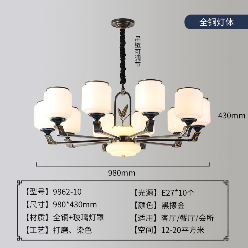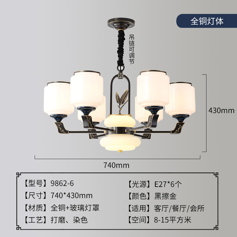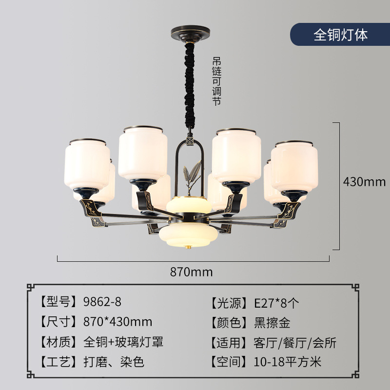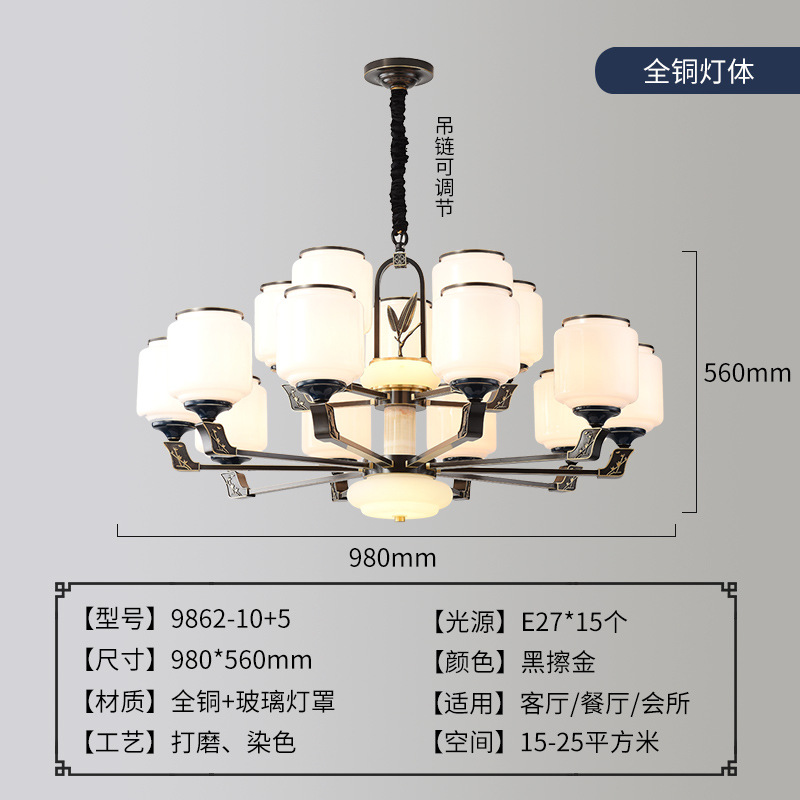 外贸专供全铜新中式客厅吊灯大气别墅古典灯简约国风禅意灯具