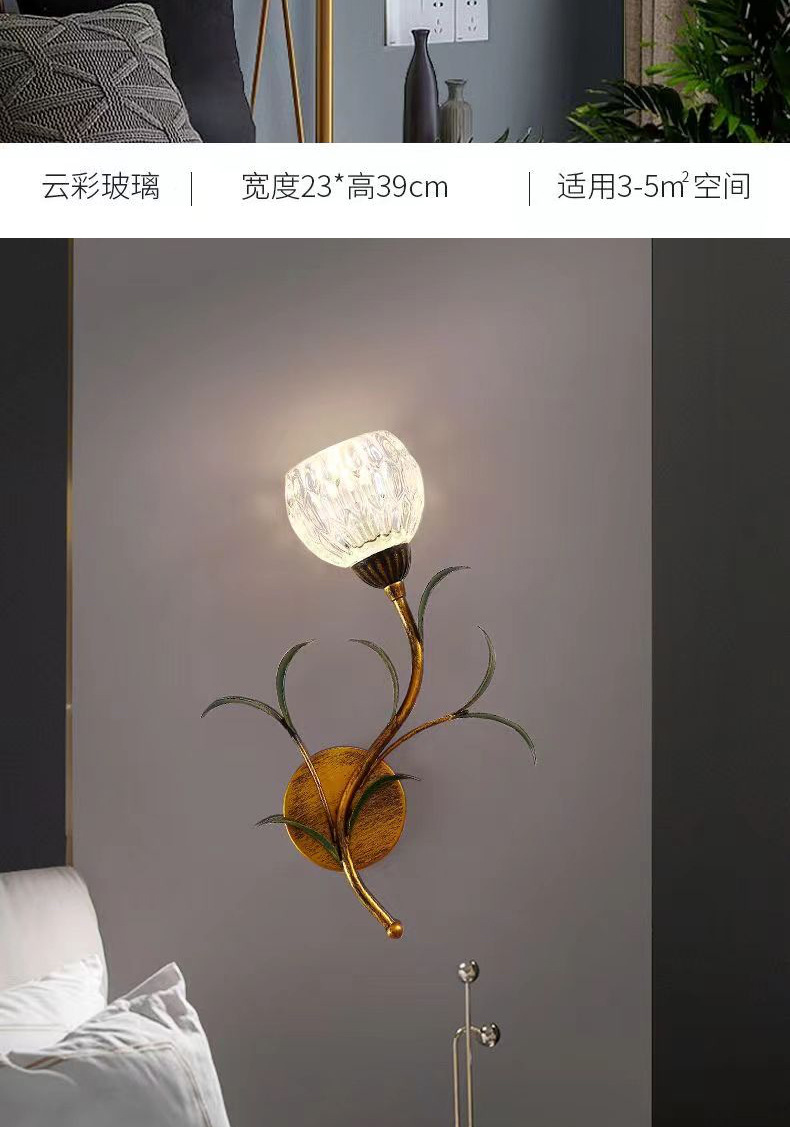 外贸专供法式壁灯客厅背景墙上简约美式田园房间花朵床头灯具