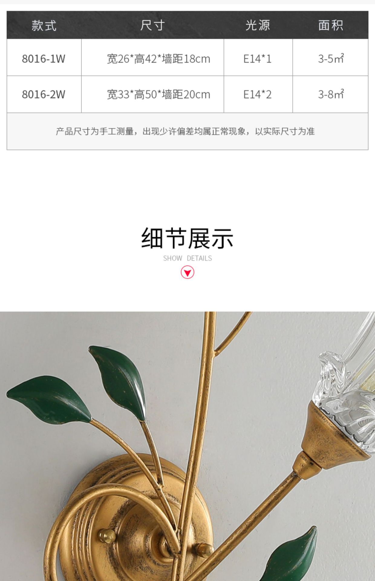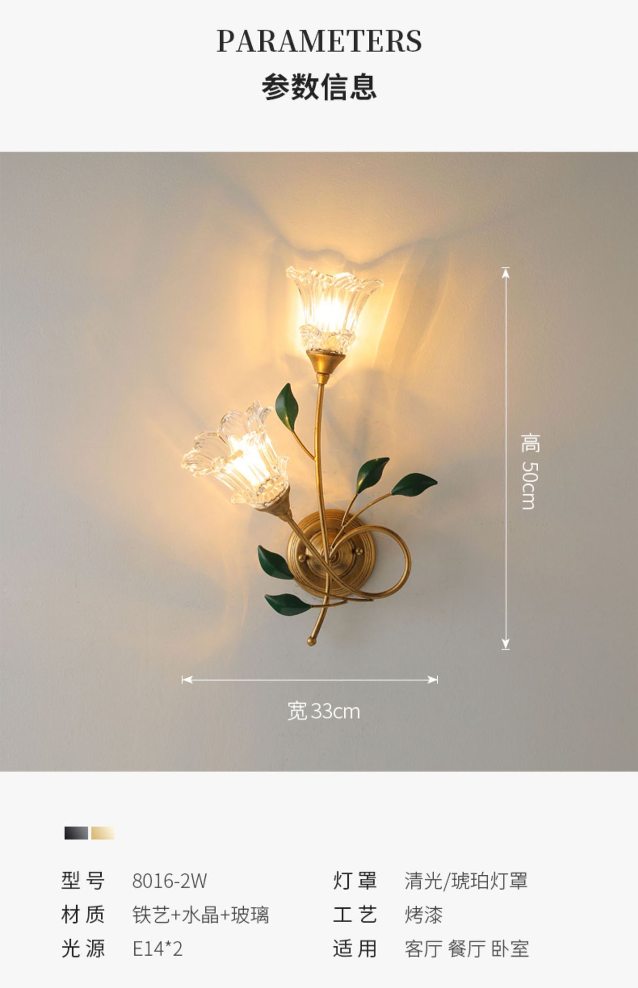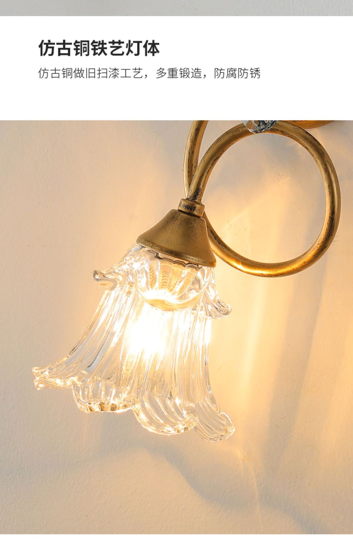 外贸专供美式壁灯简约欧式花朵床头灯法式田园客厅背景墙灯具