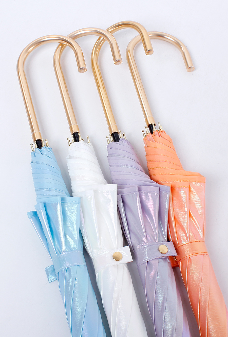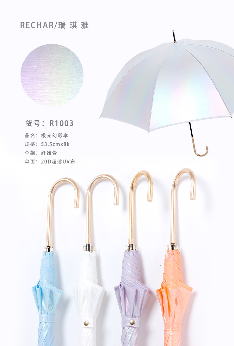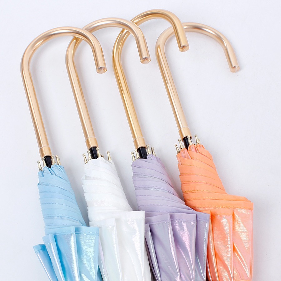 出口个性极光色幻彩薄布UV防晒晴雨伞直杆长伞遮阳轻217克弯钩伞