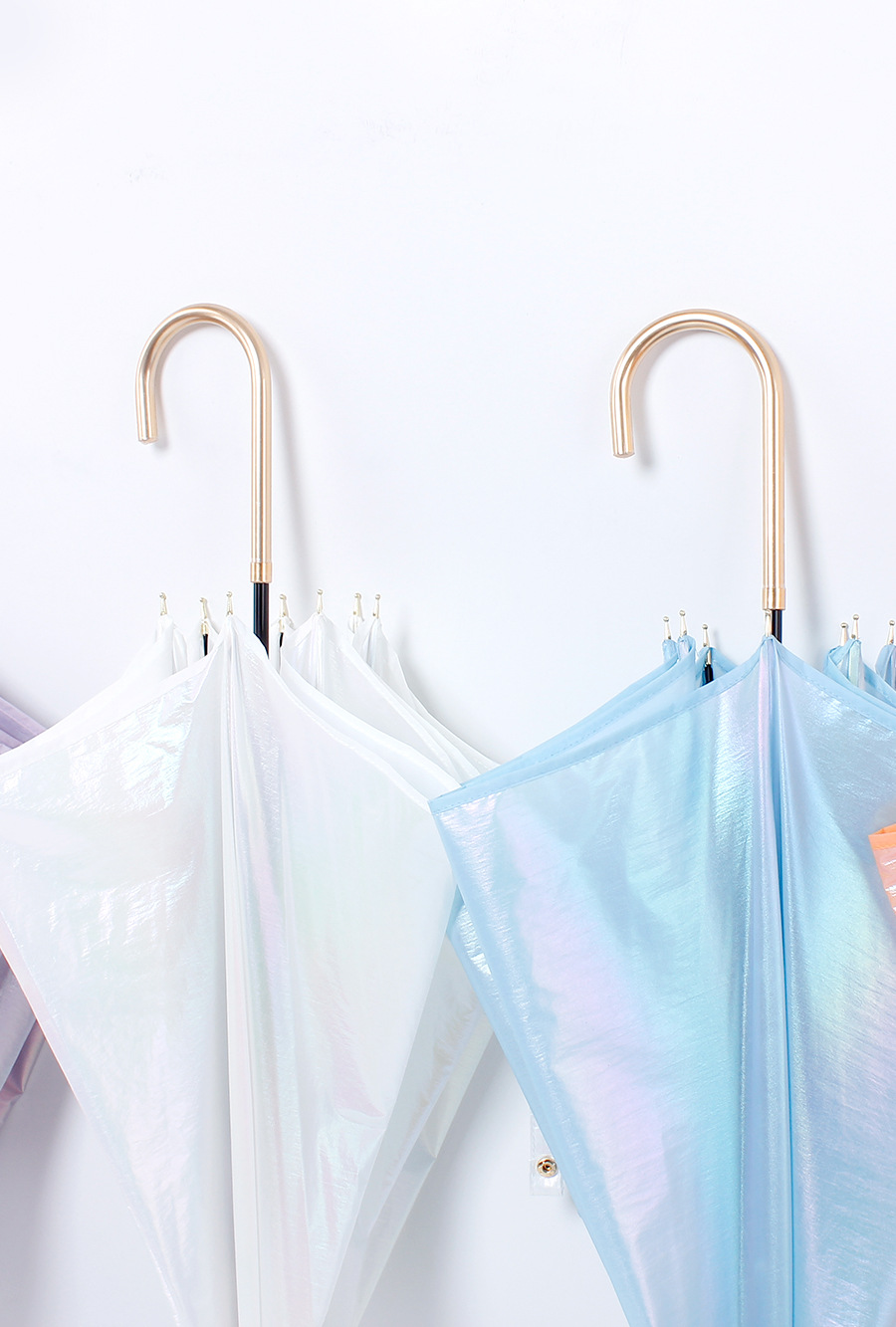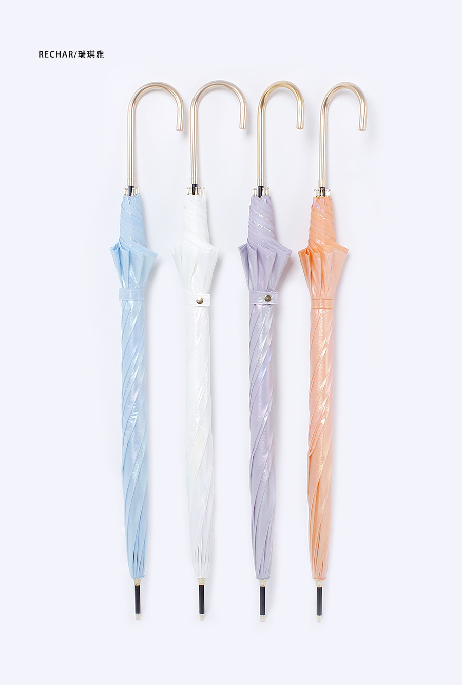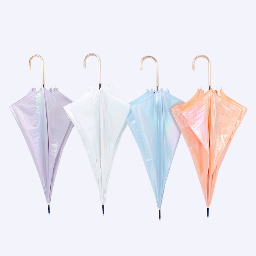 出口个性极光色幻彩薄布UV防晒晴雨伞直杆长伞遮阳轻217克弯钩伞