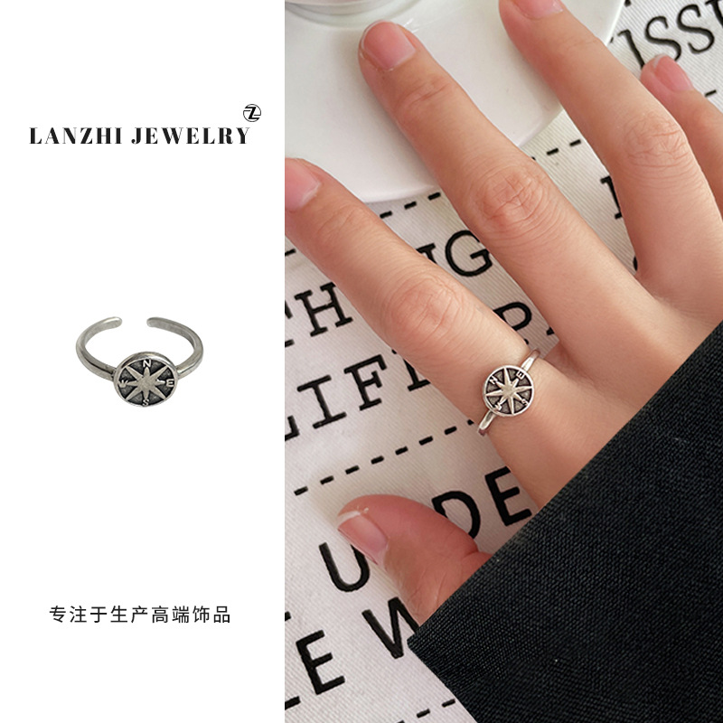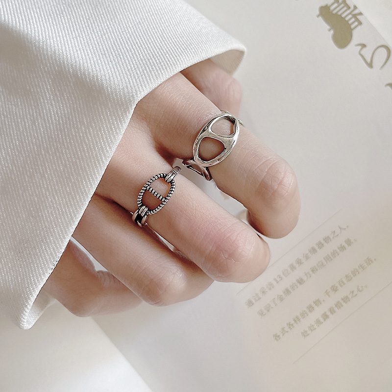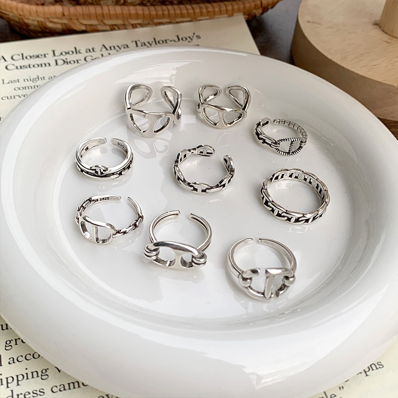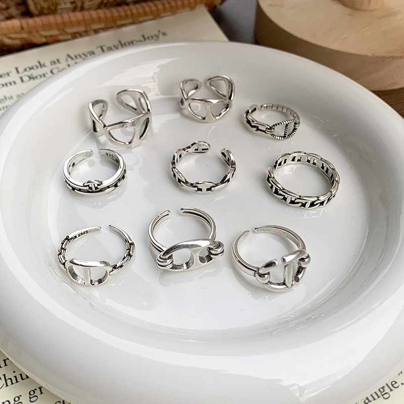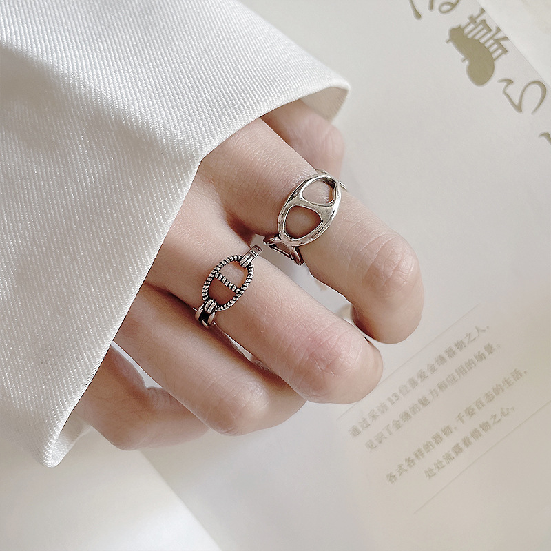 猪鼻子925银戒指不掉色复古ins手饰跨境小众设计感纯银戒指批发女