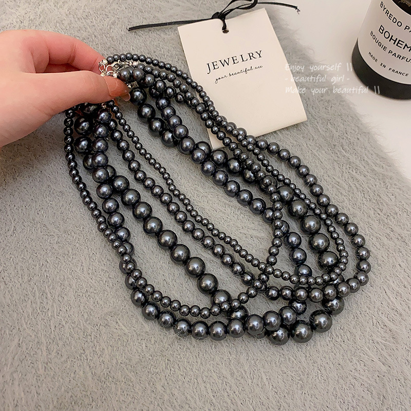 轻奢超仙卫衣毛衣链个性高级感颈链小众倪妮同款施家黑珍珠项链女