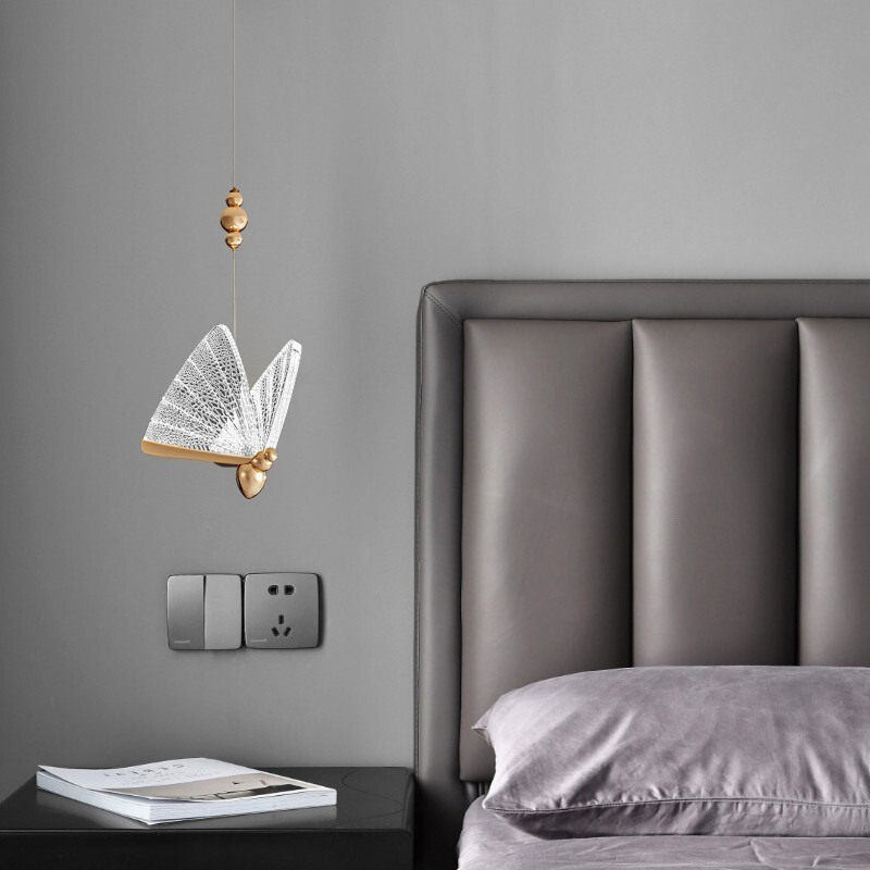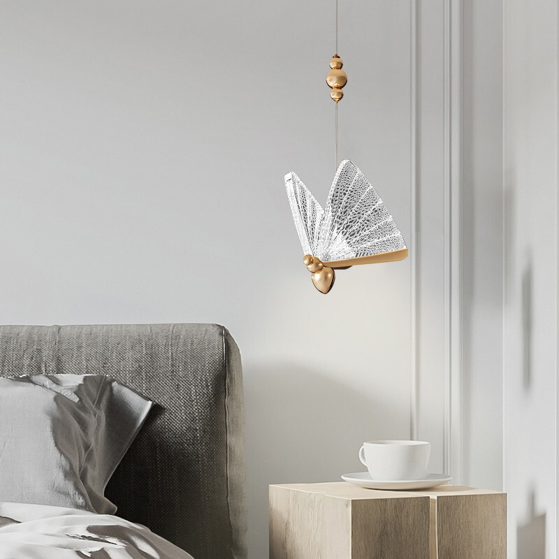 外贸专供轻奢床头蝴蝶小吊灯时尚艺术造型长线单头客厅背景墙