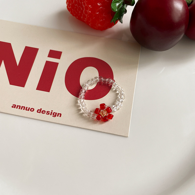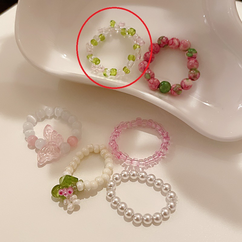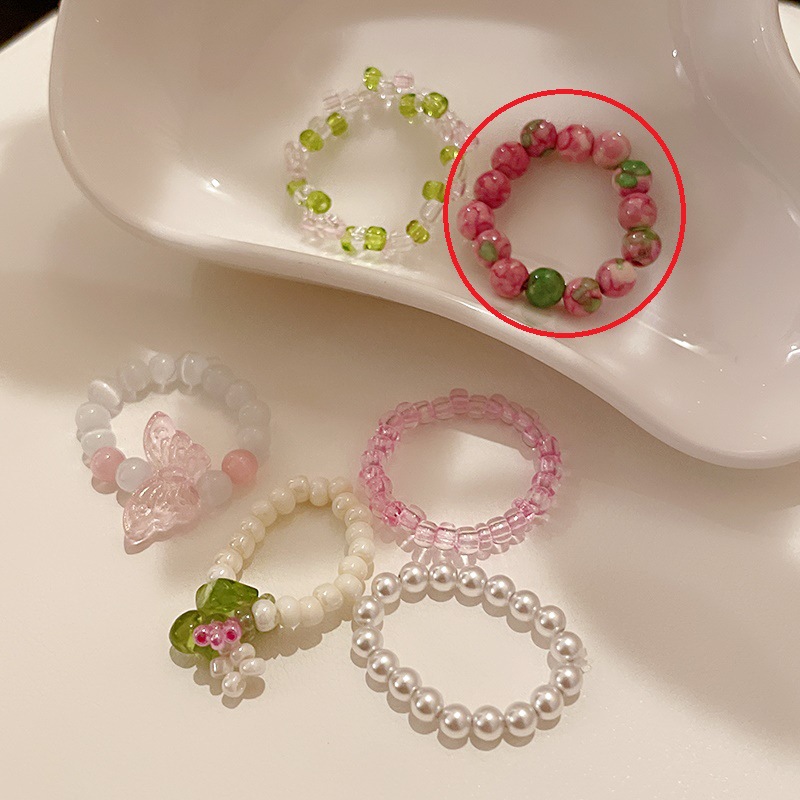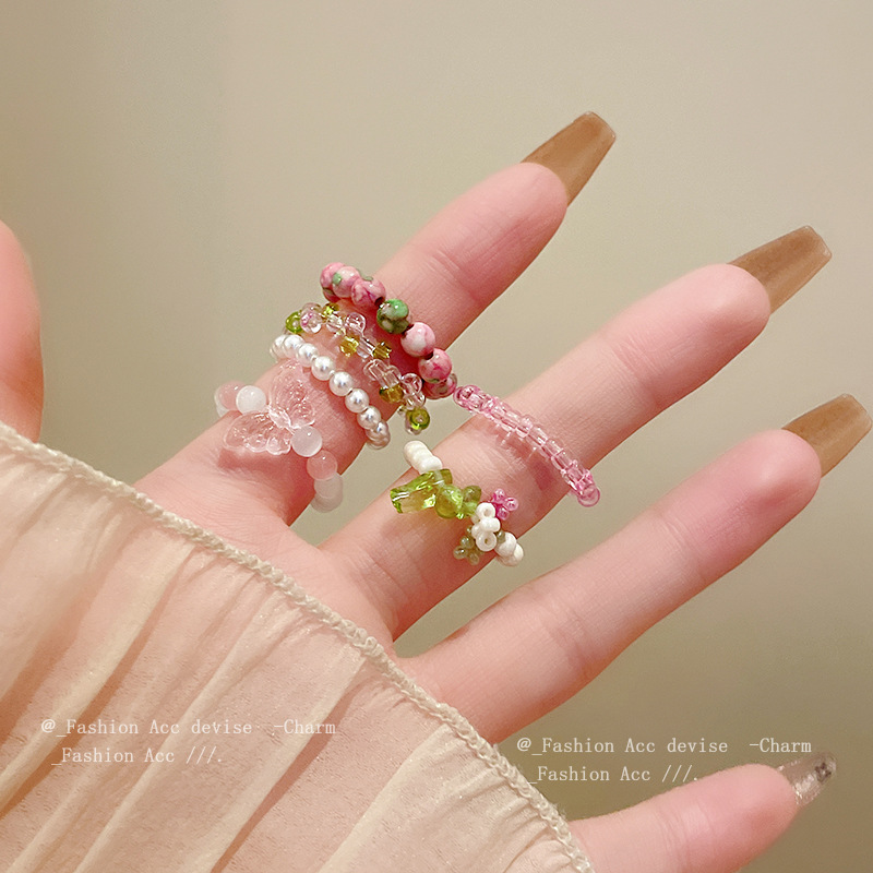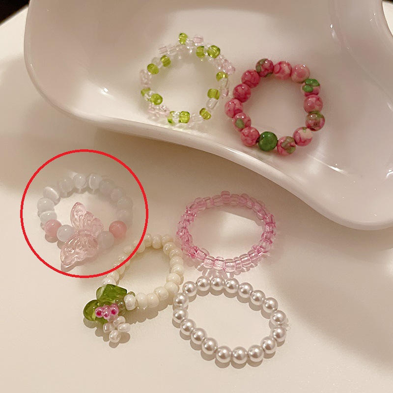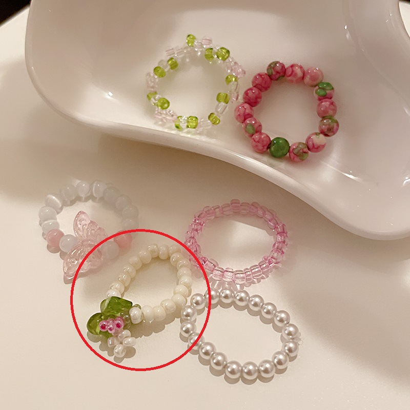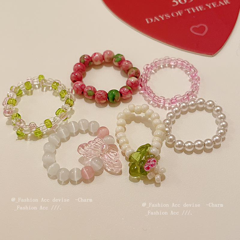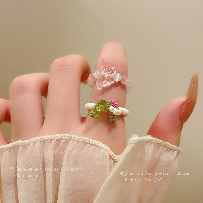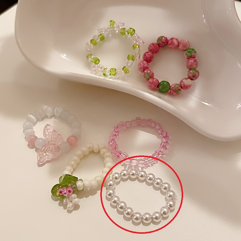 花朵珍珠猫眼石戒指韩国简约甜美食指戒ins高级感百搭手饰批发女
