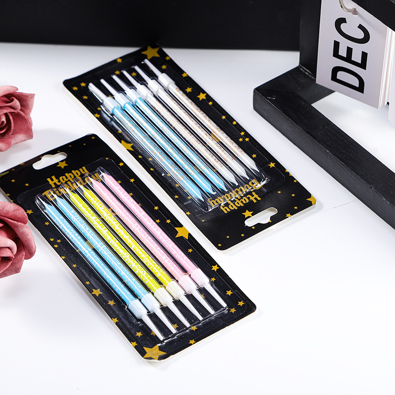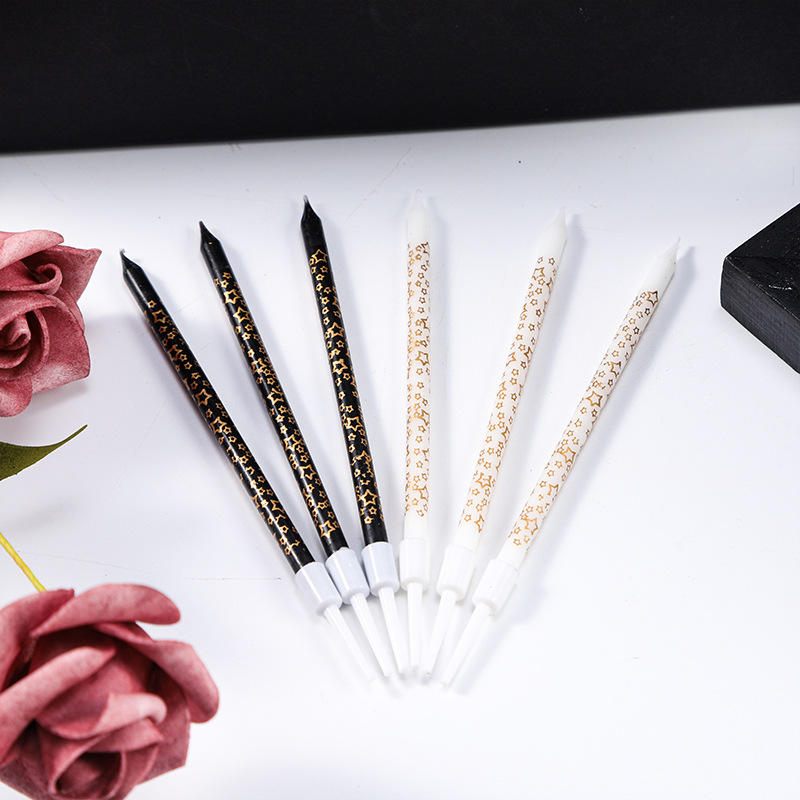 6支丝印星星蜡烛 直杆金色铅笔生日派对蜡烛蛋糕装饰蜡烛