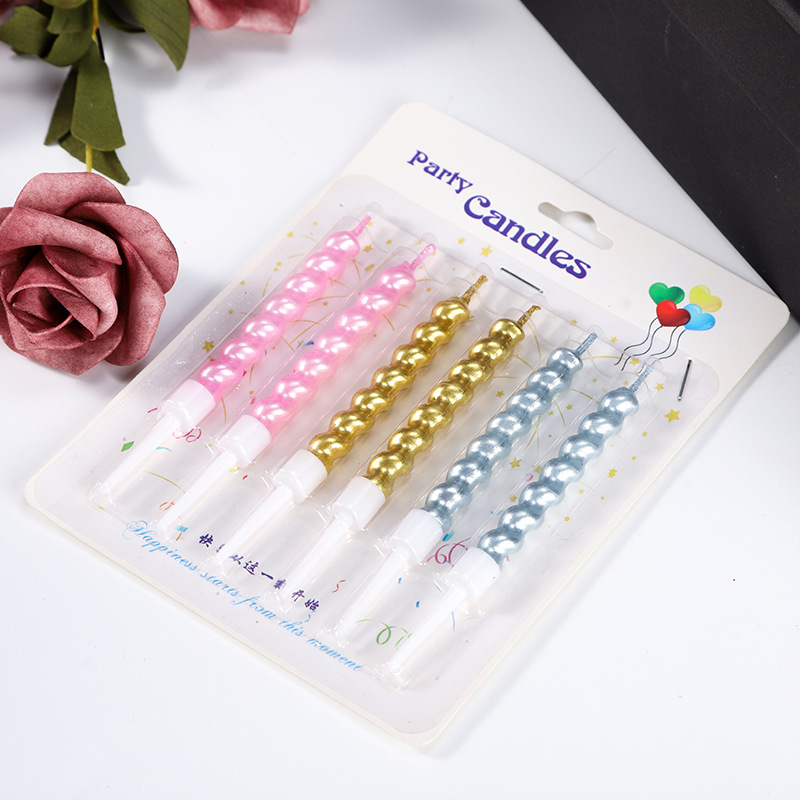 生日蜡烛创意马卡龙扭扭螺纹6支装批发派对烘焙装饰彩色蛋糕蜡烛