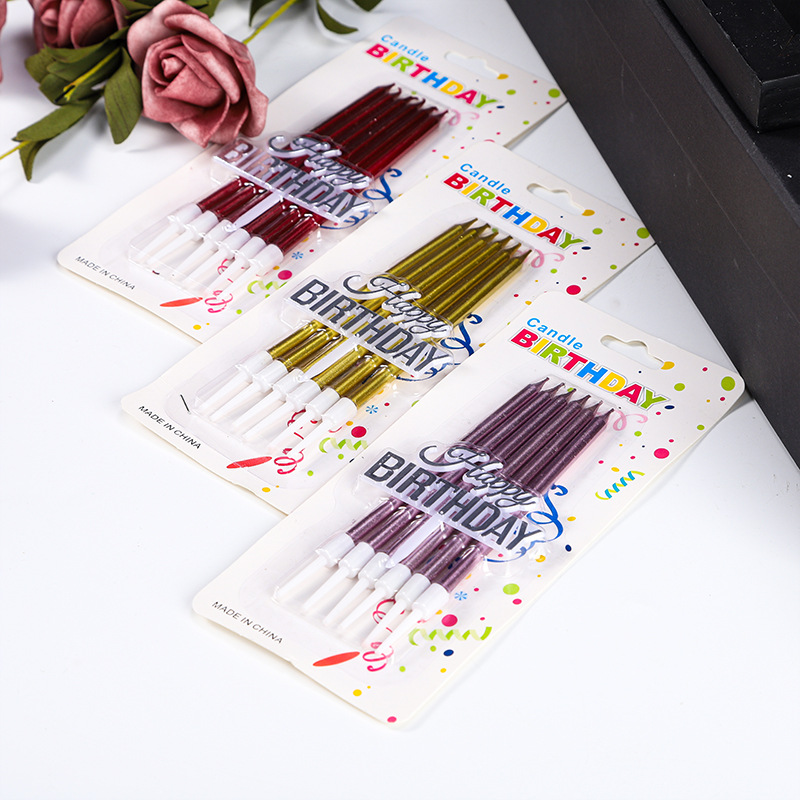 新款6支吸卡装蛋糕蜡烛黑金白金 创意浪漫派对装饰生日铅笔蜡烛