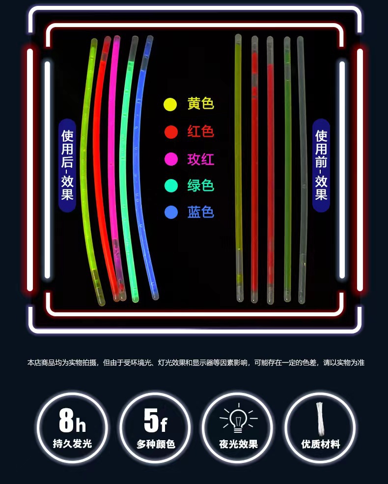 炫彩荧光棒贴身上批量发光儿童跳舞荧光棒100支一桶网红过年玩具