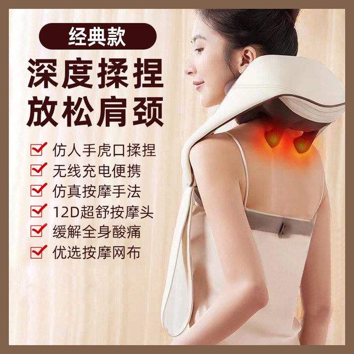 跨境斜方肌热敷按摩器肩颈按摩披肩电动揉捏多功能背部按摩仪厂家