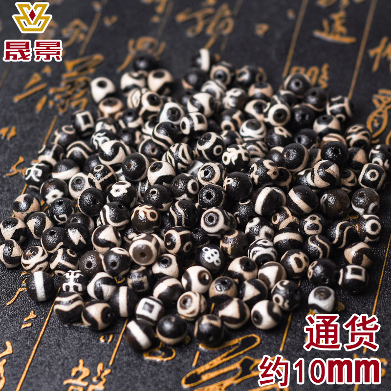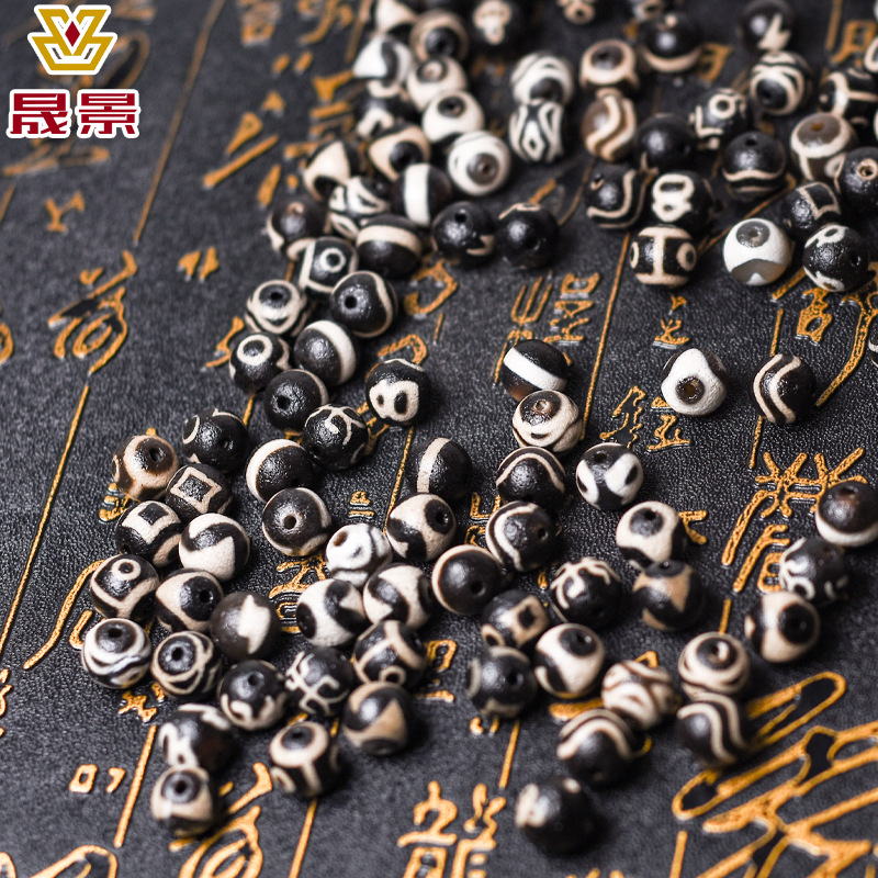 藏式天珠批发 天然玛瑙散珠小配珠图腾全满风化 佛珠菩提配饰隔片
