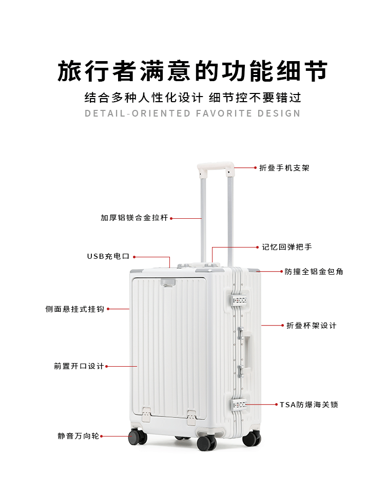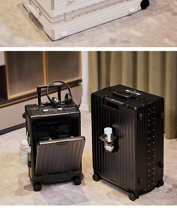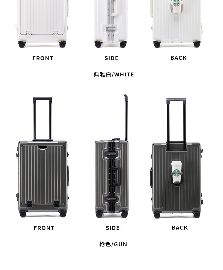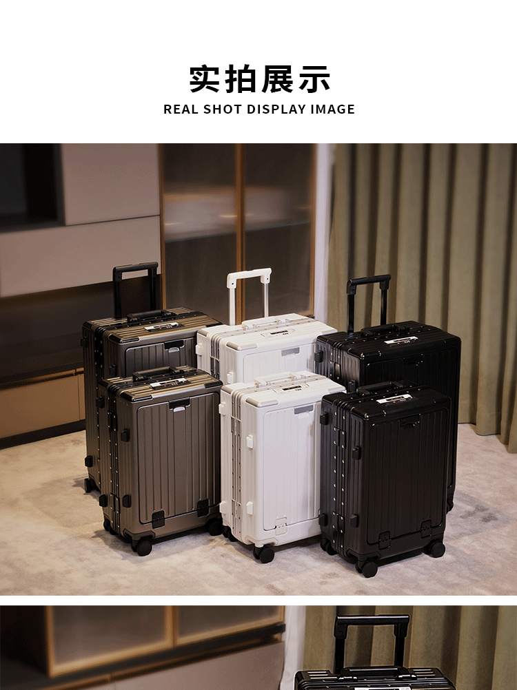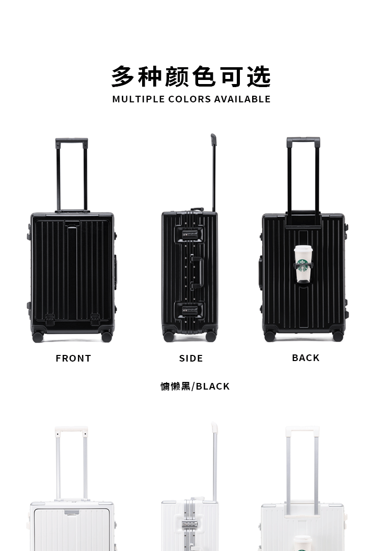 外贸前开口行李箱女新款20寸小型登机箱宽拉杆多功能高品质旅行箱