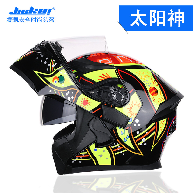 捷凯电动摩托车头盔全盔全覆式揭面盔男双镜片机车头盔安全帽DOT