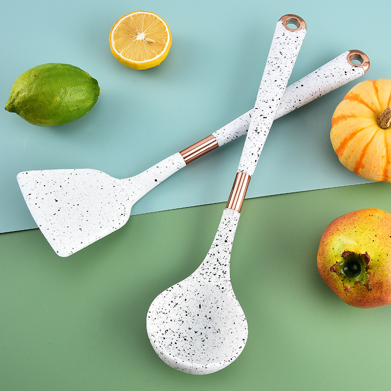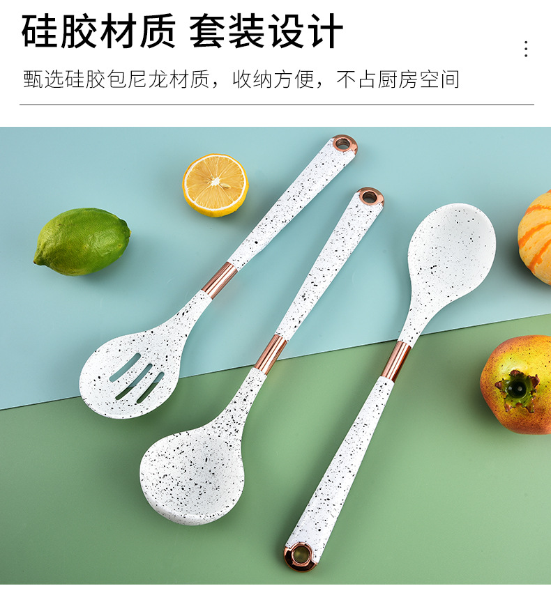 硅胶厨具七件套 不粘烹饪铲勺套装 创意轻奢组合厨房收纳筒收纳架