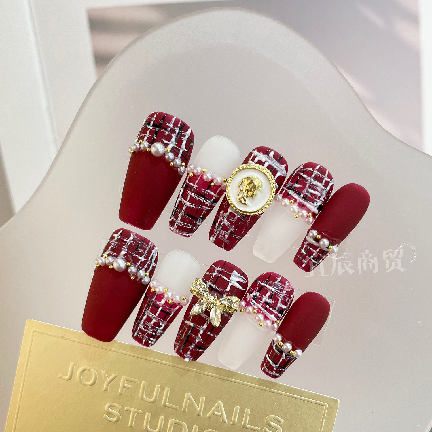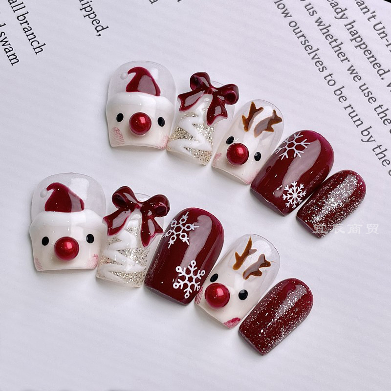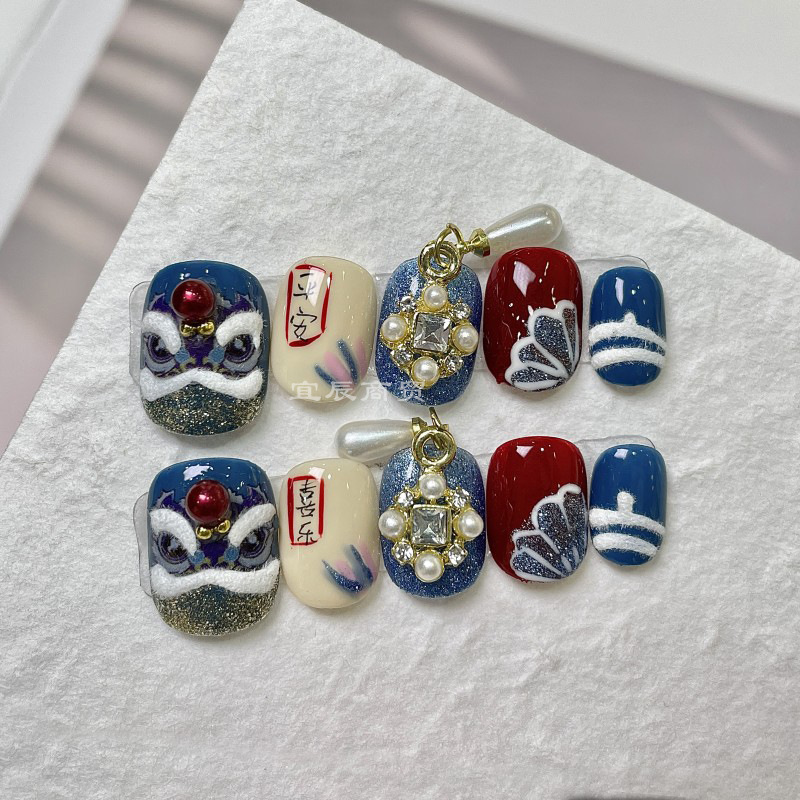 新年系列纯手工穿戴甲醒狮福娃喜庆风美甲贴成品甲片批发一件代发