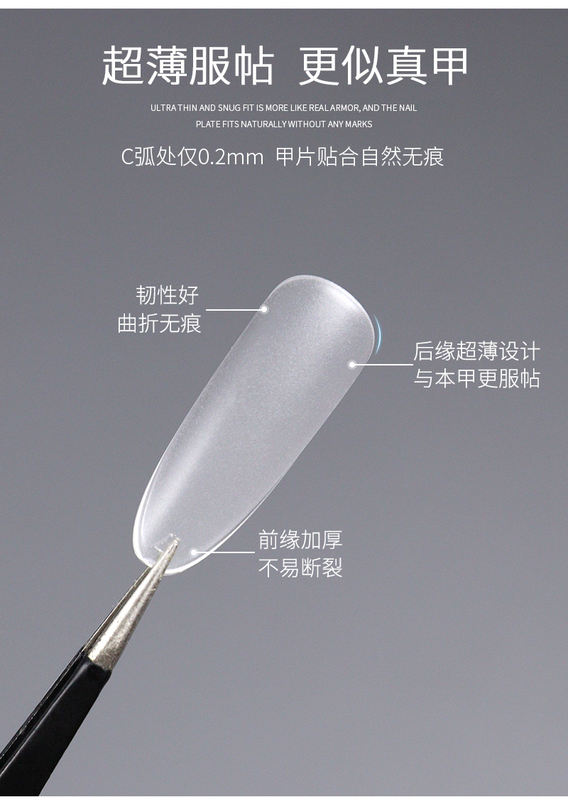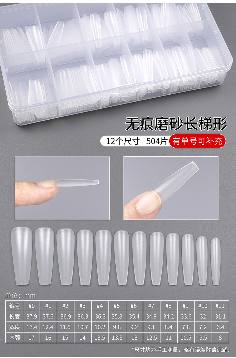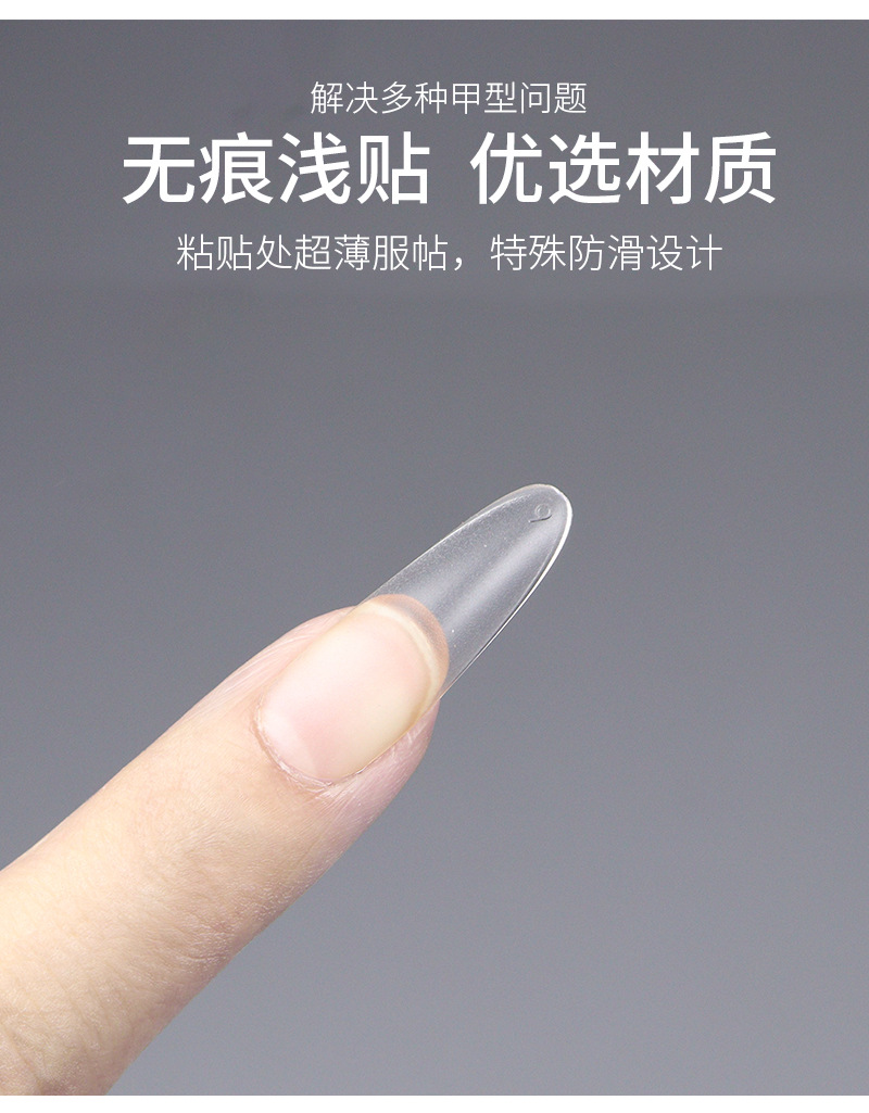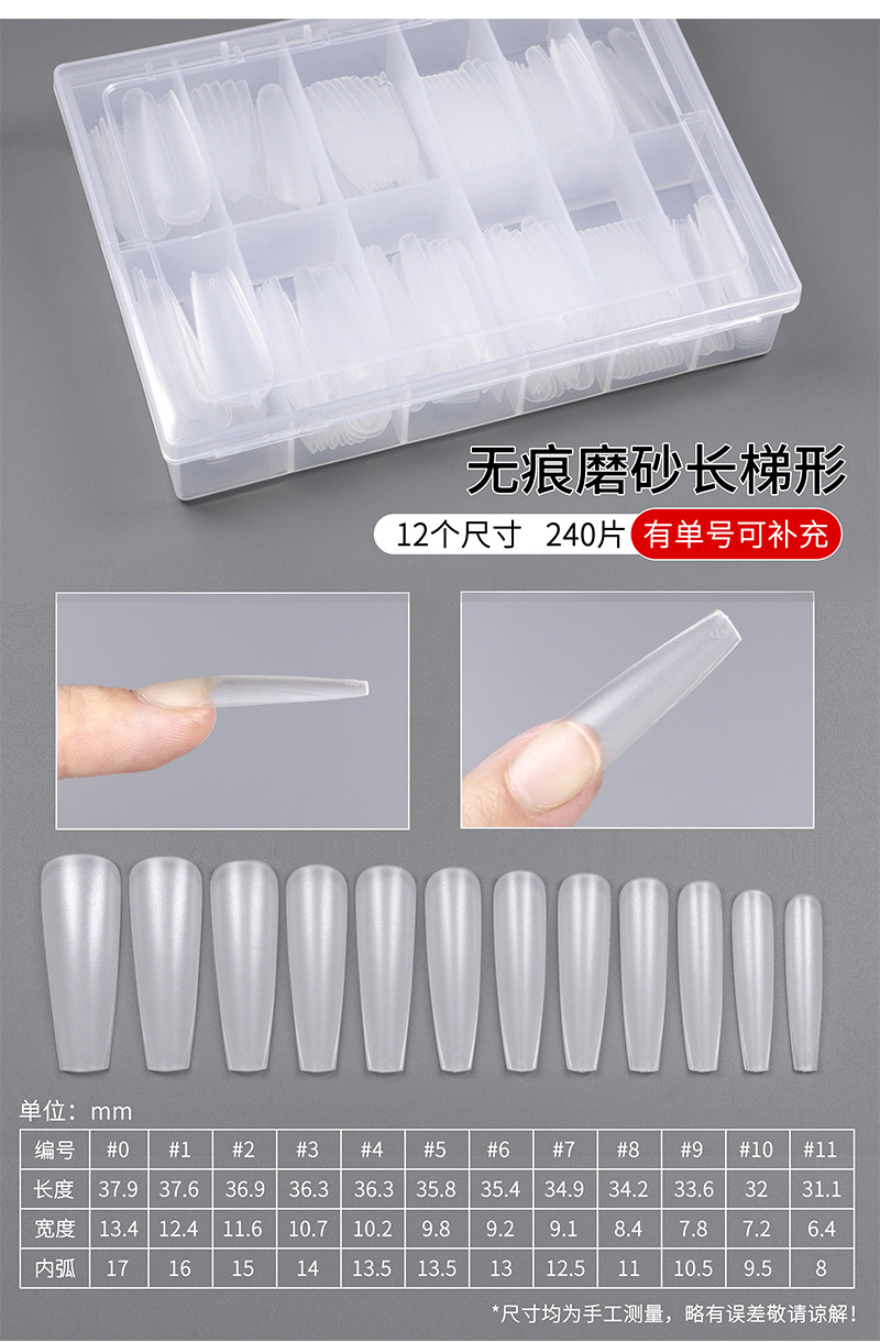 超薄无痕免刻磨甲片长梯形厂家新款高透明260片磨砂自然贴合甲片