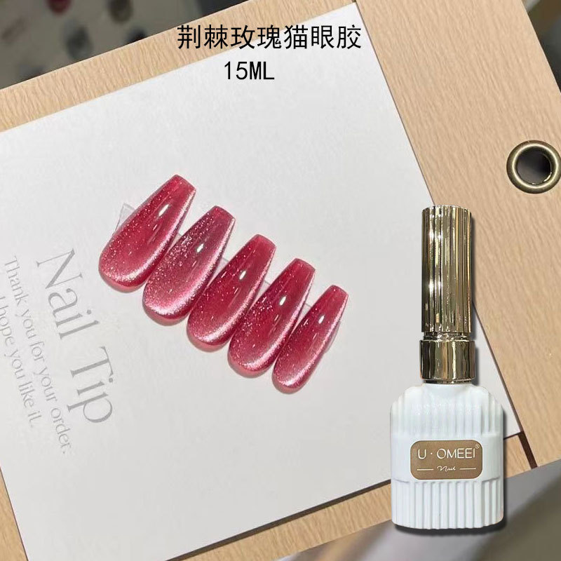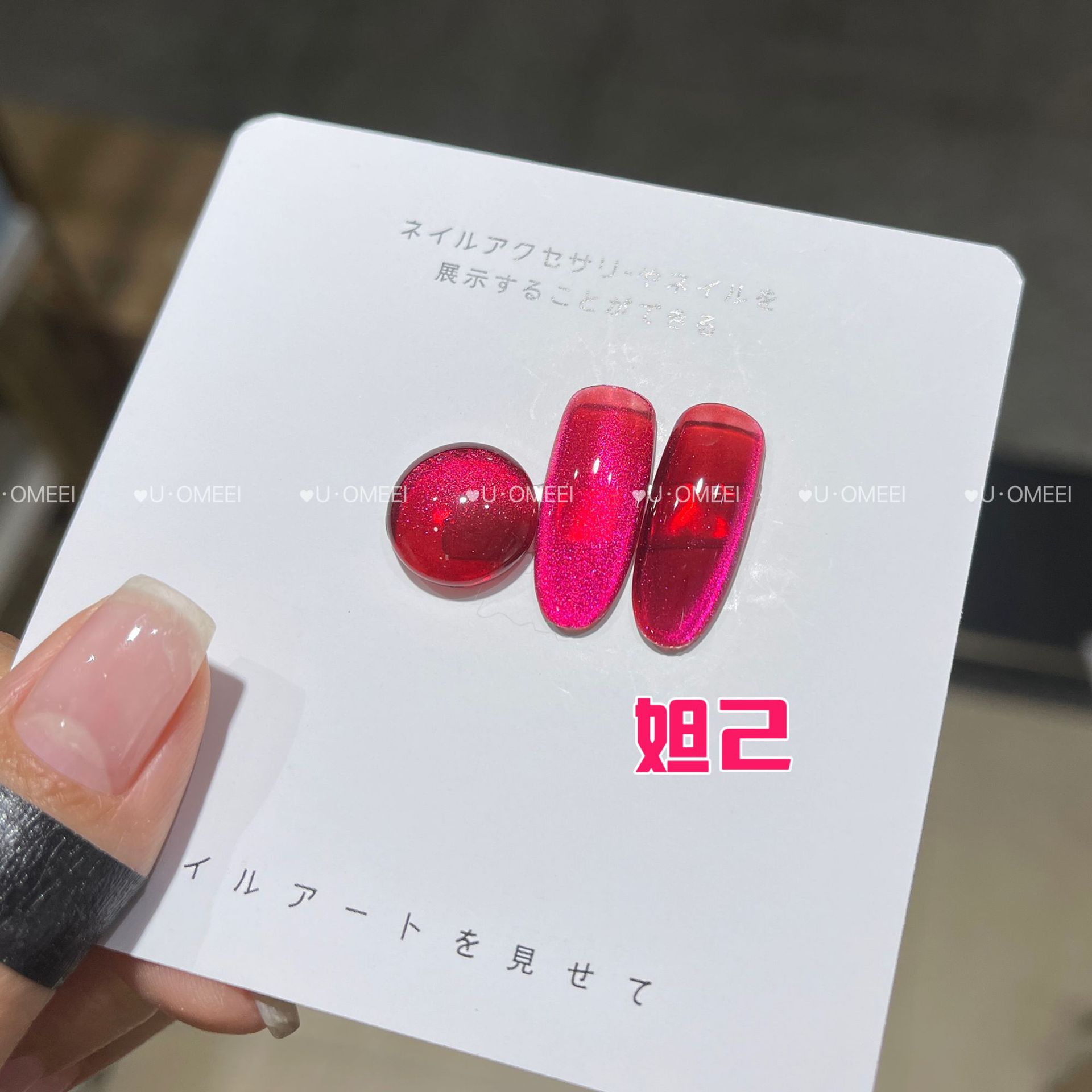 跨境热卖冰红猫眼胶美甲网红爆款火龙果小辣椒红色晶石猫眼甲油胶