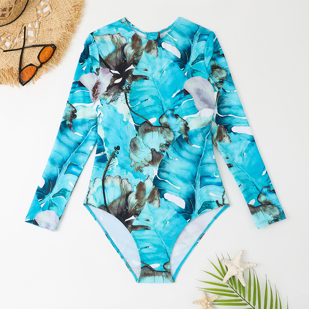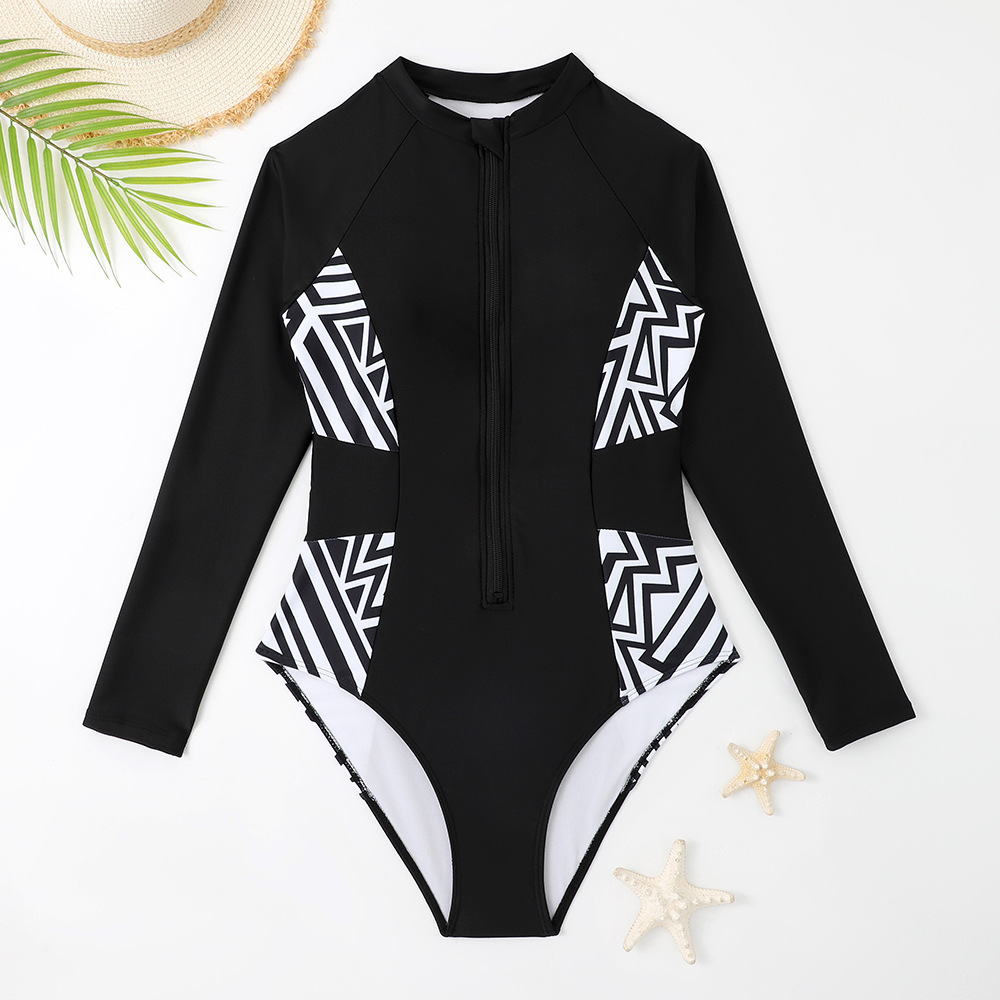 2024跨境连体泳衣长袖防晒潜水服拉链欧美外贸泳装亚马逊厂家批发