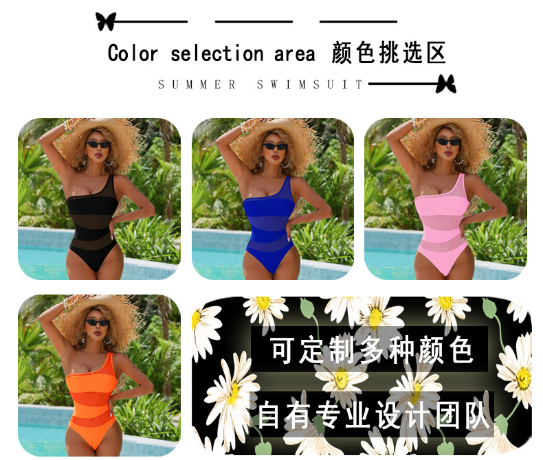 2023新款欧美游泳衣女镂空泳装网纱连体泳衣纯色多色比基尼bikini