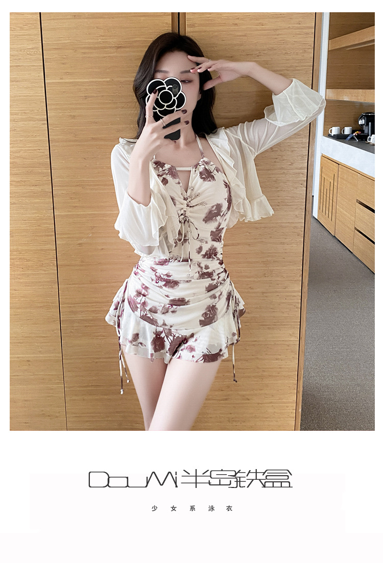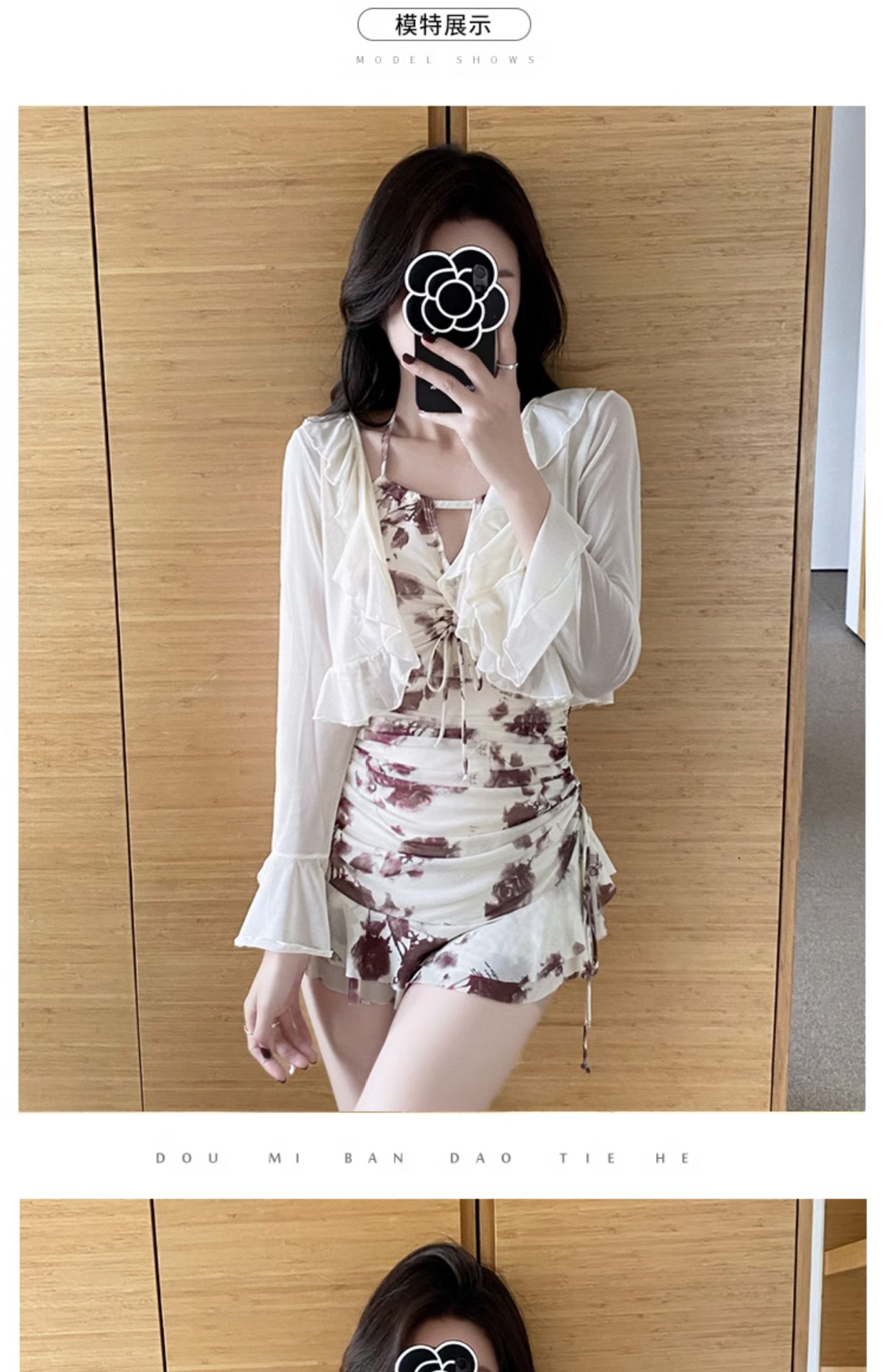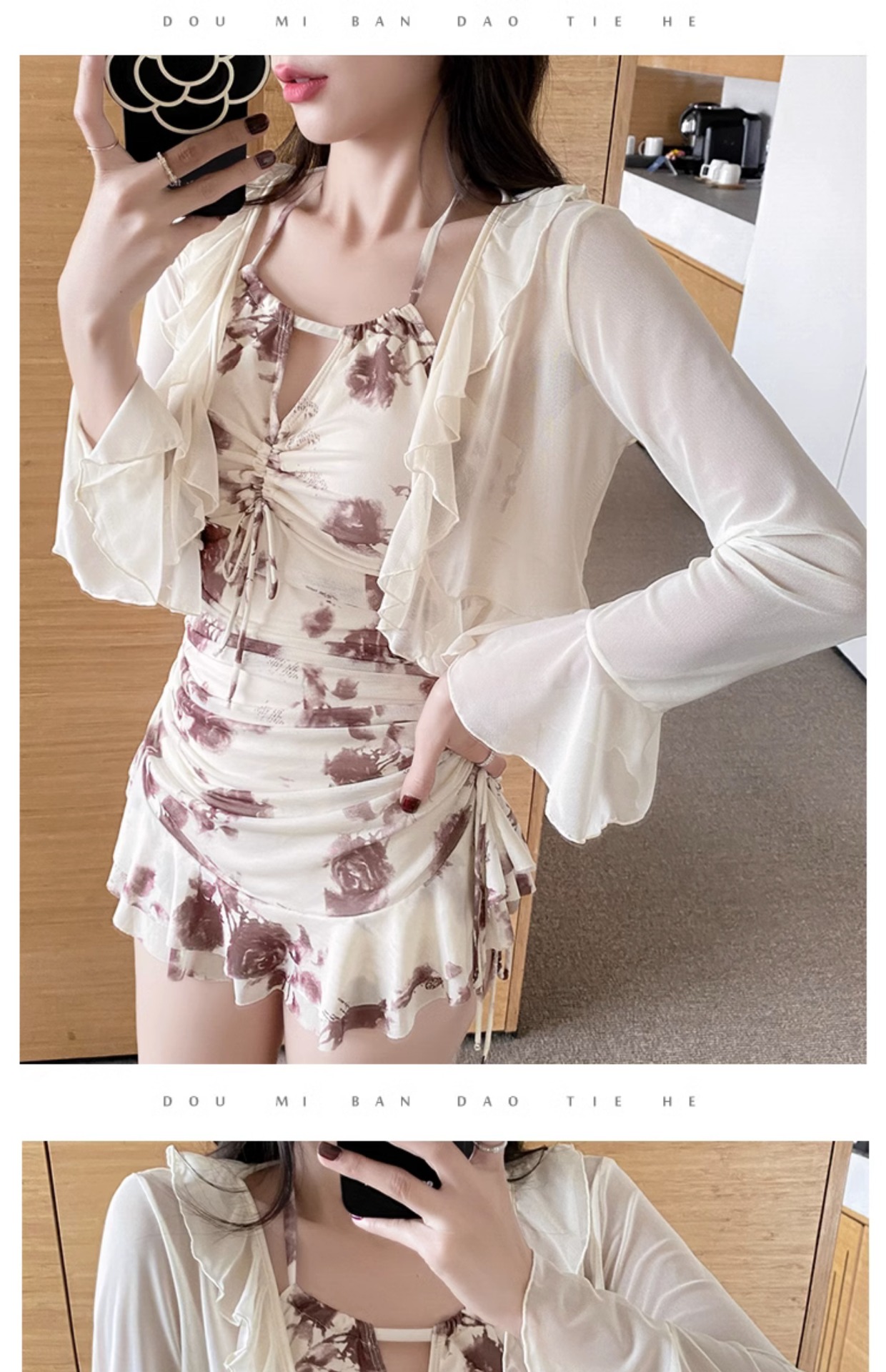 涤亚长袖纯欲高级感保守带罩衫遮肚显瘦2024新款性感露背泳衣女夏
