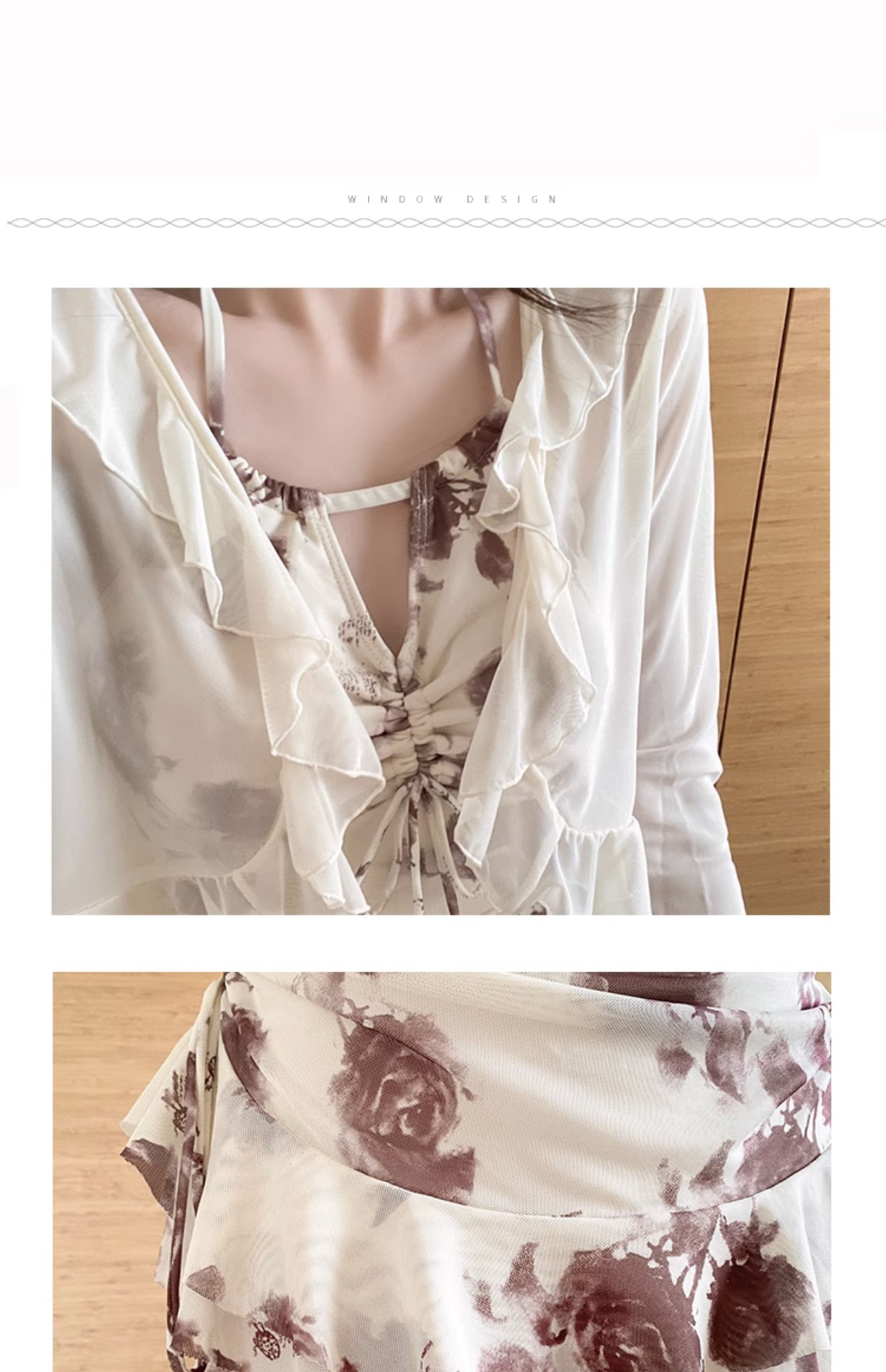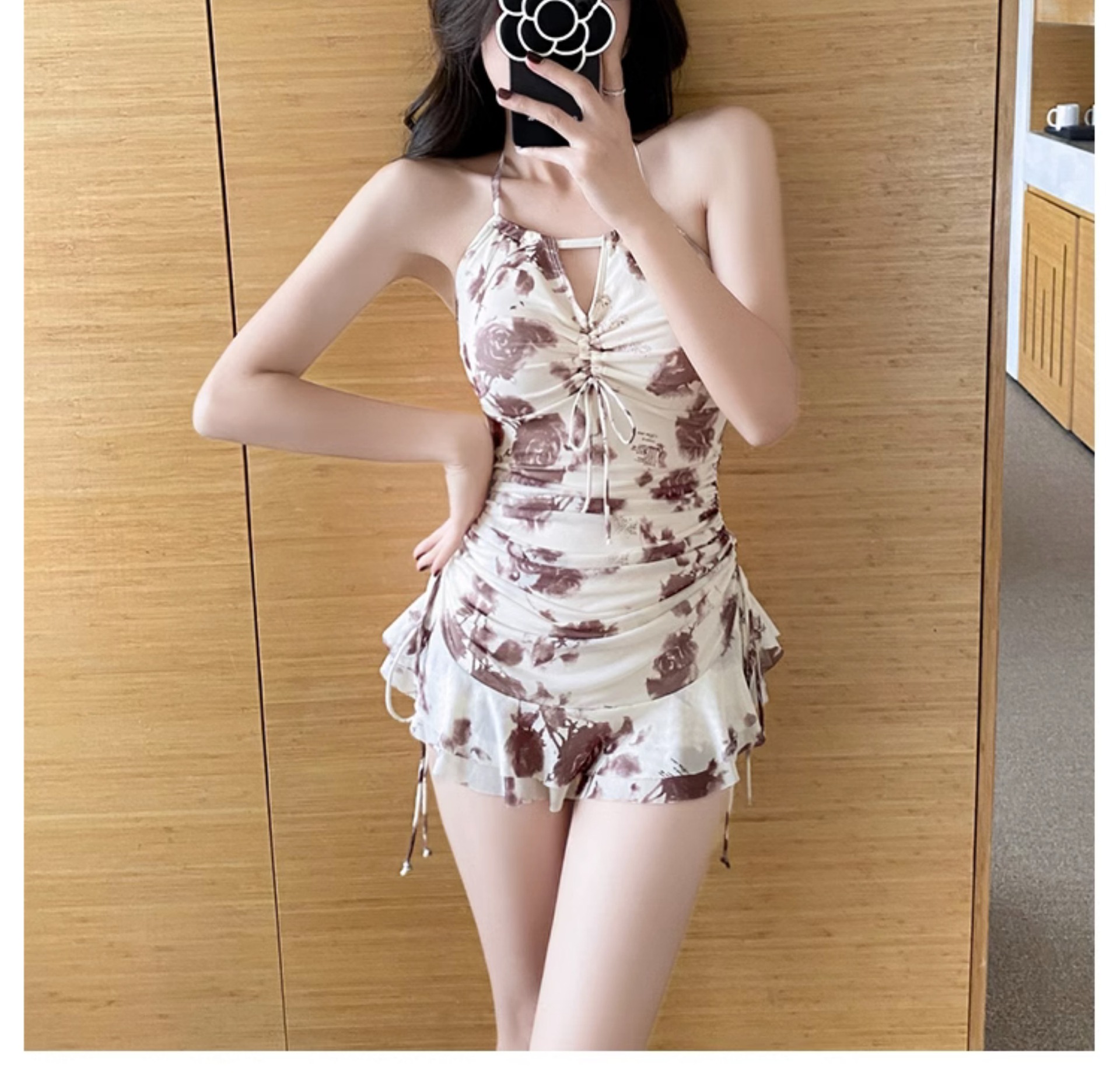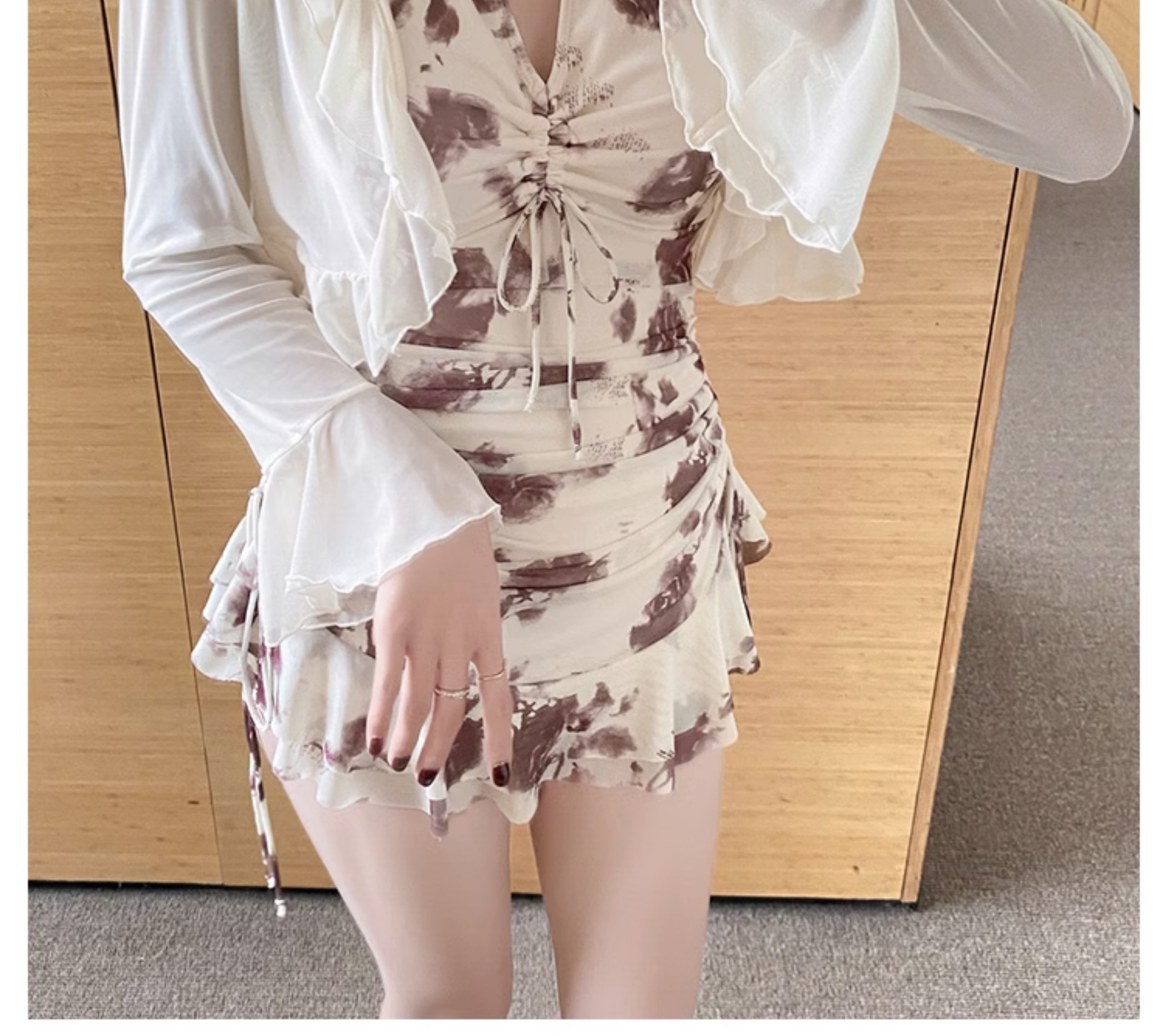 涤亚长袖纯欲高级感保守带罩衫遮肚显瘦2024新款性感露背泳衣女夏